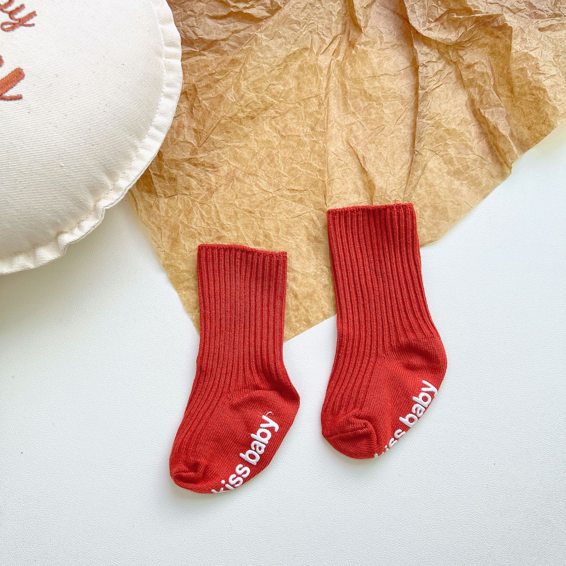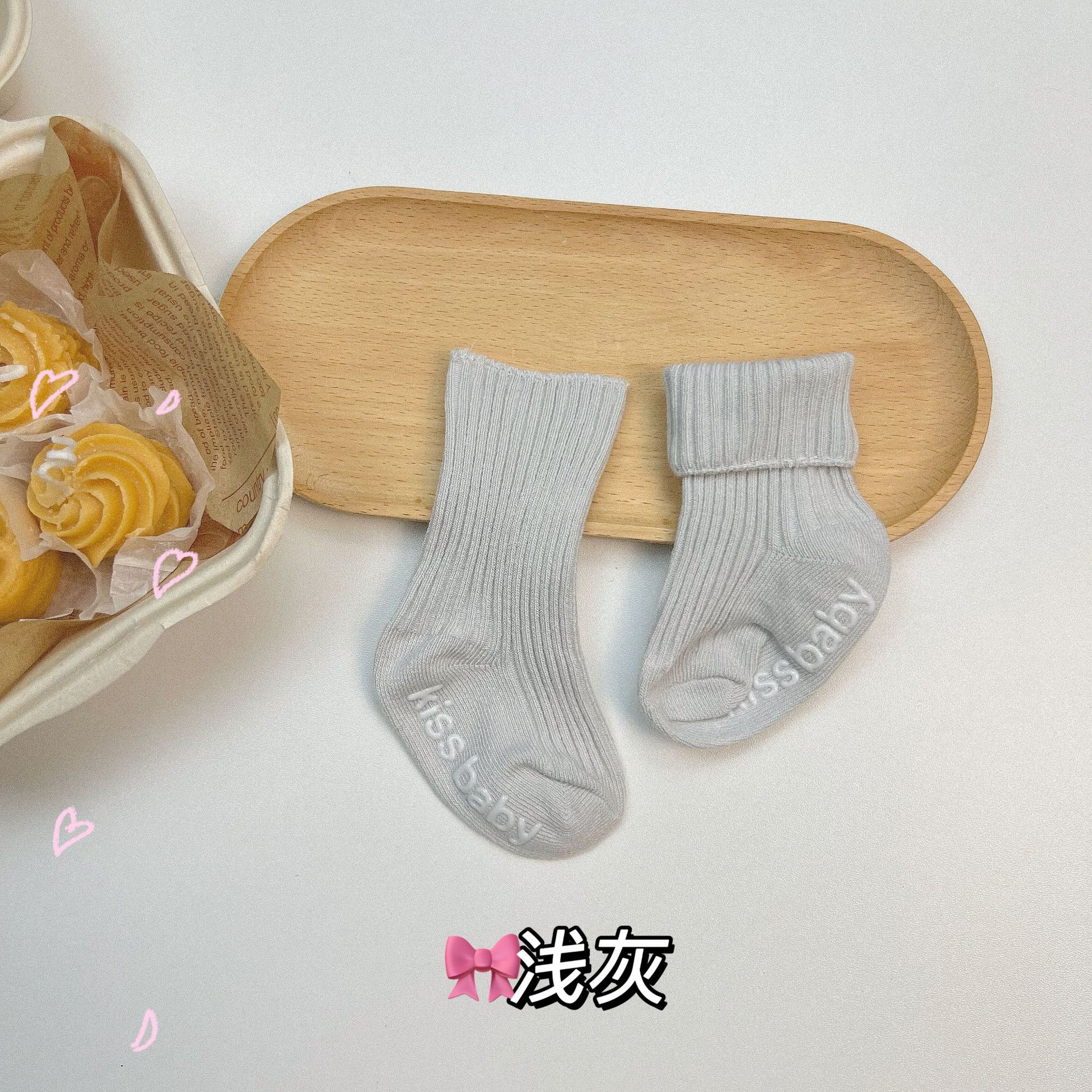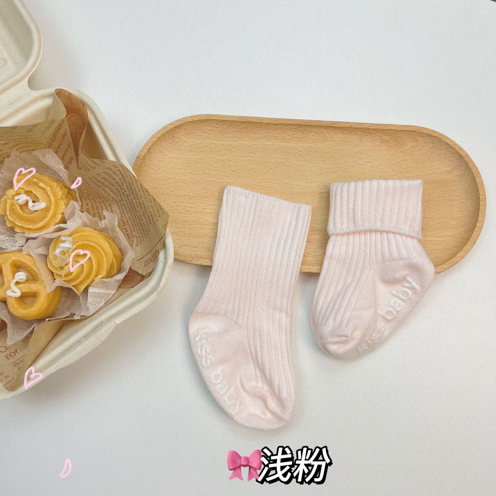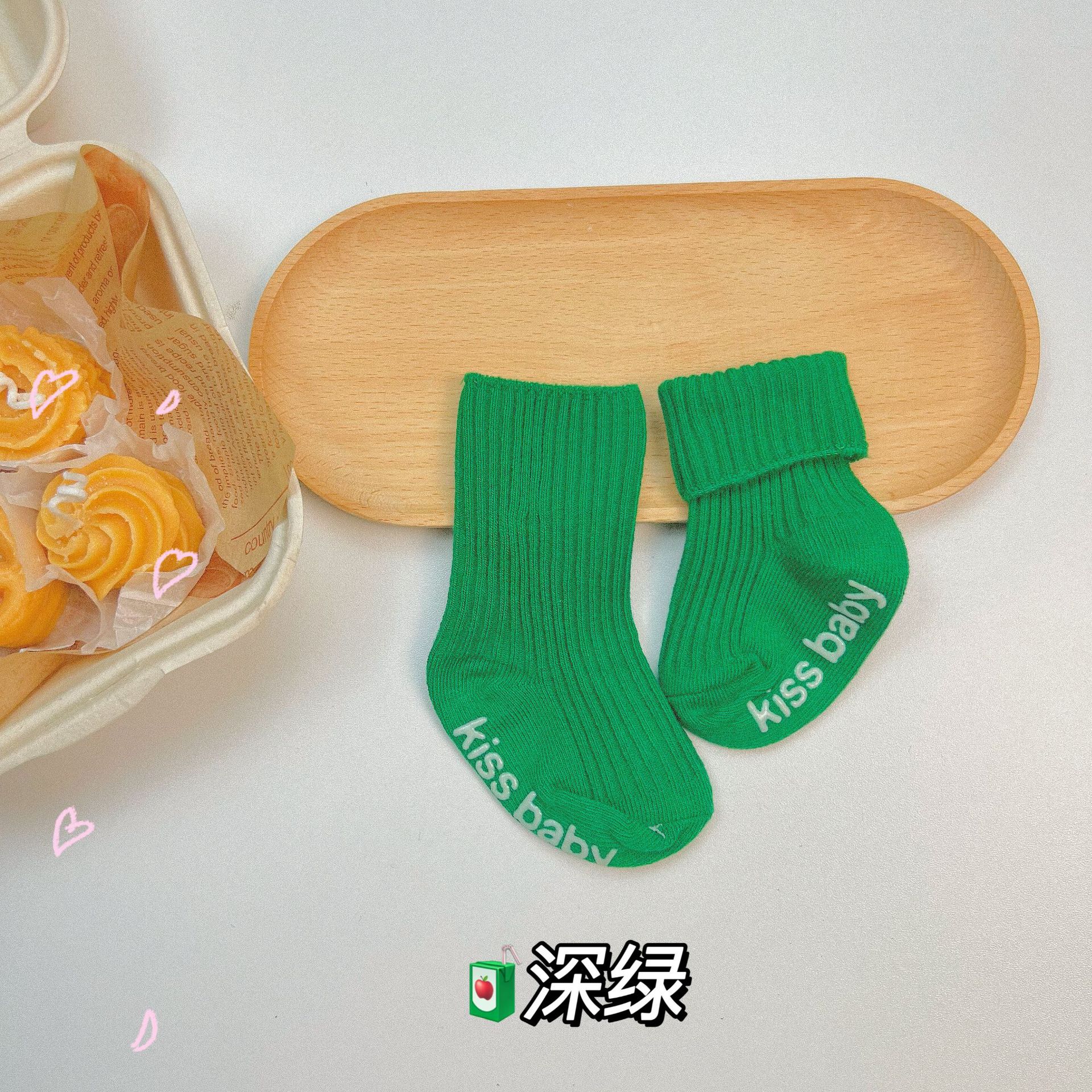 새로운 어린이 양말 Ins 스타일 아기 어린이 솔리드 컬러 미드 튜브 양말 접착제 분배 아기 양말 편안한 면 양말스토어 가기
