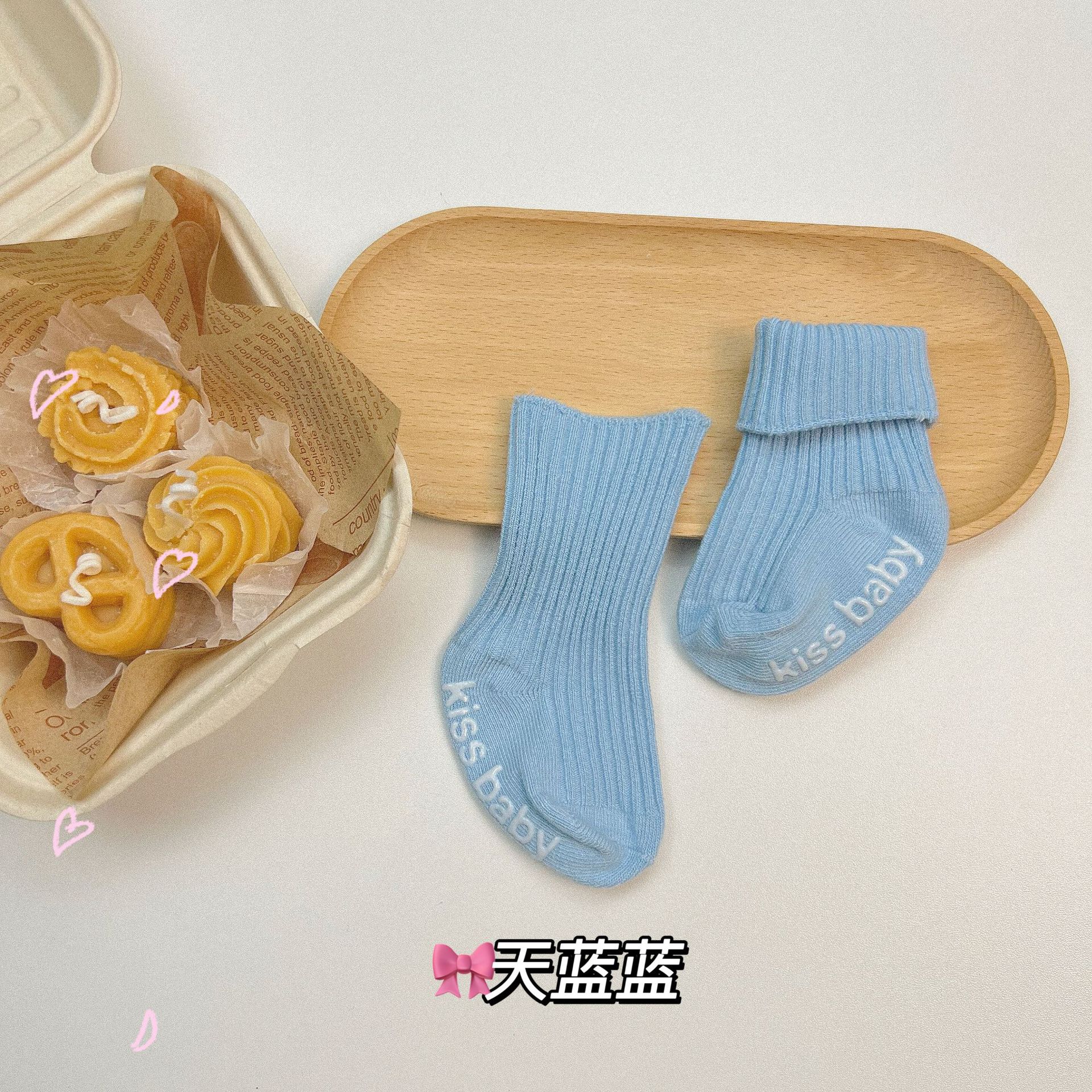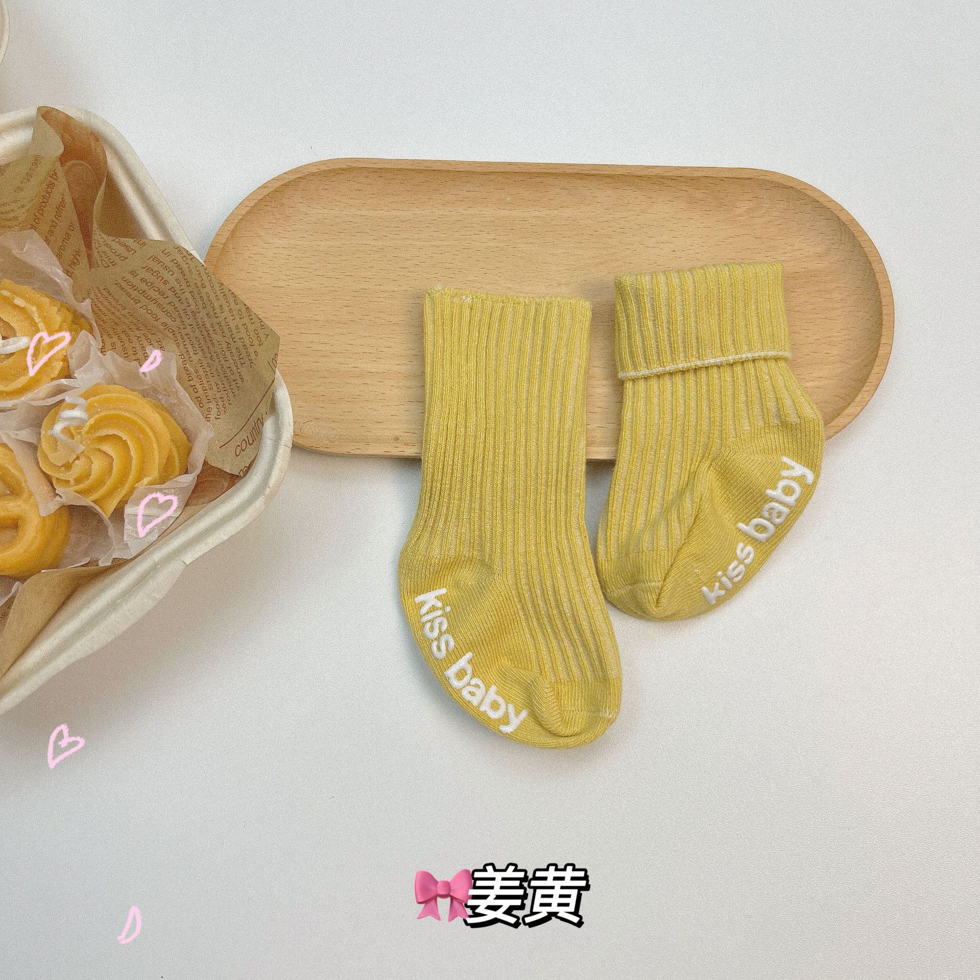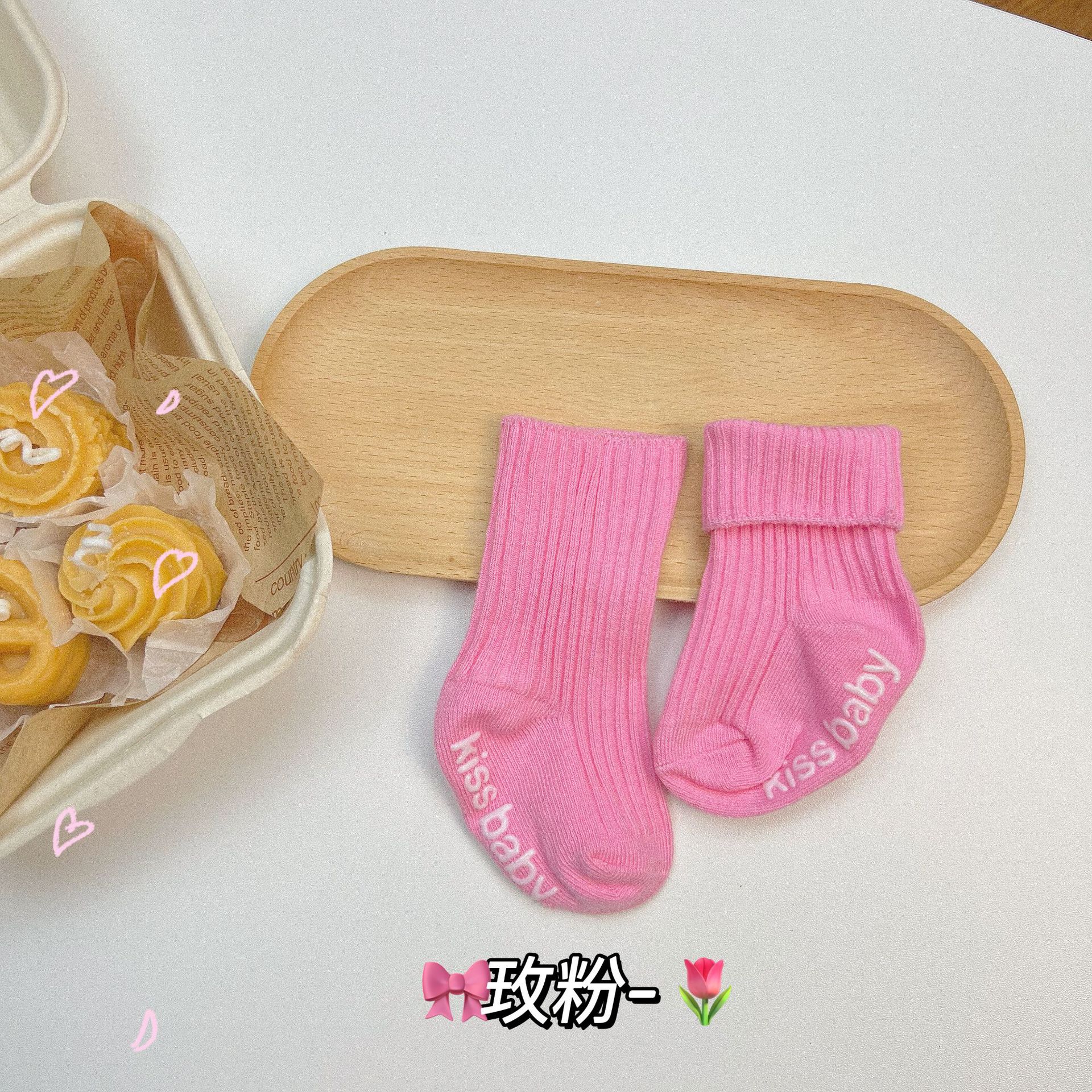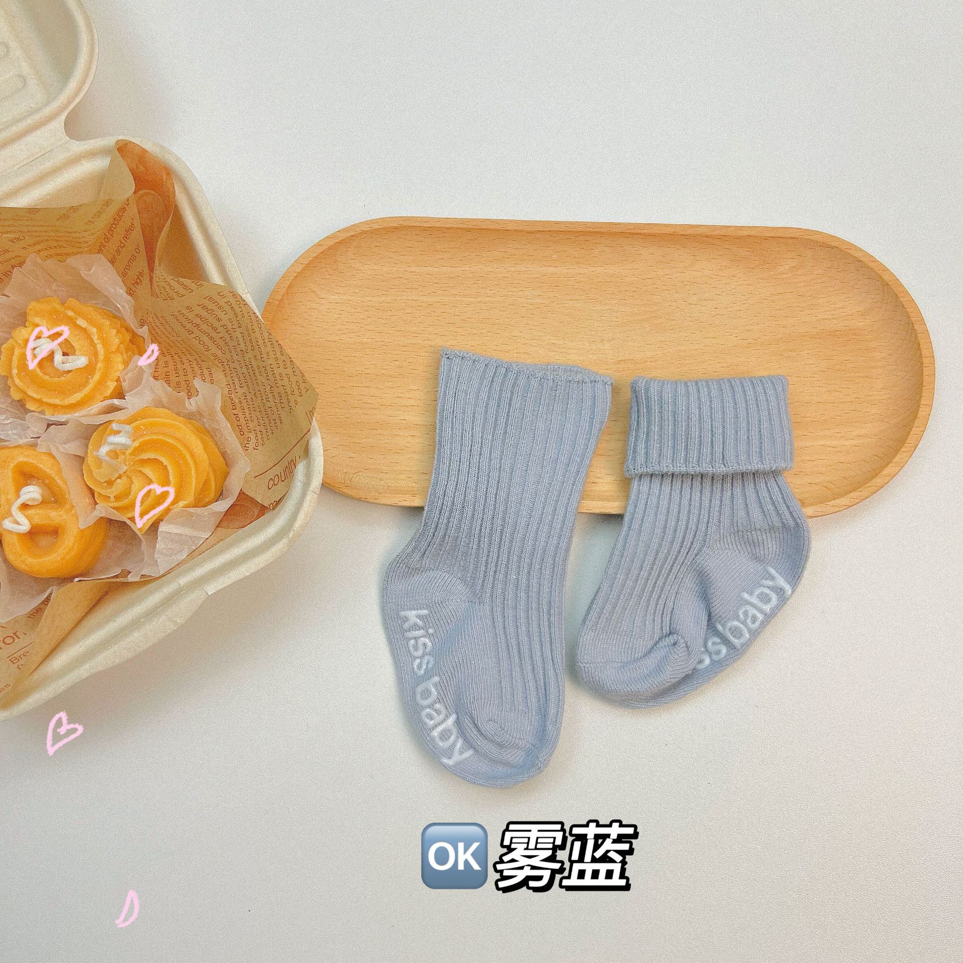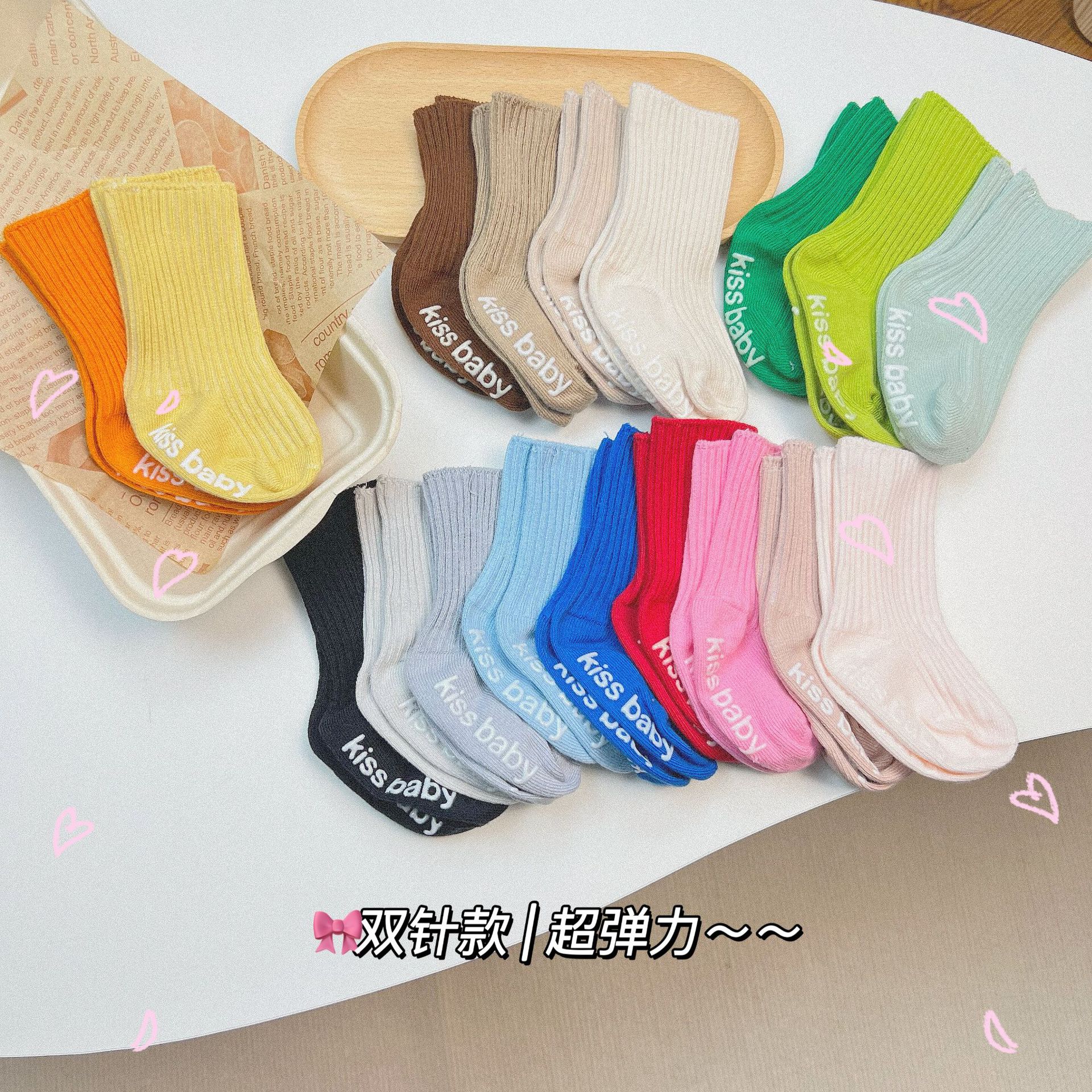 새로운 어린이 양말 Ins 스타일 아기 어린이 솔리드 컬러 미드 튜브 양말 접착제 분배 아기 양말 편안한 면 양말스토어 가기