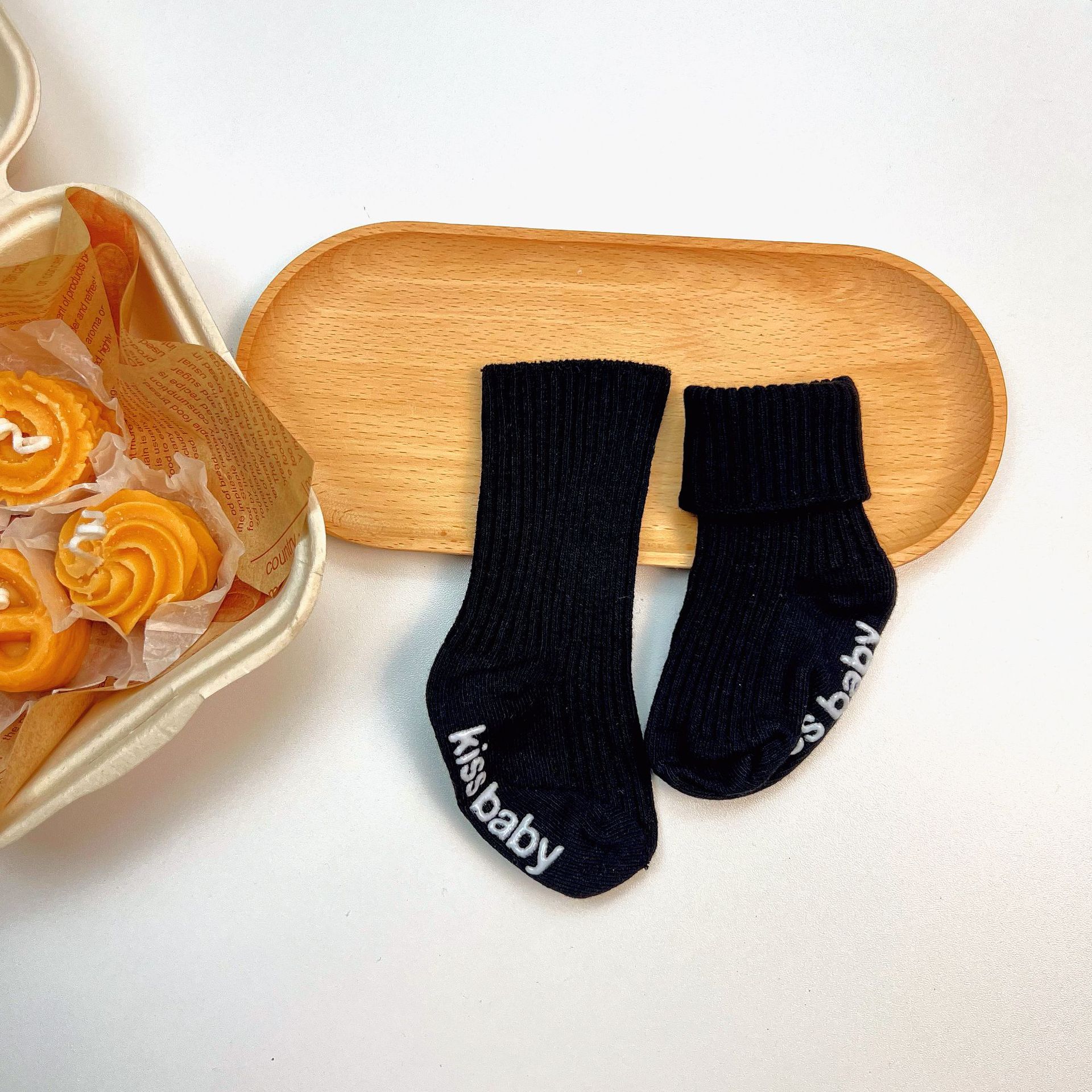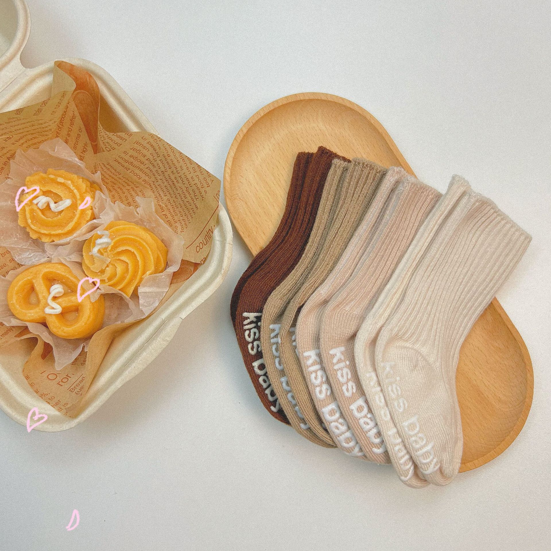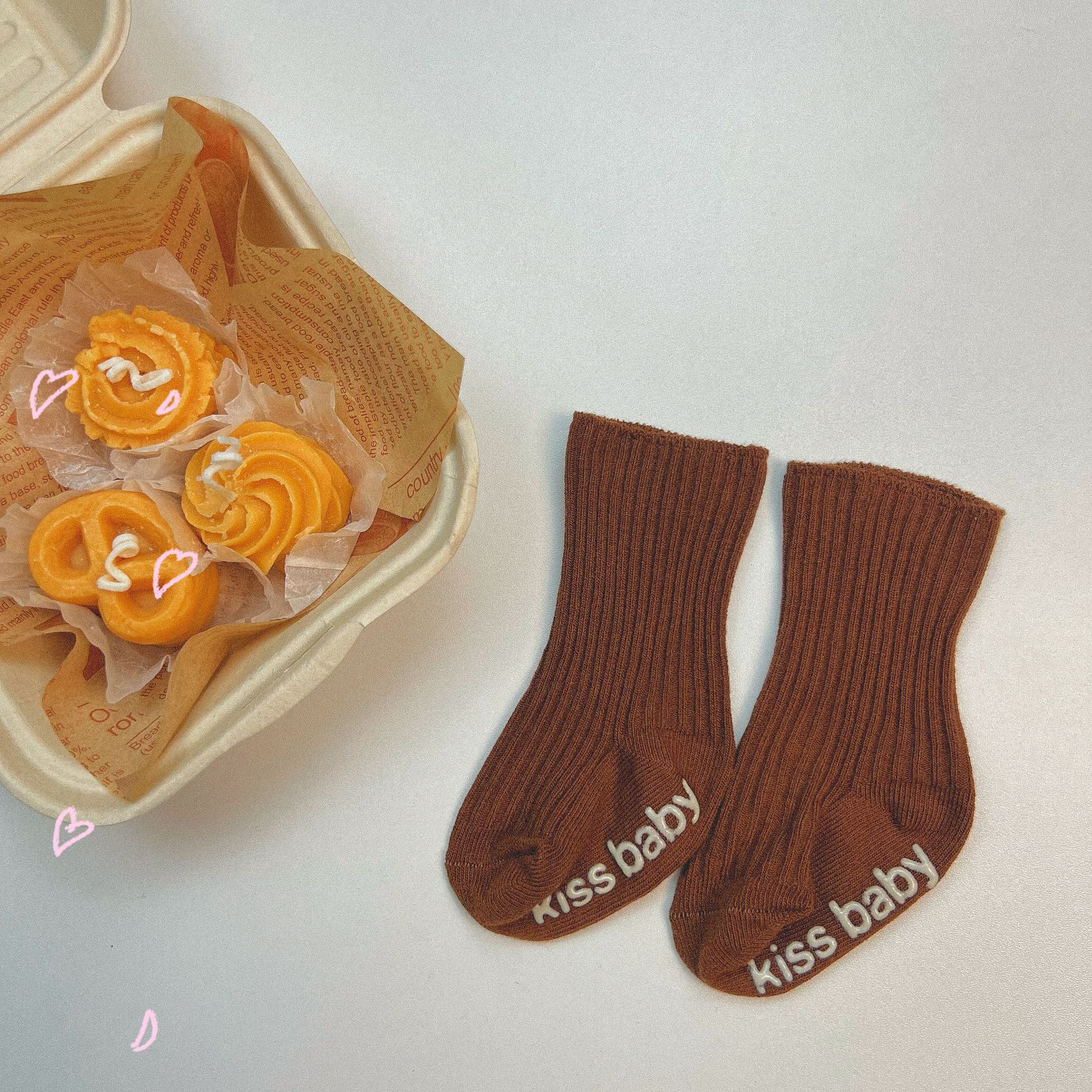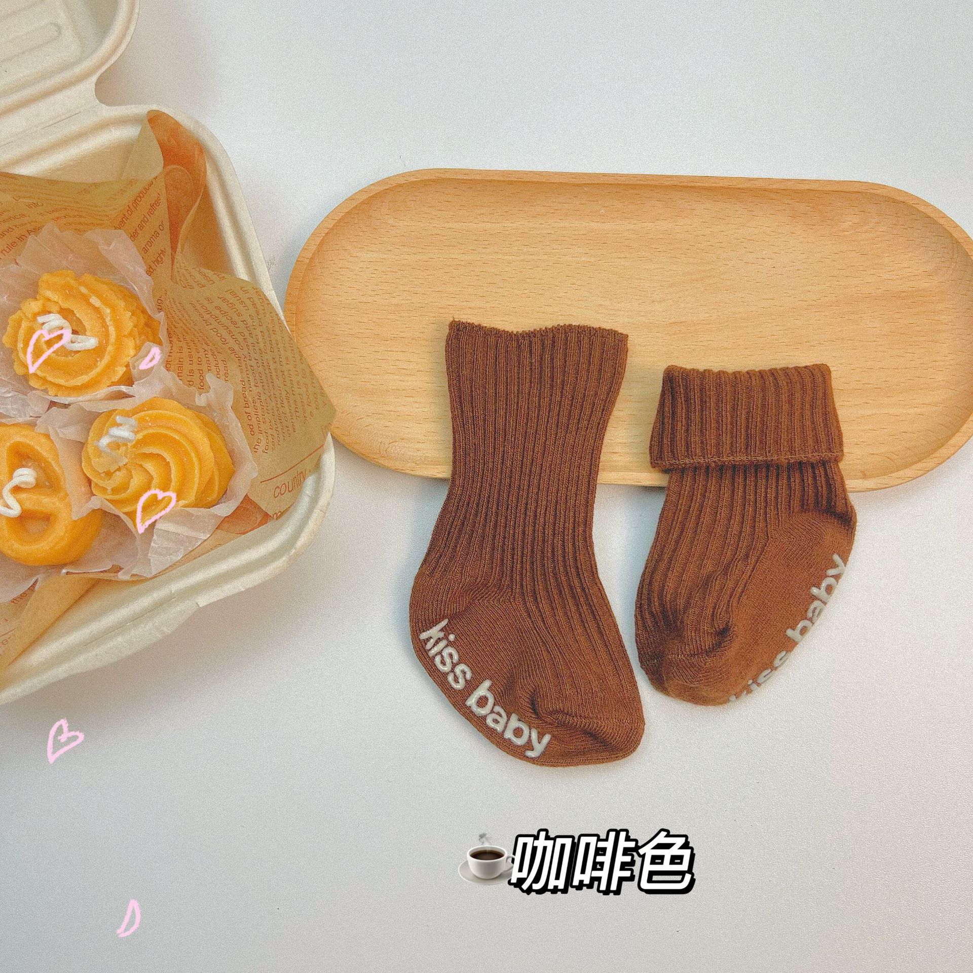 새로운 어린이 양말 Ins 스타일 아기 어린이 솔리드 컬러 미드 튜브 양말 접착제 분배 아기 양말 편안한 면 양말스토어 가기