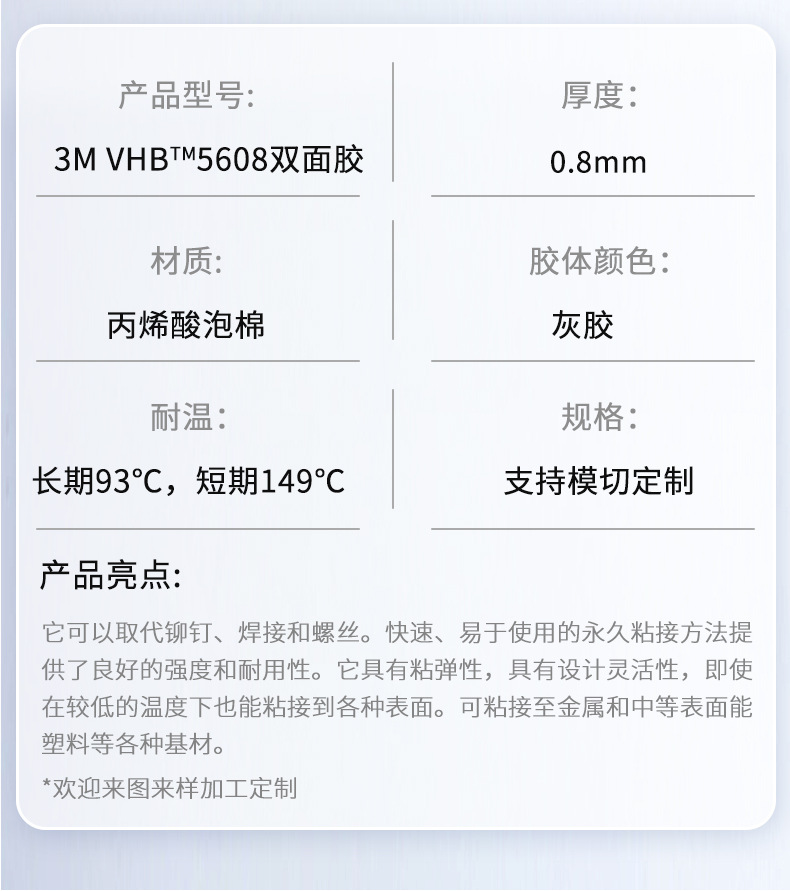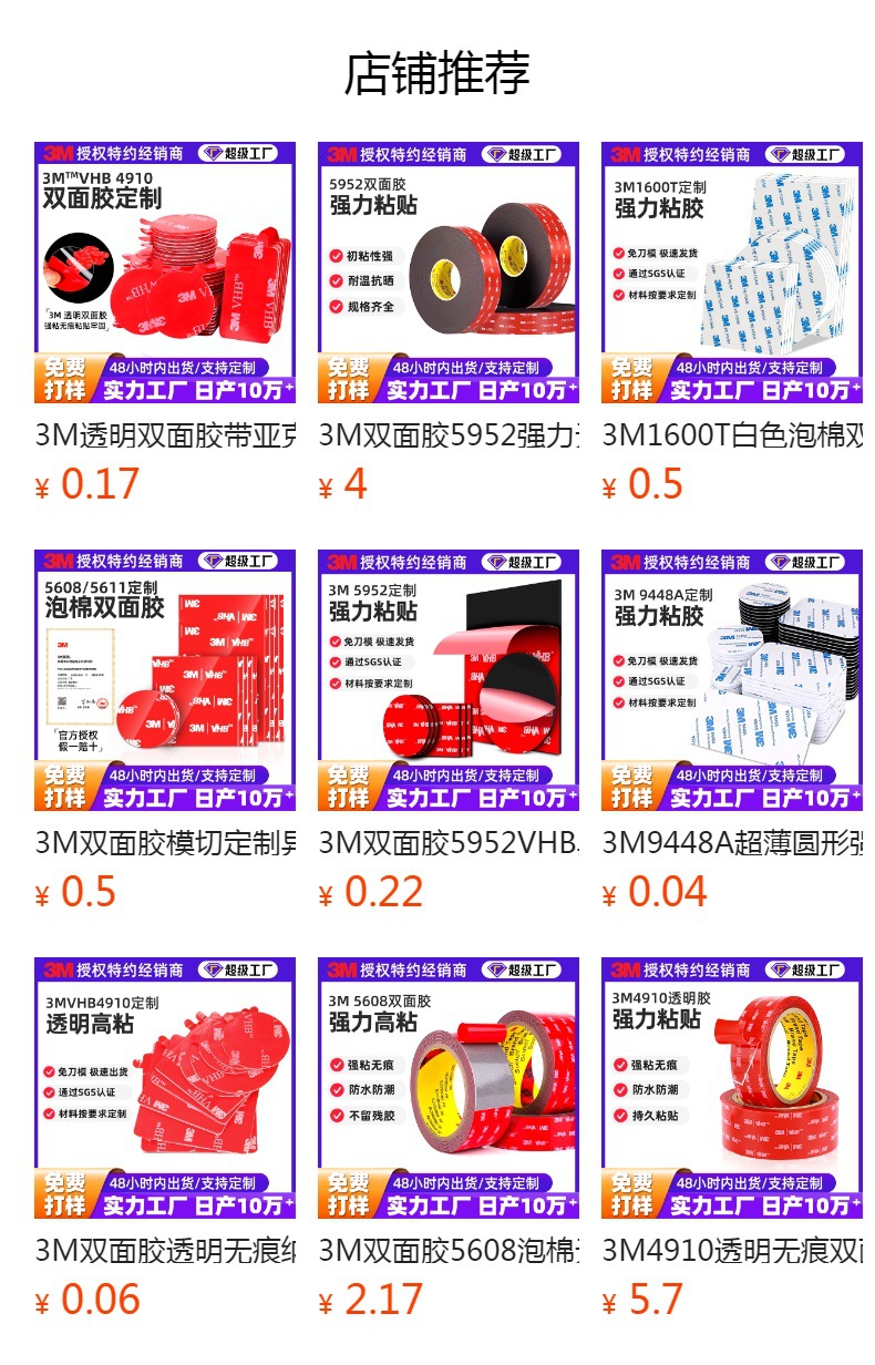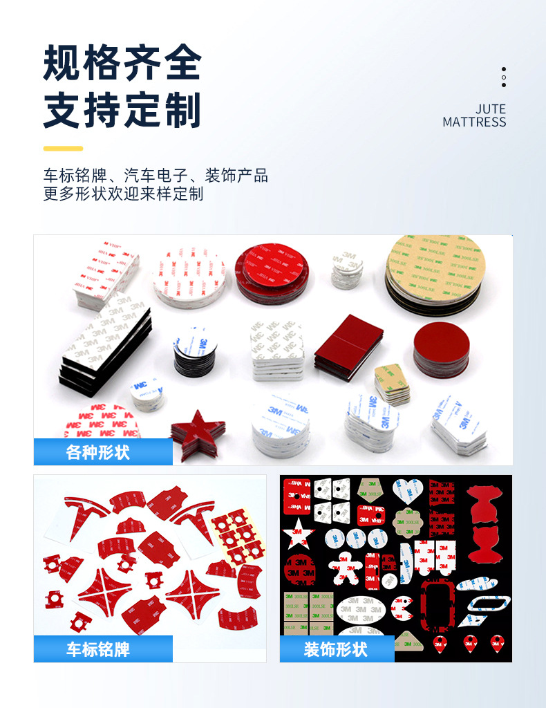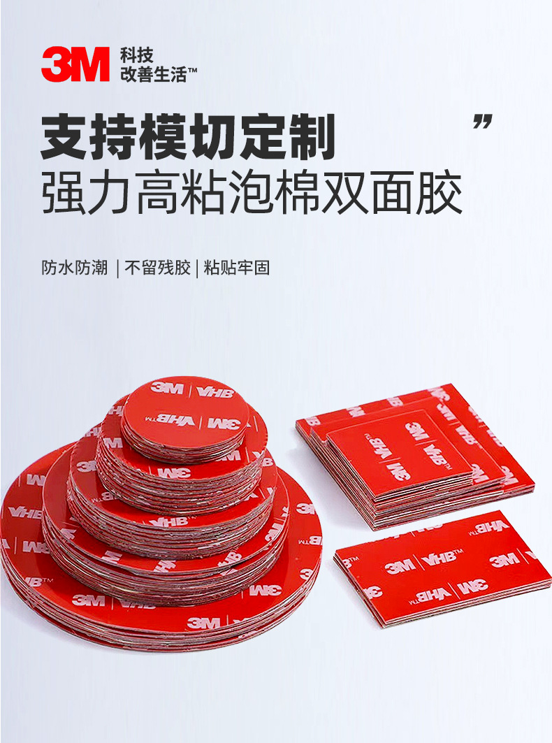 3m 양면 접착 VHB 다이 컷 라운드 접착 방수 온도 저항 높은 접착 사각형 접착 스티커 폼 맞춤형 3M 접착제스토어 가기