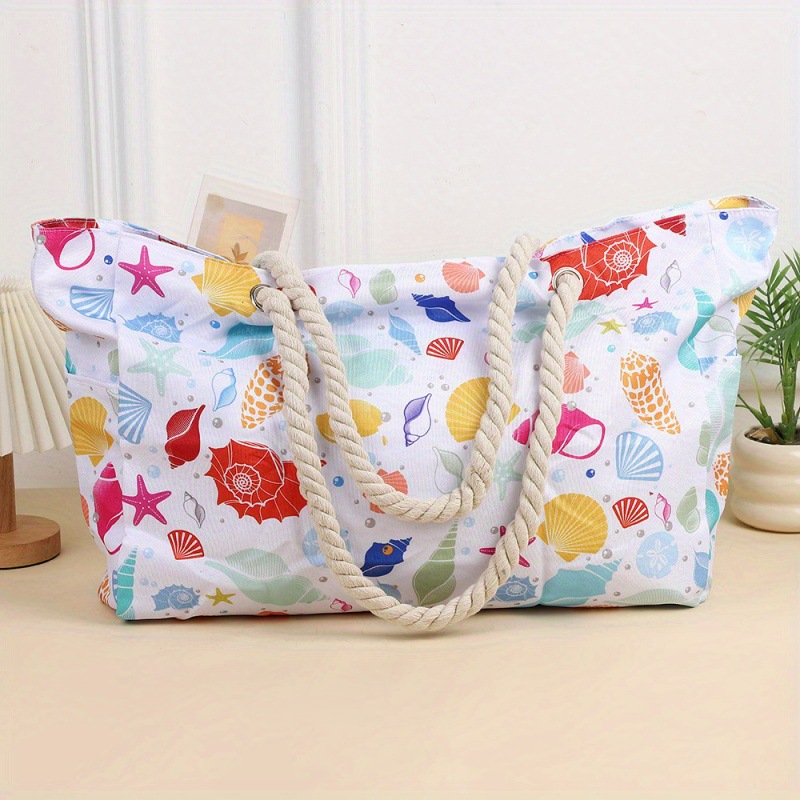 국경 간 폭발성 줄무늬 비치 백 대용량 여행 저장 가방 거친 면 휴대용 쇼핑백
