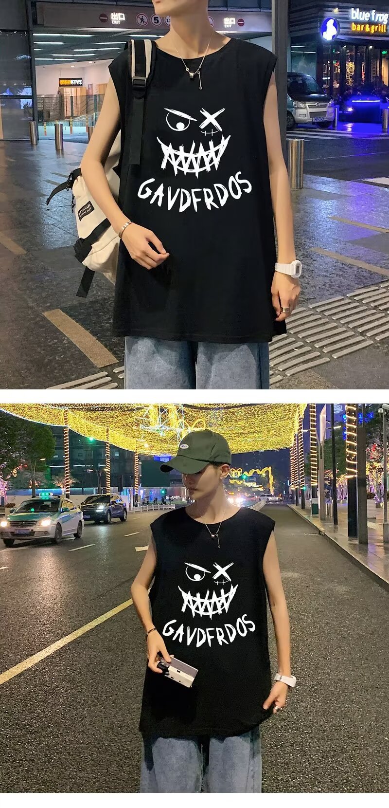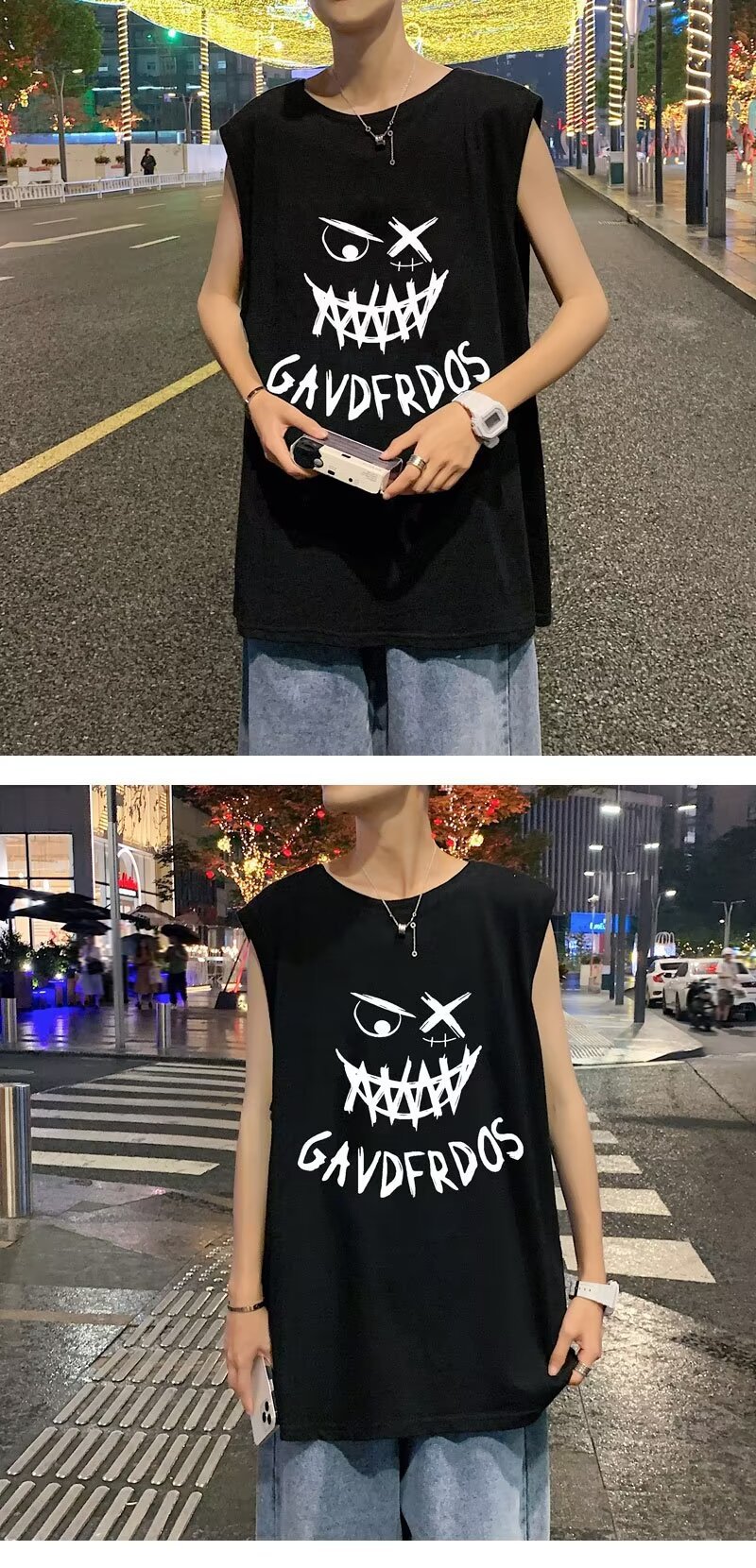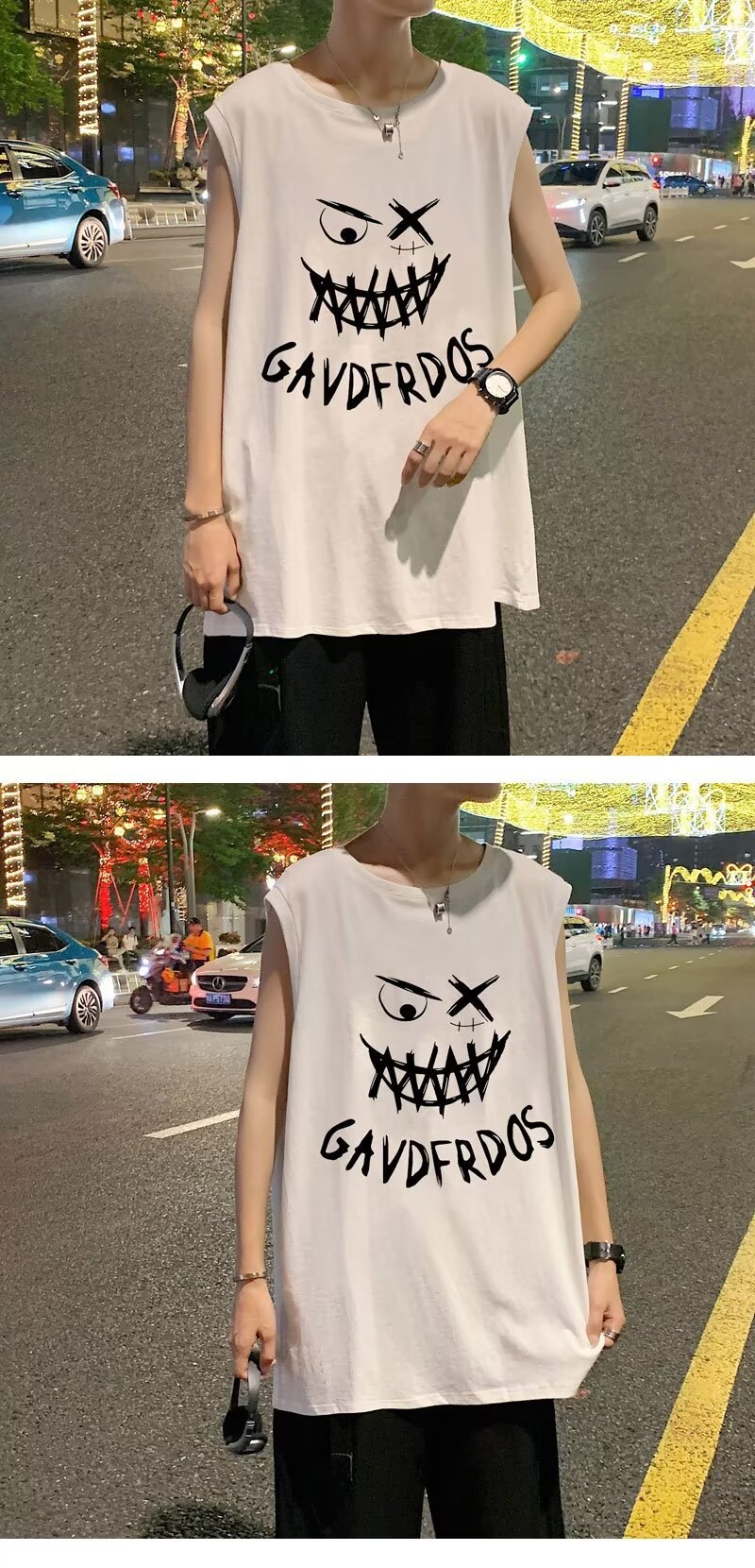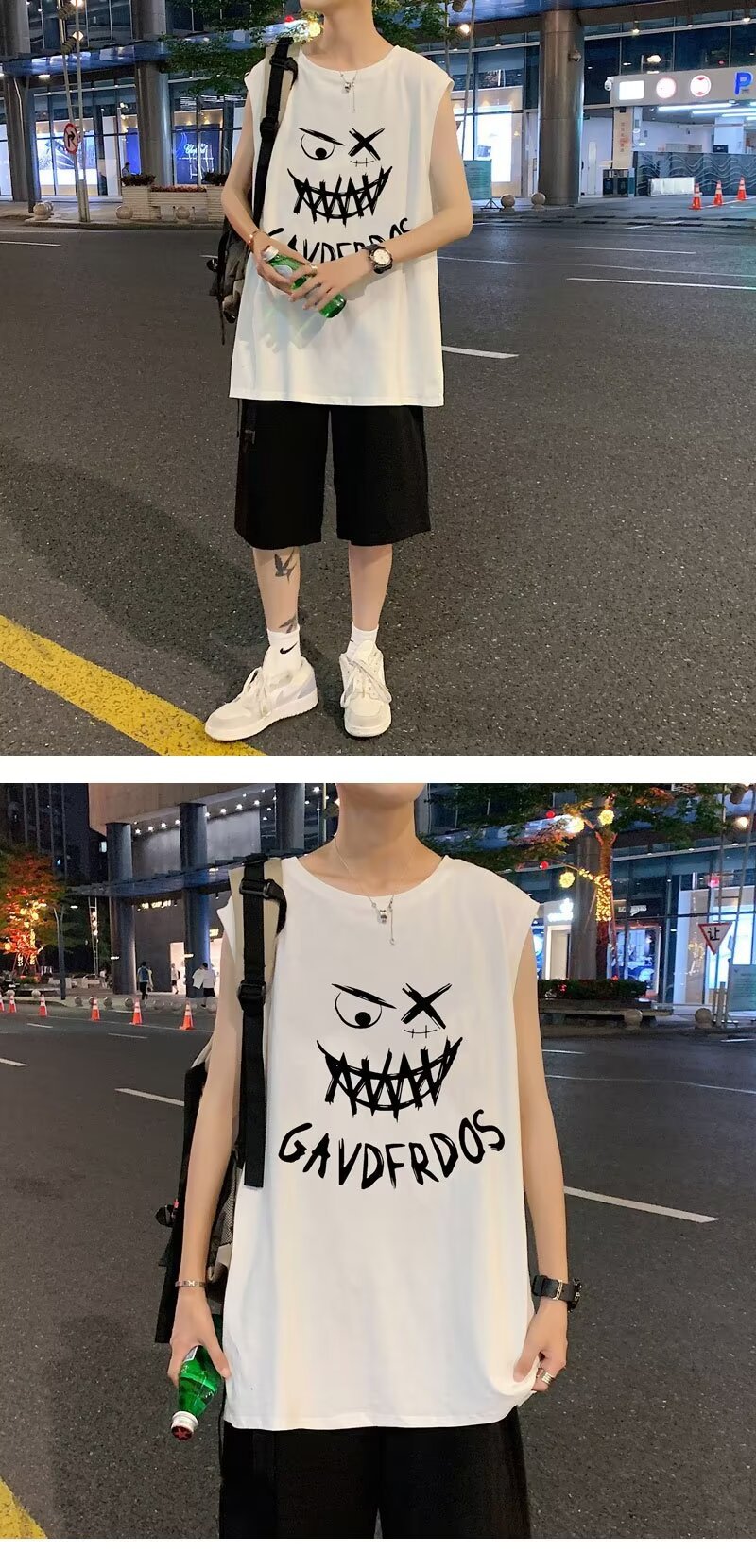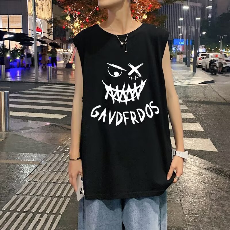 스포츠 조끼 남자 여름 얇은 트렌디 브랜드 인스타그램 스타일 민소매 티셔츠 2024 아메리칸 스타일 플러스 사이즈 느슨한 피트니스 티셔츠스토어 가기