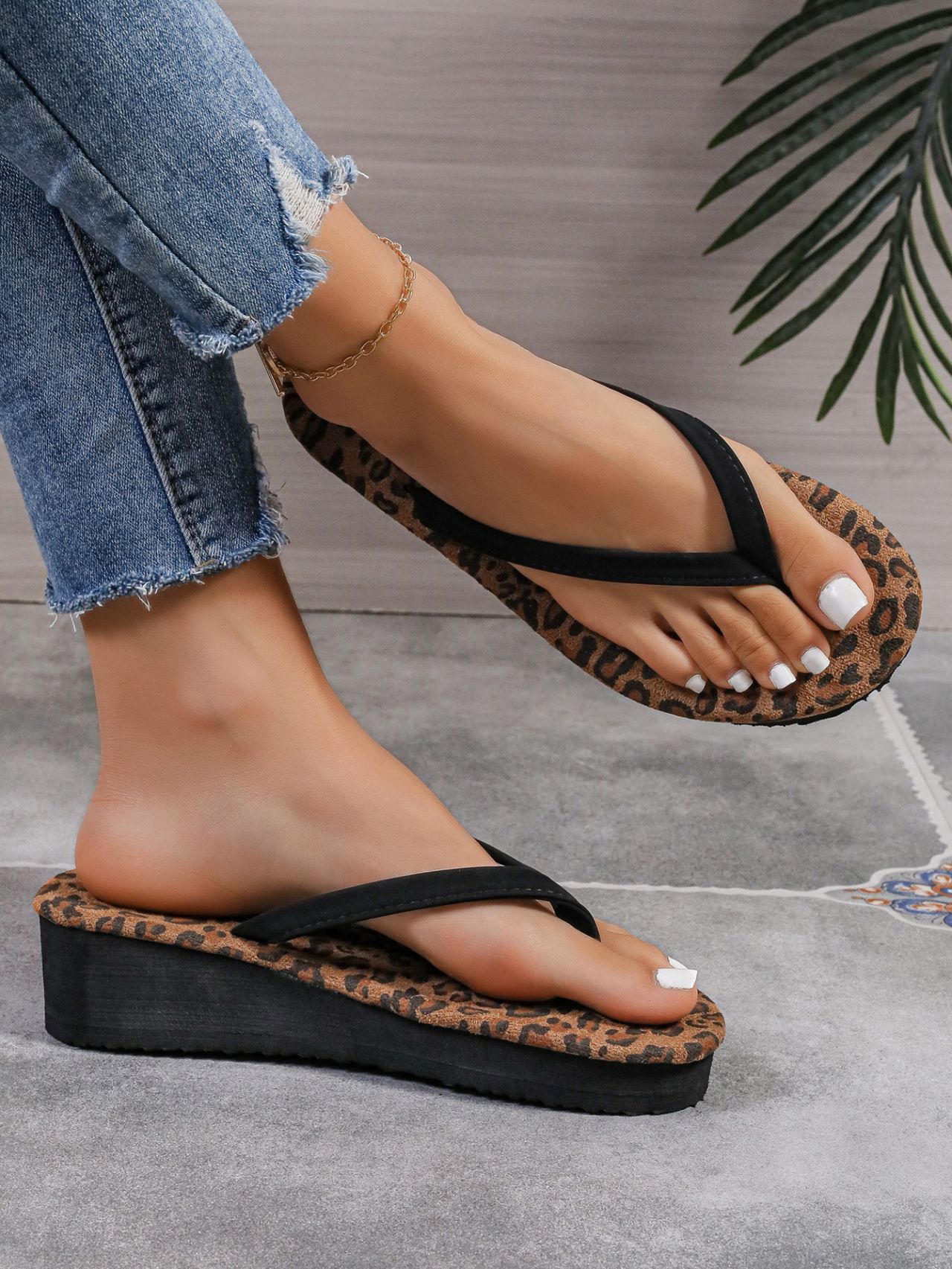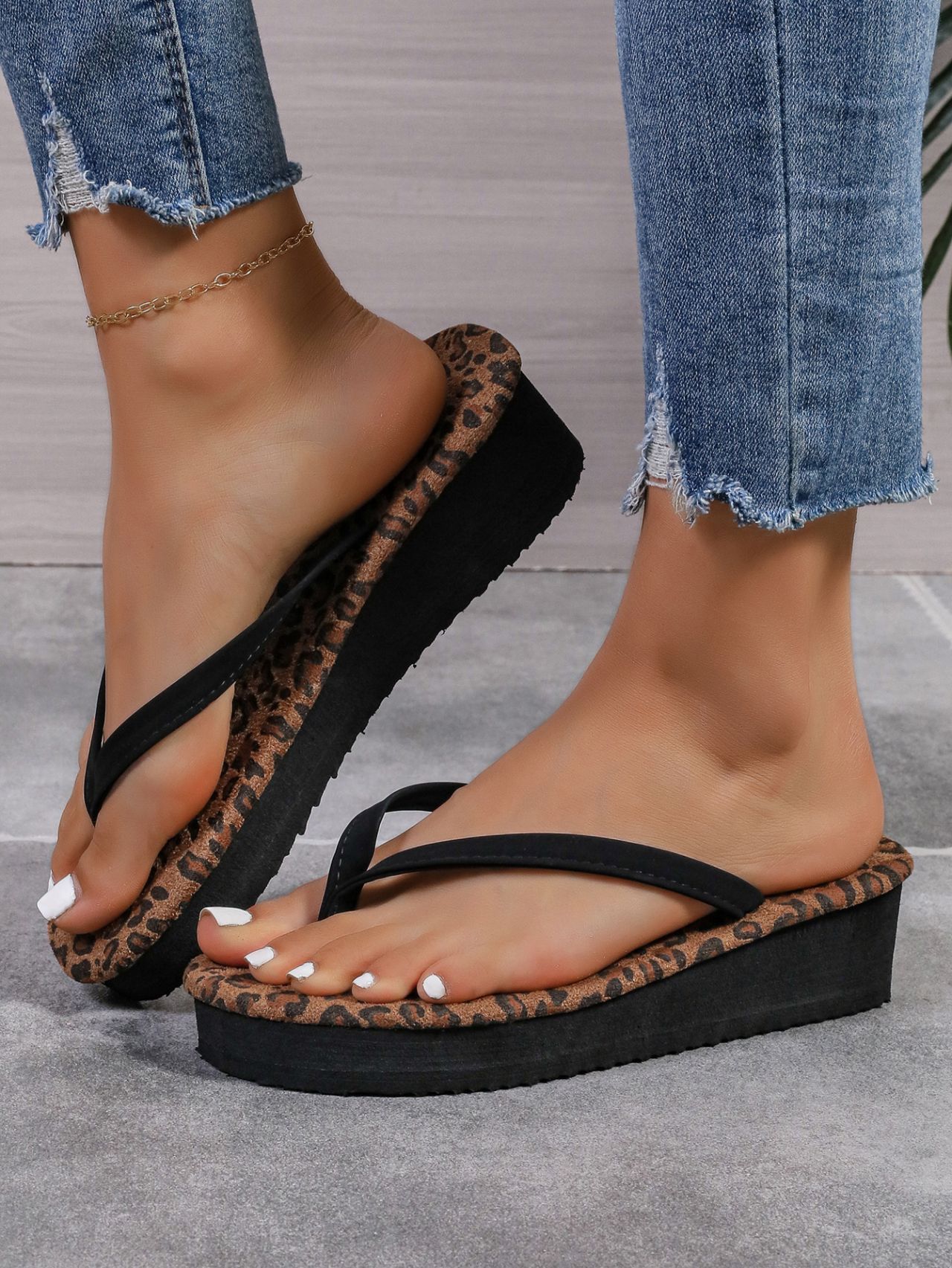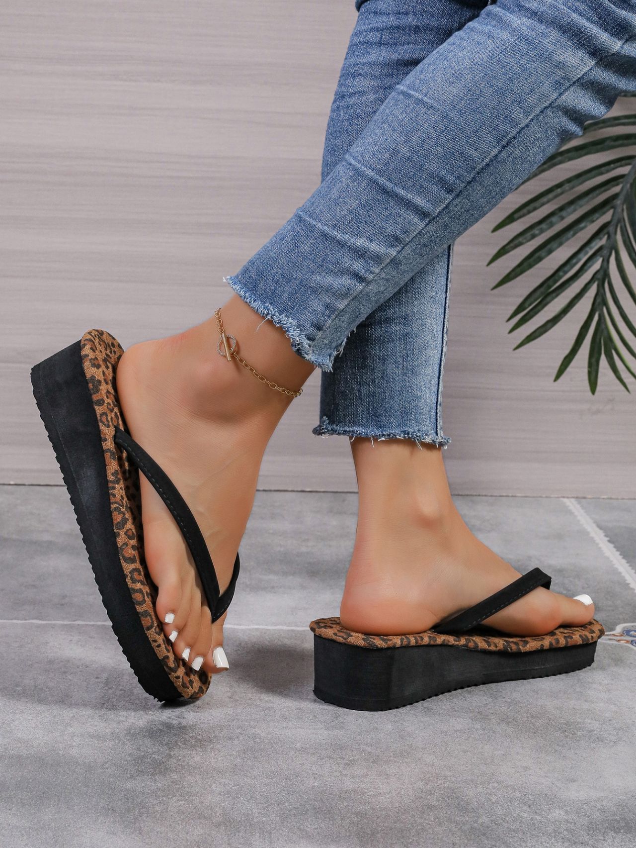 국경 2024 년 여름 대외 무역 새로운 레오파드 무늬 헤어링 클립 발 라운드 헤드 패션 여성 플러스 사이즈 웨지 슬리퍼스토어 가기