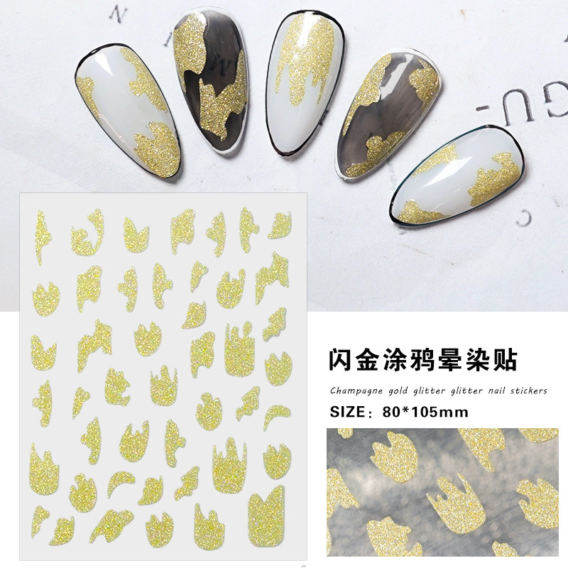 Redanco 새로운 3D 그물 붉은 폭발 플래시 골드 프랑스 네일 아트 스티커 다시 접착제 네일 스티커 꽃 보석 도매