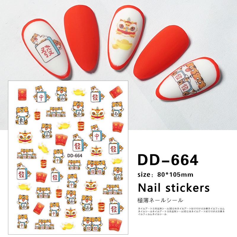 Redanco 새로운 3D 그물 붉은 폭발 호랑이 년 매니큐어 스티커 접착제 네일 스티커 도매