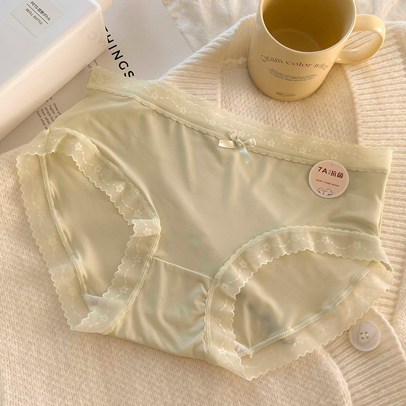 신상 일본식 심플한 중간 허리 무봉제 여성용 속옷 순면 안감 7A 항균 초박형 아이스 실크 여성 삼각 팬티