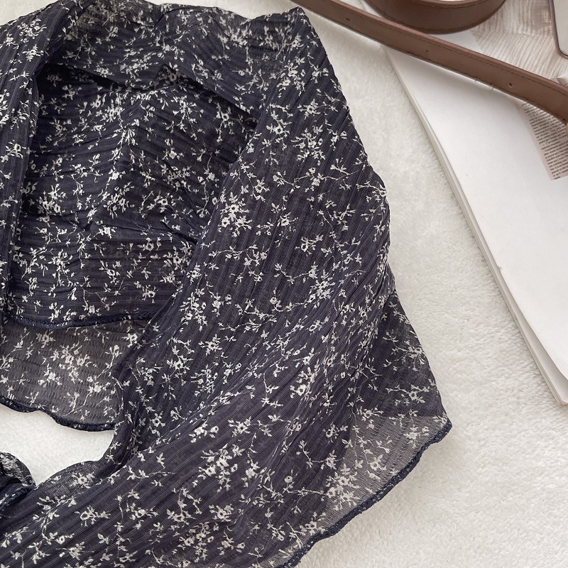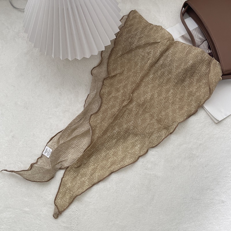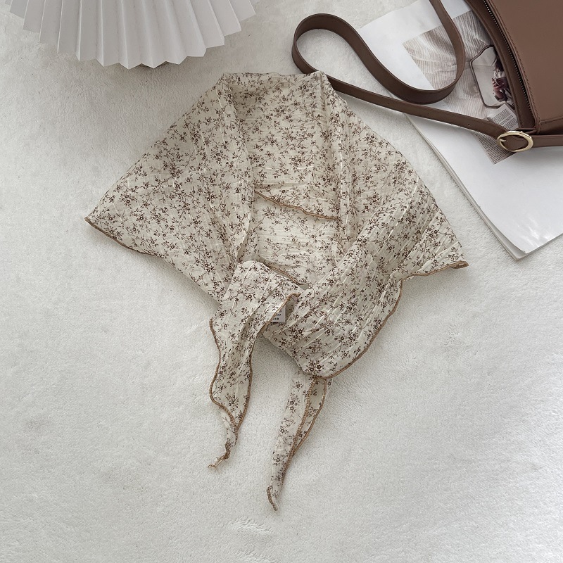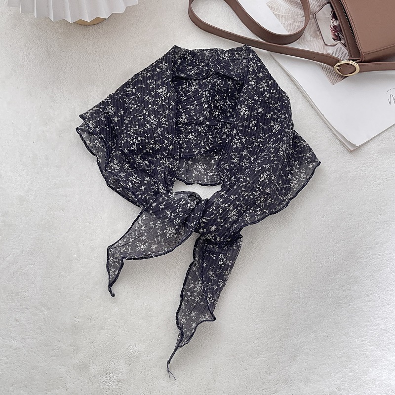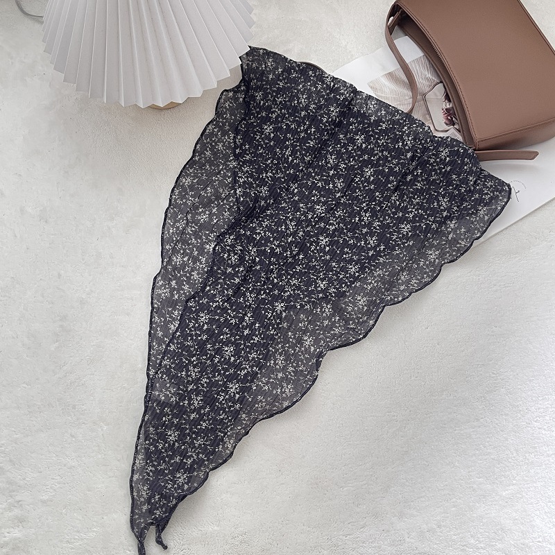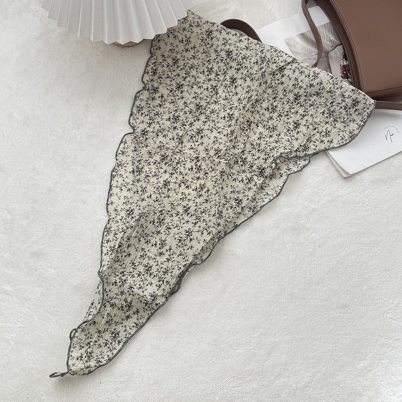2024 새로운 스타일 실크 스카프 여성의 봄과 여름 장식 삼각형 스카프 유행 올 매치 쉬폰 작은 스카프 프랑스 스타일 헤어 리본