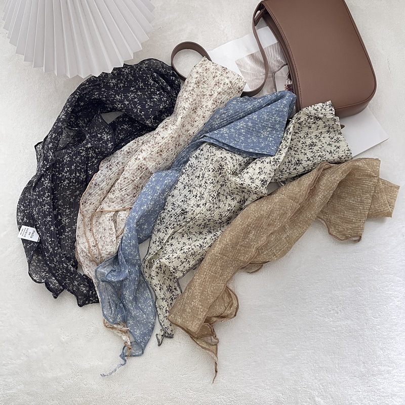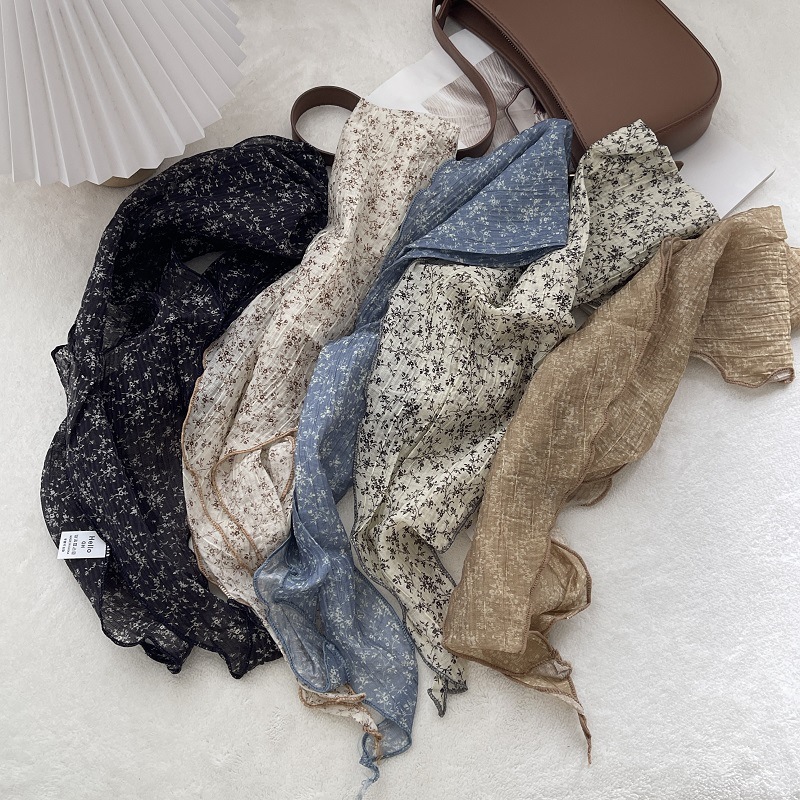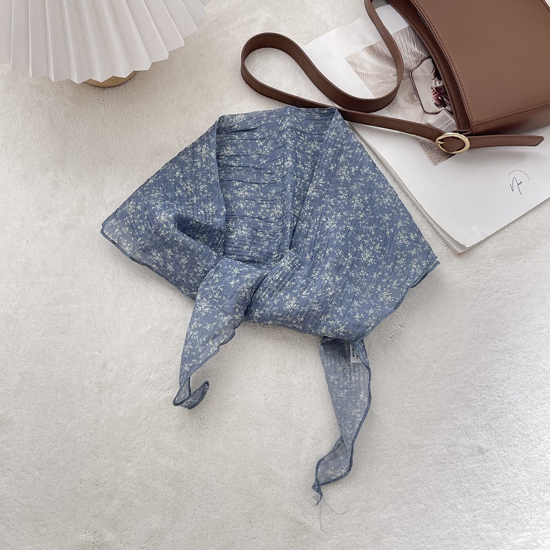 2024 새로운 스타일 실크 스카프 여성의 봄과 여름 장식 삼각형 스카프 유행 올 매치 쉬폰 작은 스카프 프랑스 스타일 헤어 리본스토어 가기