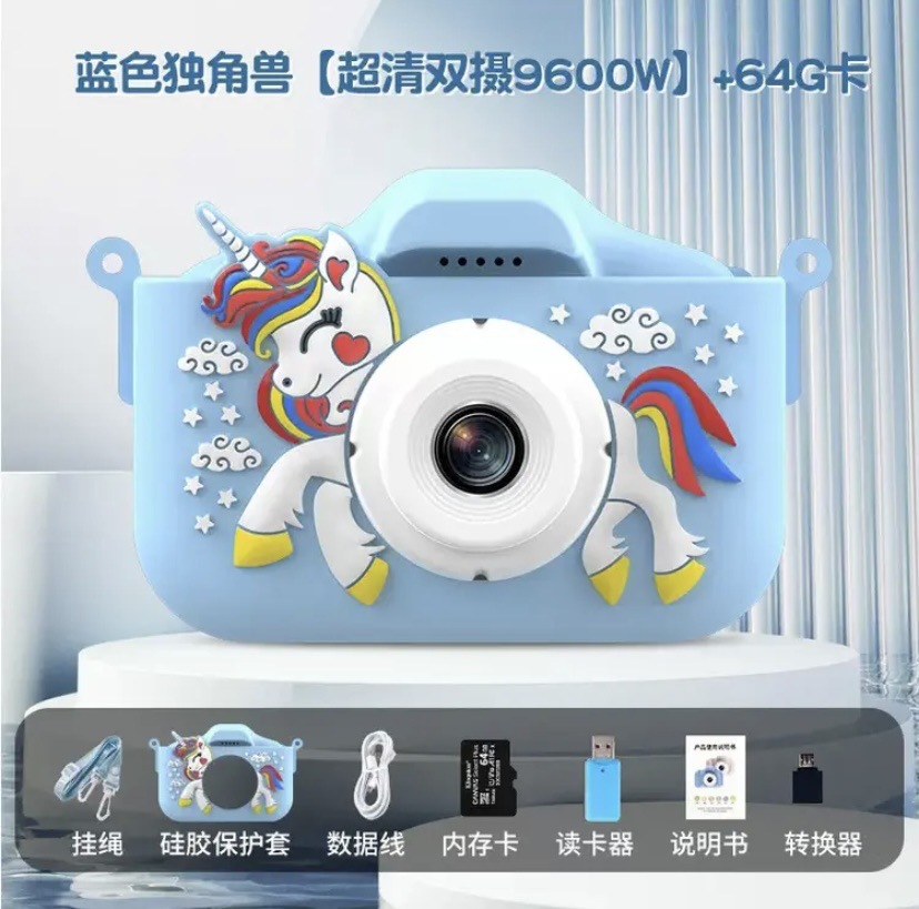 • (유니콘 블루) HD 듀얼 카메라 9600W 64G 메모리 카드