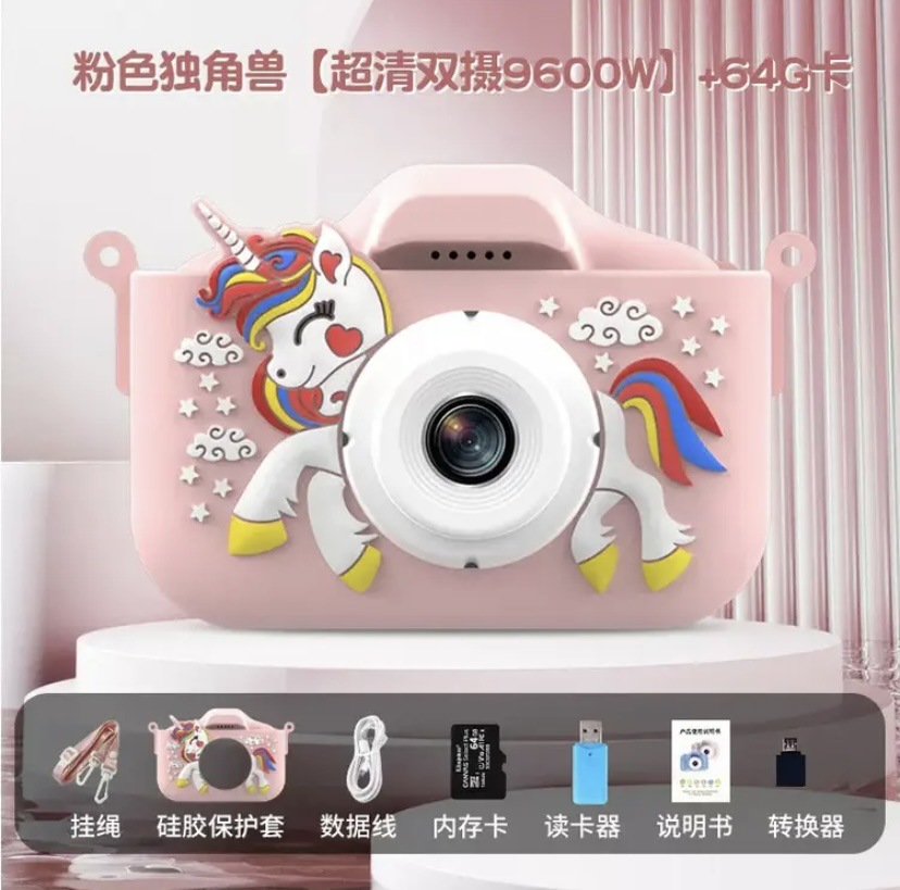• (유니콘 핑크) HD 듀얼 카메라 9600W 64G 메모리 카드