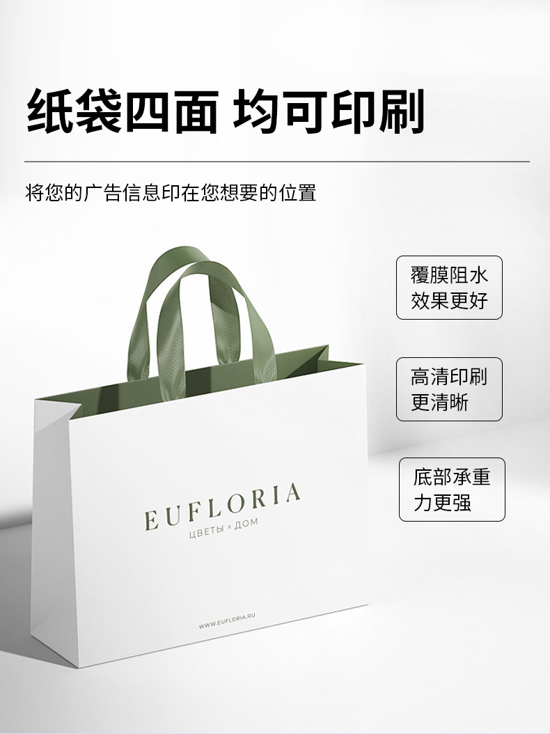 • 주문 전 고객센터에 문의하세요. 250g 손잡이형 쇼핑백 전용 백상지; 높이 360*260*80