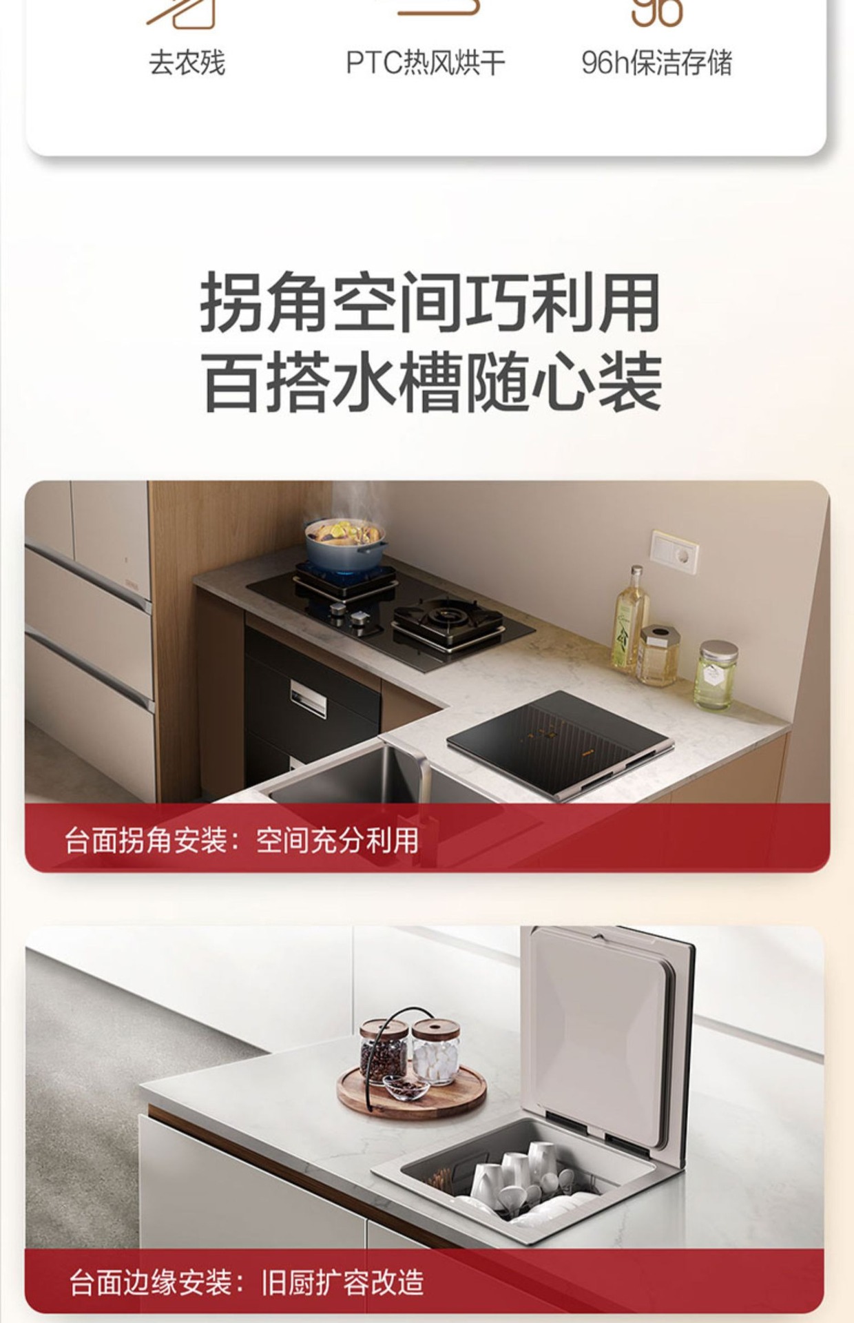 팡. 너무 싱크대 식기 세척기 02-CT03D 자동 가정용 소독 및 건조 단일 통합 싱크스토어 가기