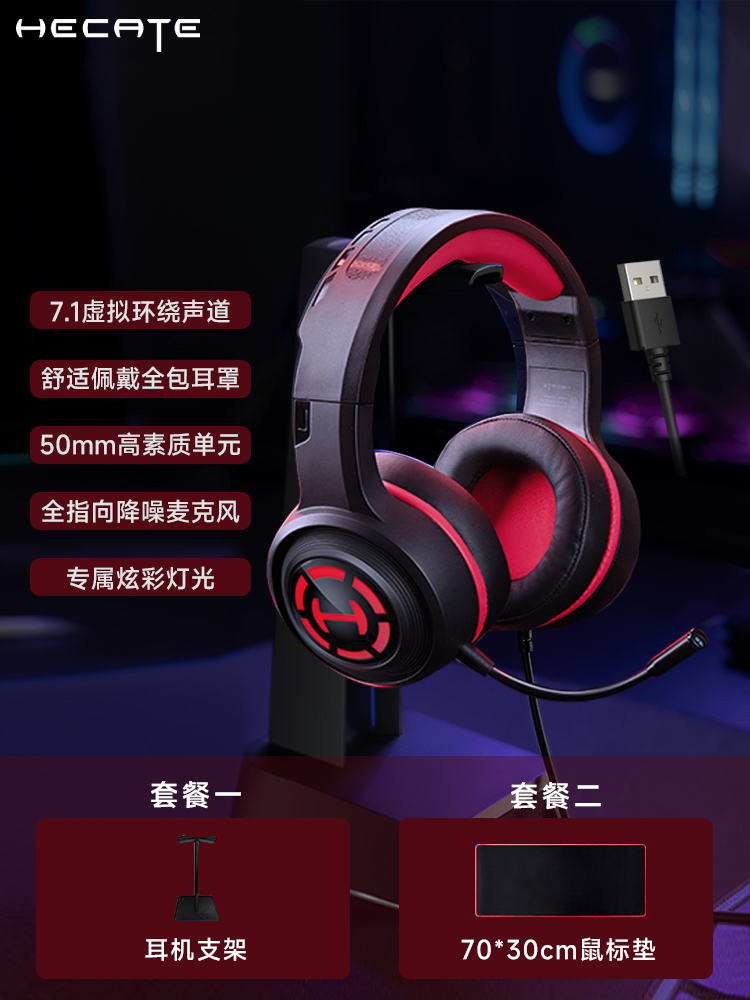 • 공식 표준 헤드폰 Qingying Black Red 7.1 서라운드 사운드☆뛰어난 음질 √ 편안한 착용