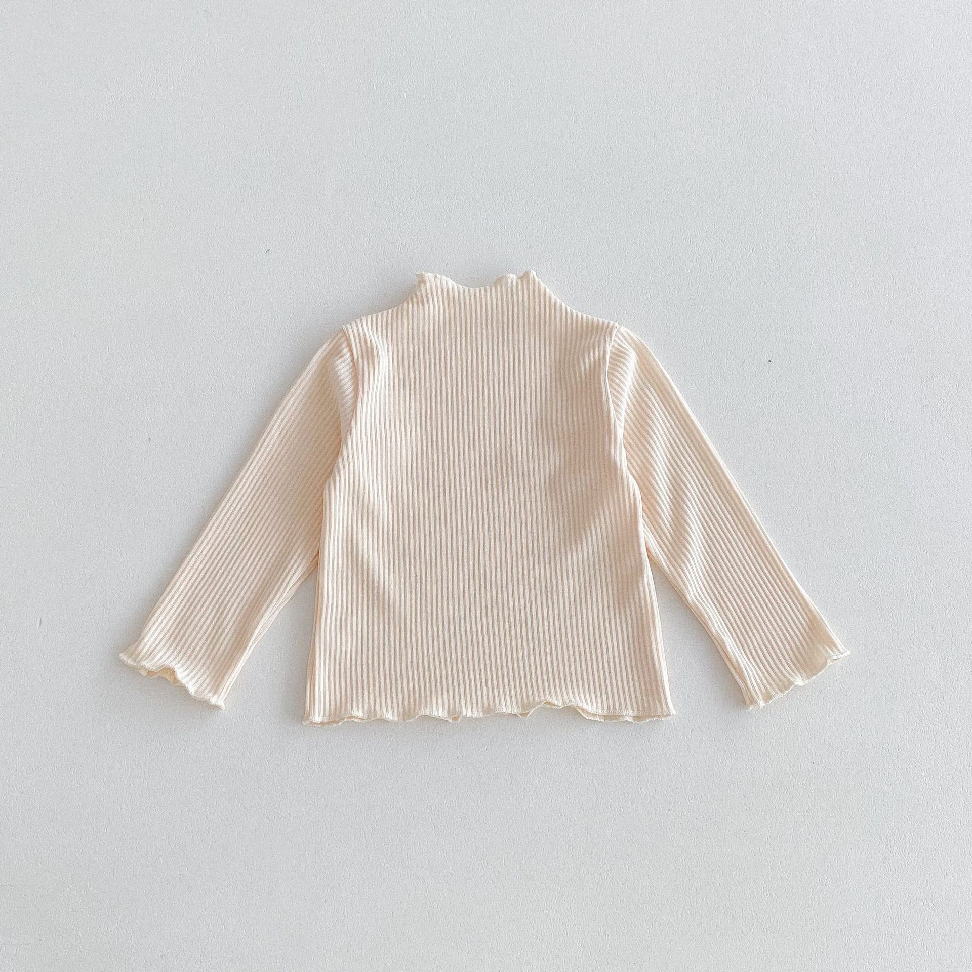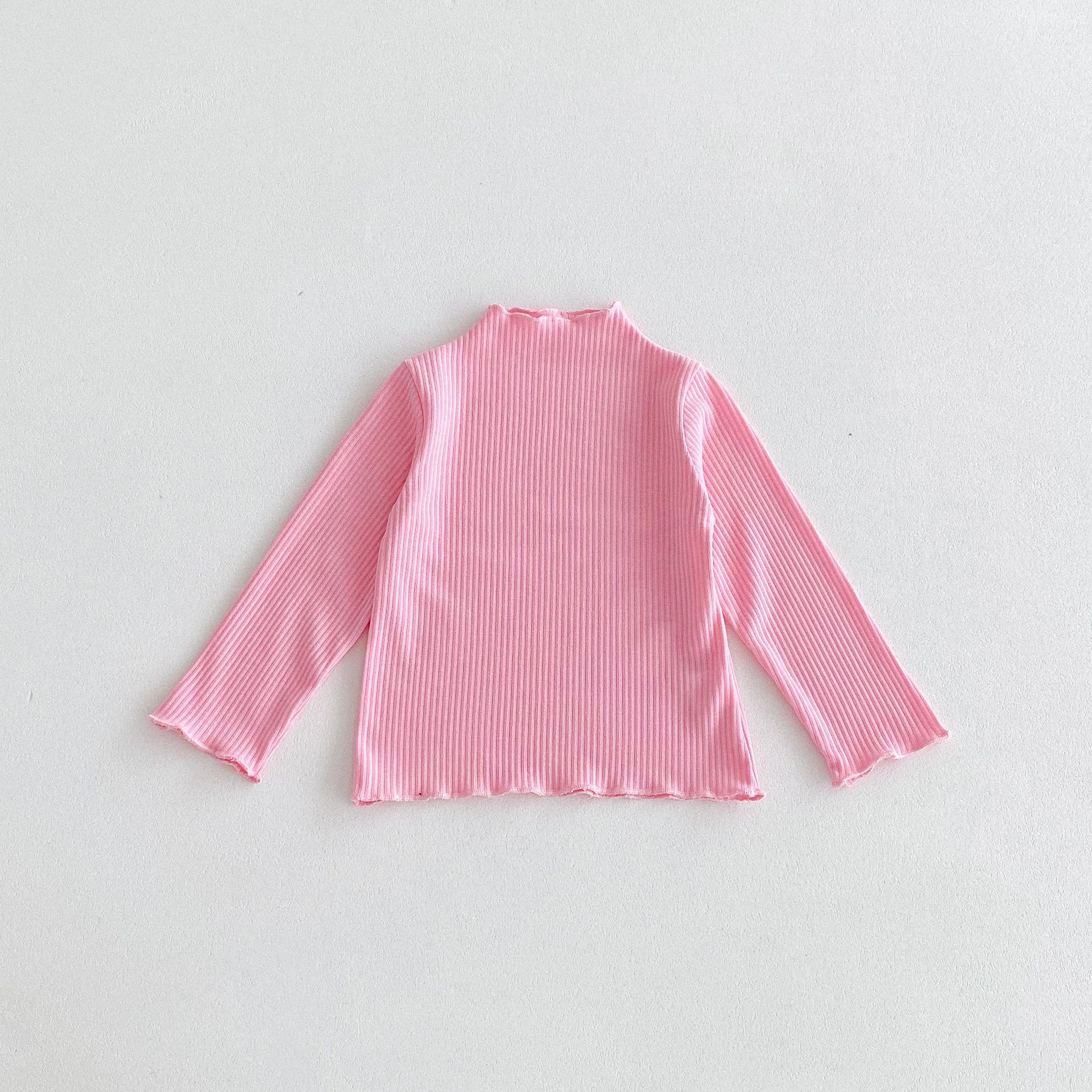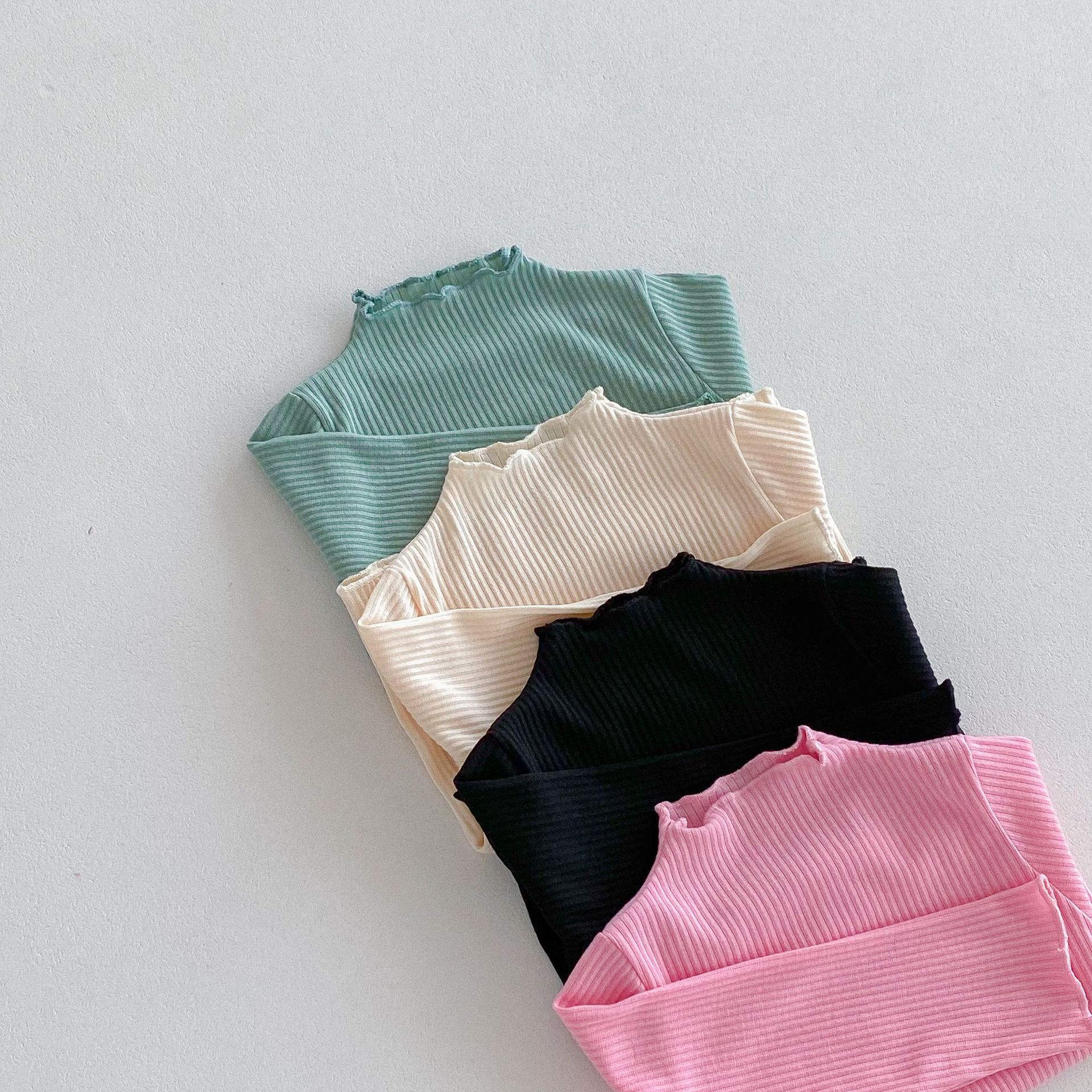 가을 소녀 솔리드 컬러 코튼 하프 하이 칼라 내부 티셔츠 아동복 올매치 긴소매 베이스 레이어 셔츠 탑스토어 가기