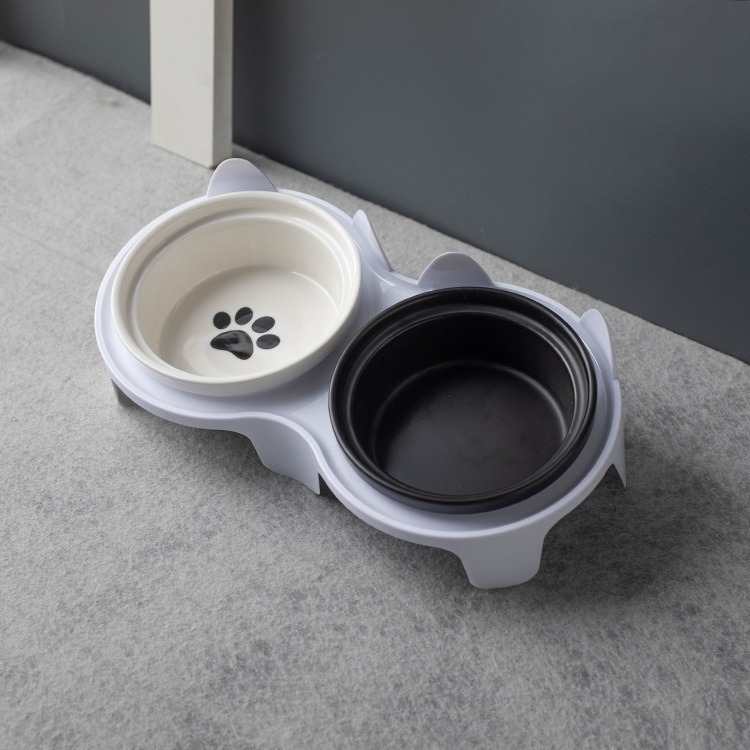 고양이 그릇 세라믹 고양이 음식 분지 고양이 그릇 애완 동물 보울 경부 척추 방지 입 보호 음주 및 먹이를위한 팁 방지 더블 그릇스토어 가기