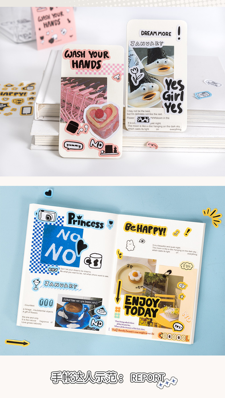 달콤한 단어는 조용히 금형 스티커 간단한 스타일 낙서 영어 표현 장식 기본 손 계정 콜라주