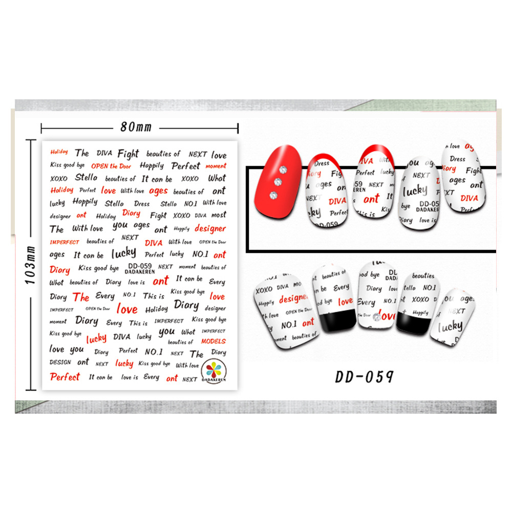 Redanco 새로운 3D 그물 붉은 폭발 영어 편지 네일 스티커 접착 네일 데칼 도매 DD-059