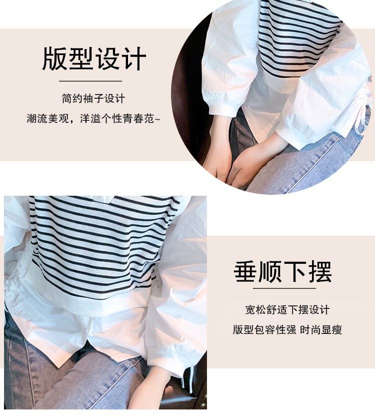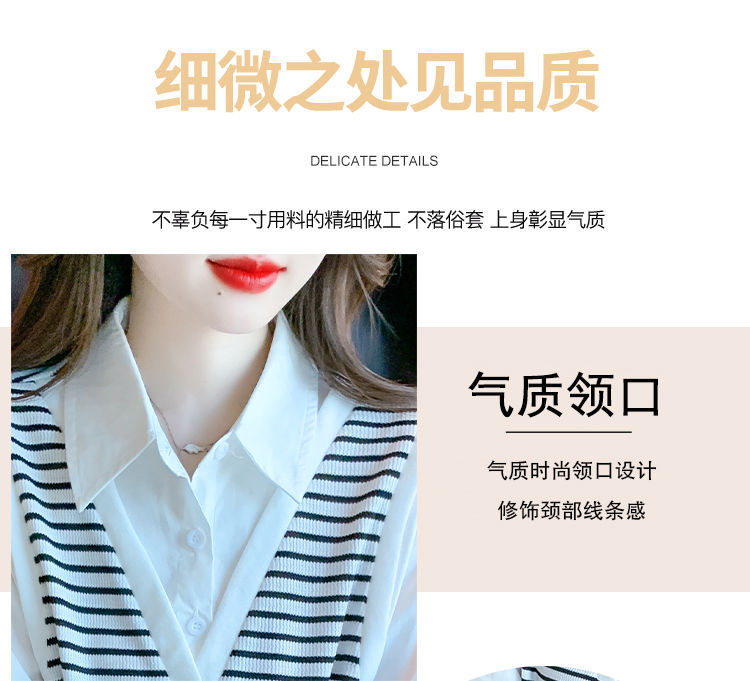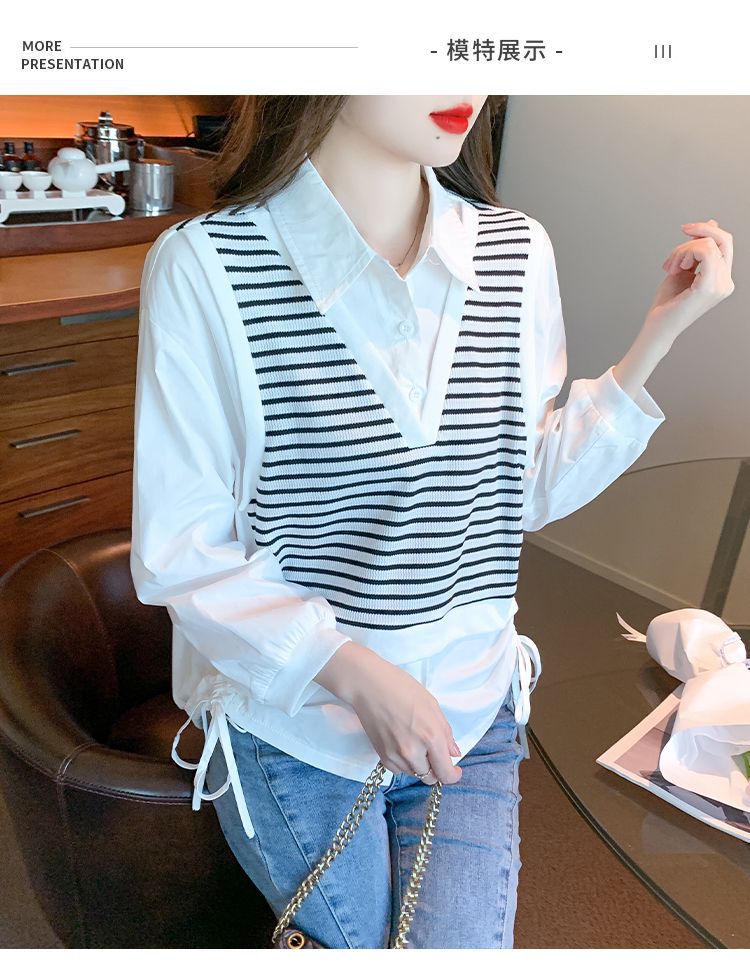 가짜 투피스 스트라이프 셔츠 여성복 2025 신상 가을 폴로 칼라 드로스트링 긴팔 쉬폰 탑 예쁜 블라우스스토어 가기