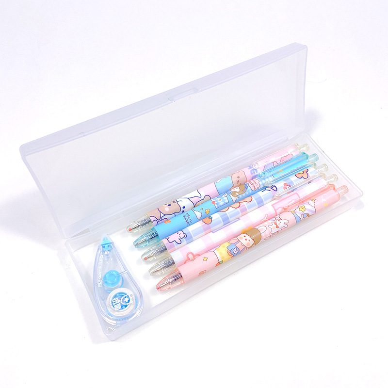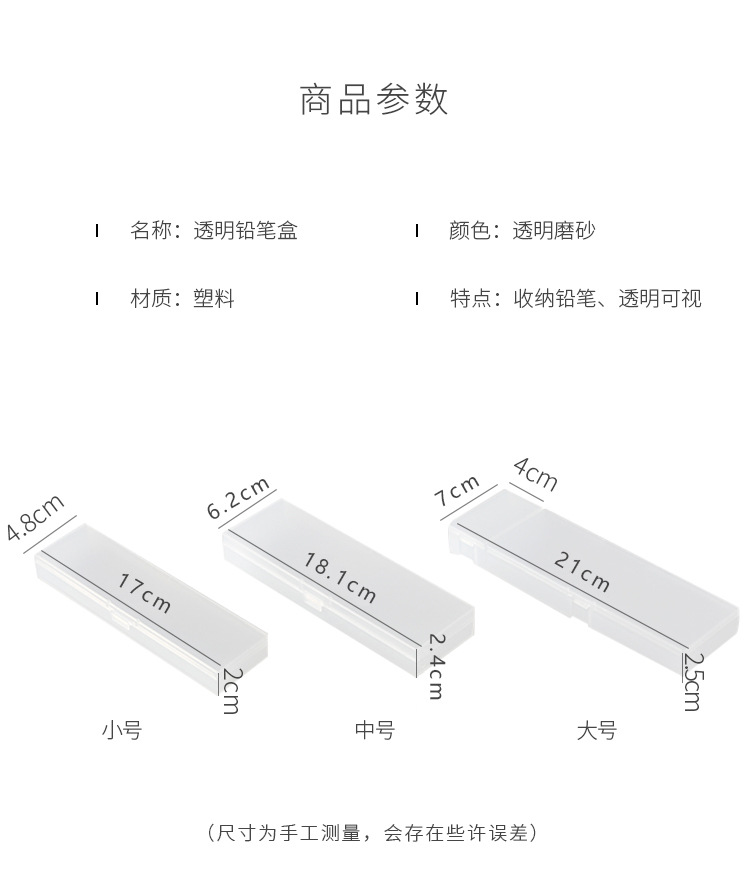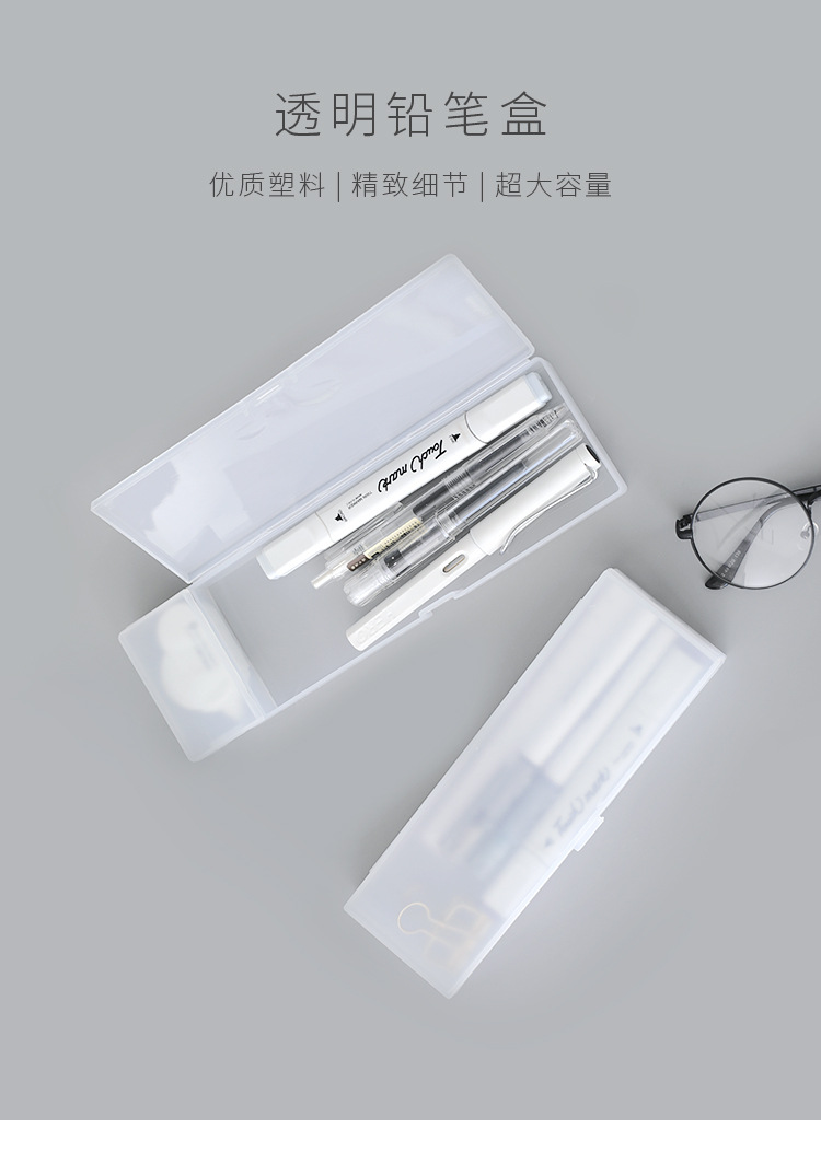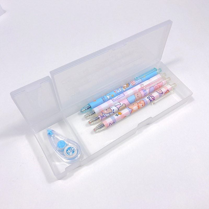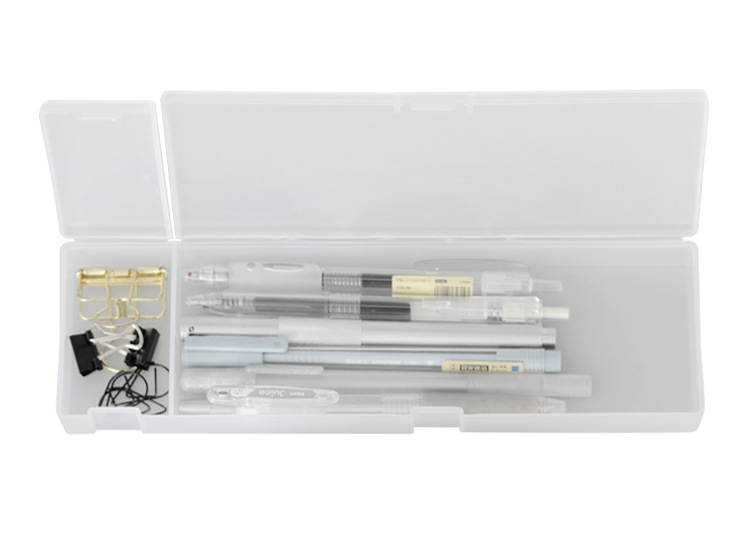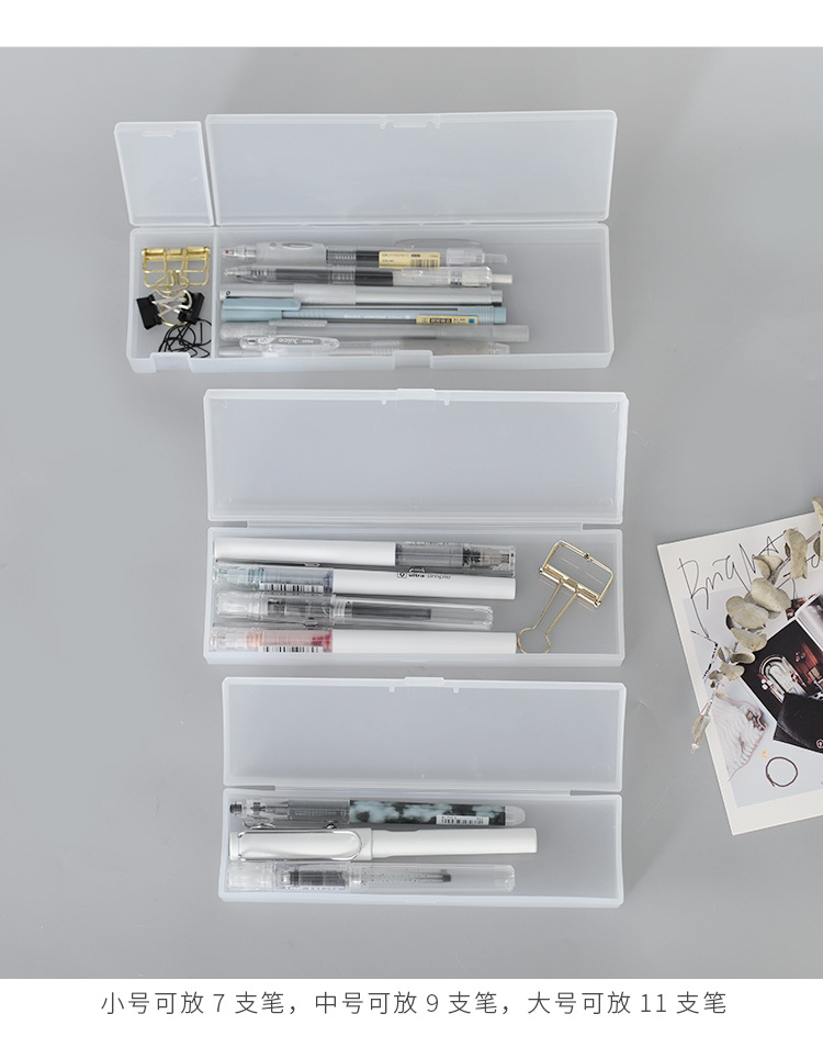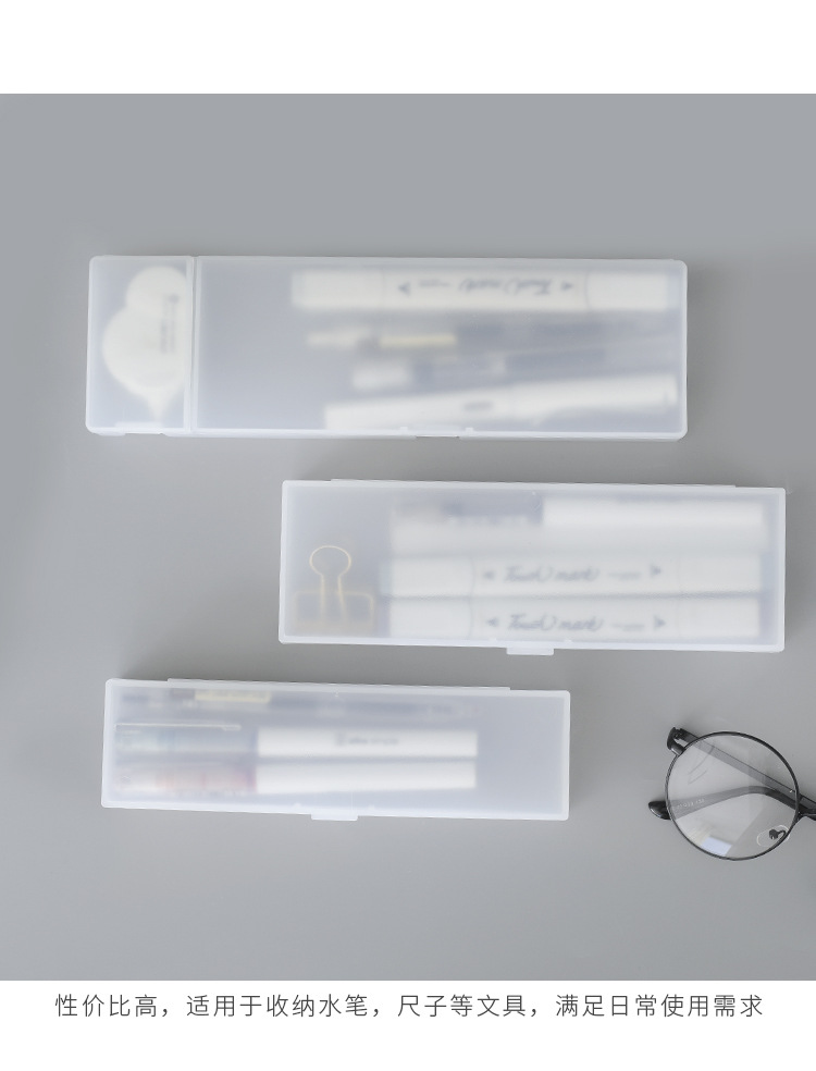 초등학생 투명 서리 문구 상자 간단한 연필 상자 플라스틱 다기능 저장 펜 상자 인쇄 가능한 로고