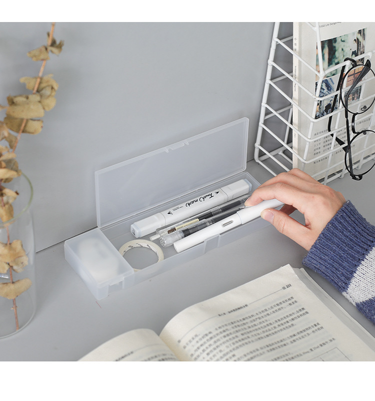 초등학생 투명 서리 문구 상자 간단한 연필 상자 플라스틱 다기능 저장 펜 상자 인쇄 가능한 로고스토어 가기