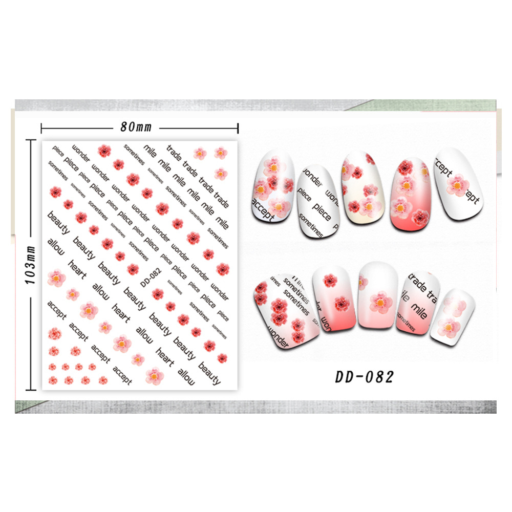 Redanco 새로운 3D 그물 붉은 폭발 영어 편지 네일 스티커 접착 네일 데칼 도매 DD-082