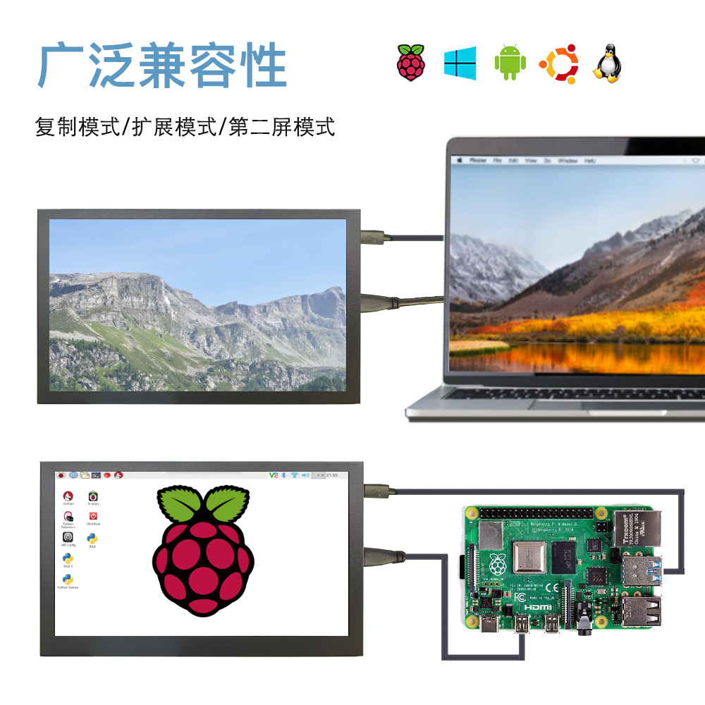 10.1inch 미니 휴대용 디스플레이 라즈베리 파이 HDMI 고화질 터치 알루미늄 합금 IPS 컴퓨터 확장 보조 화면