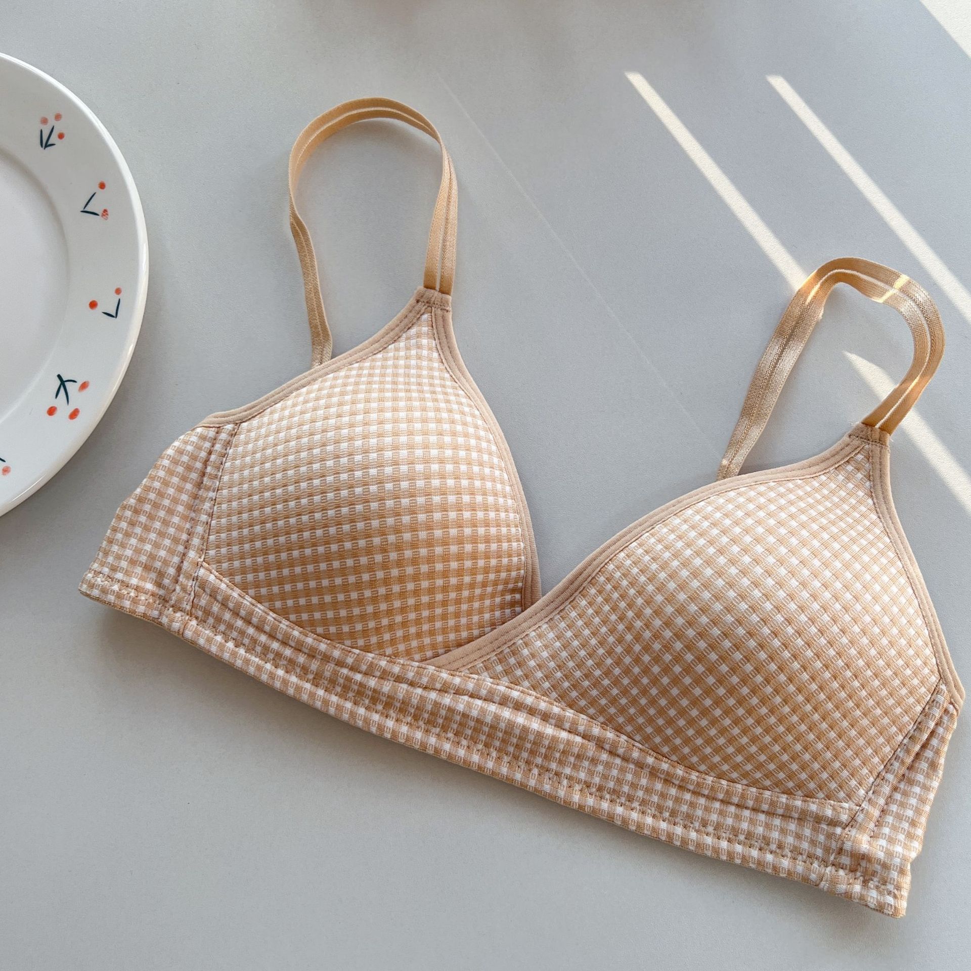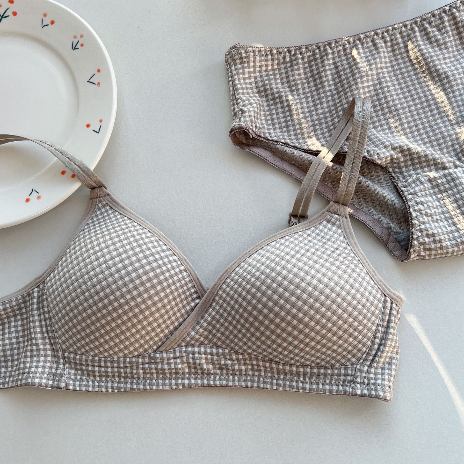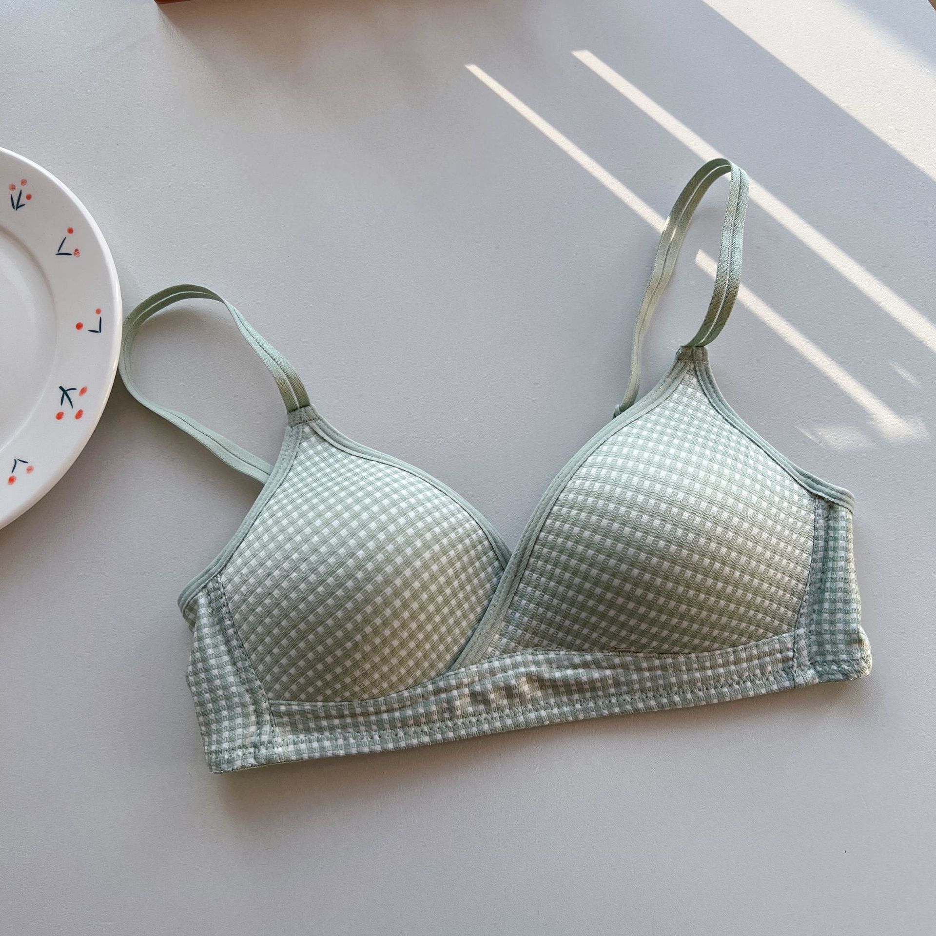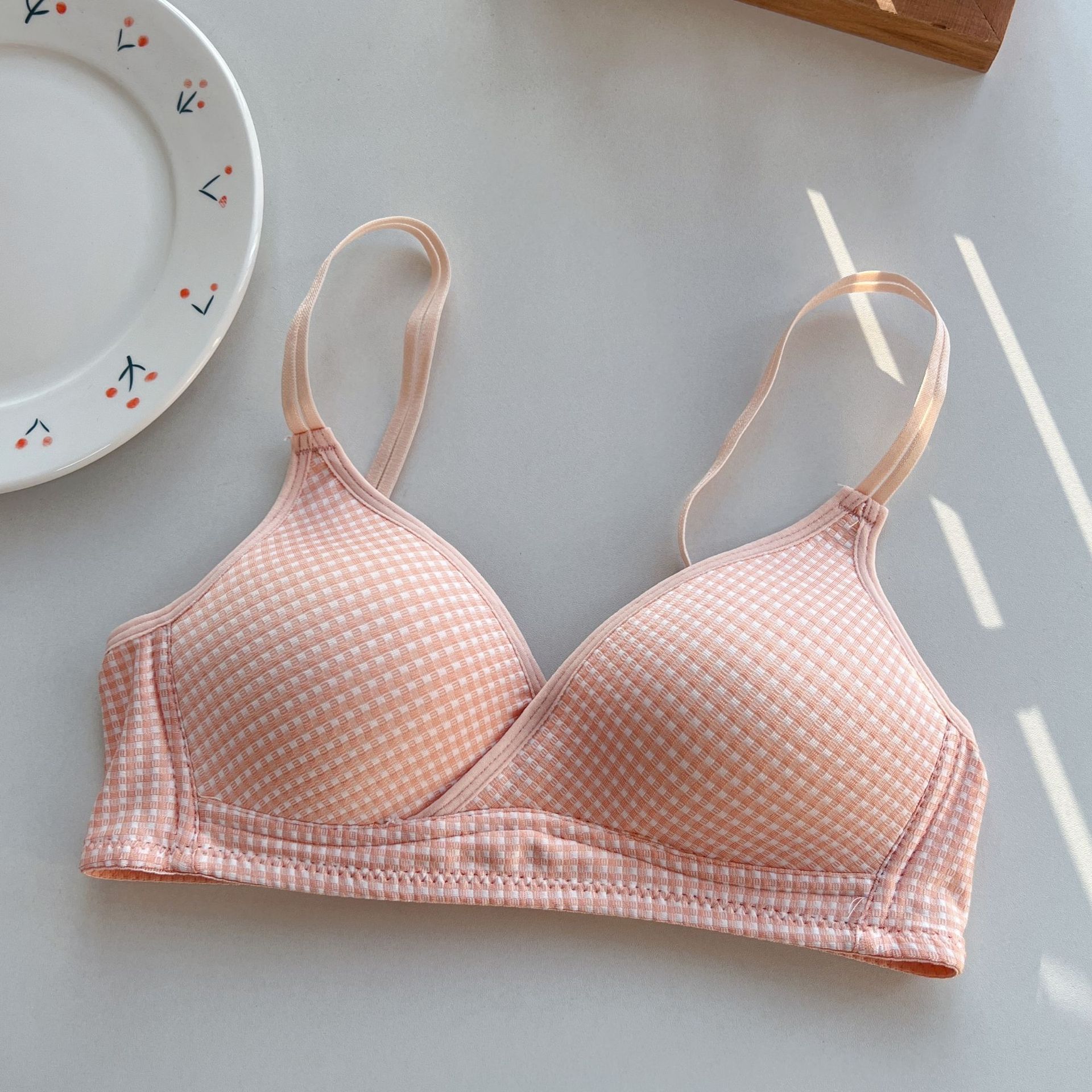 일본 순수한면 격자 무늬 얇은 작은 가슴은 속옷 여성의 강철 반지 브래지어 소녀 브래지어 공장 도매스토어 가기