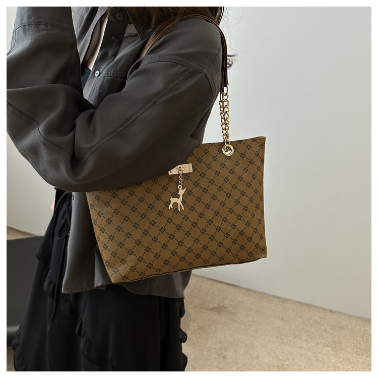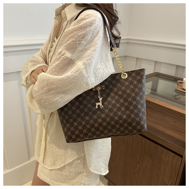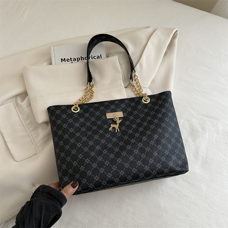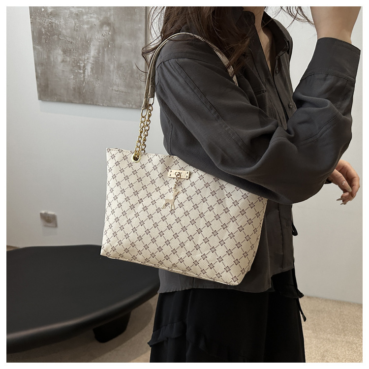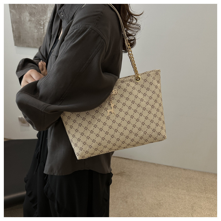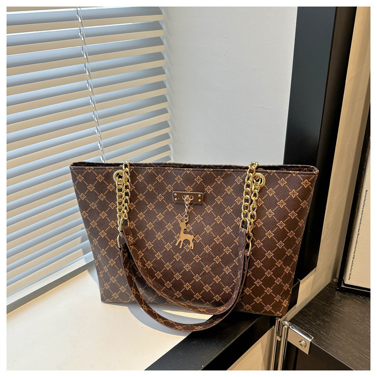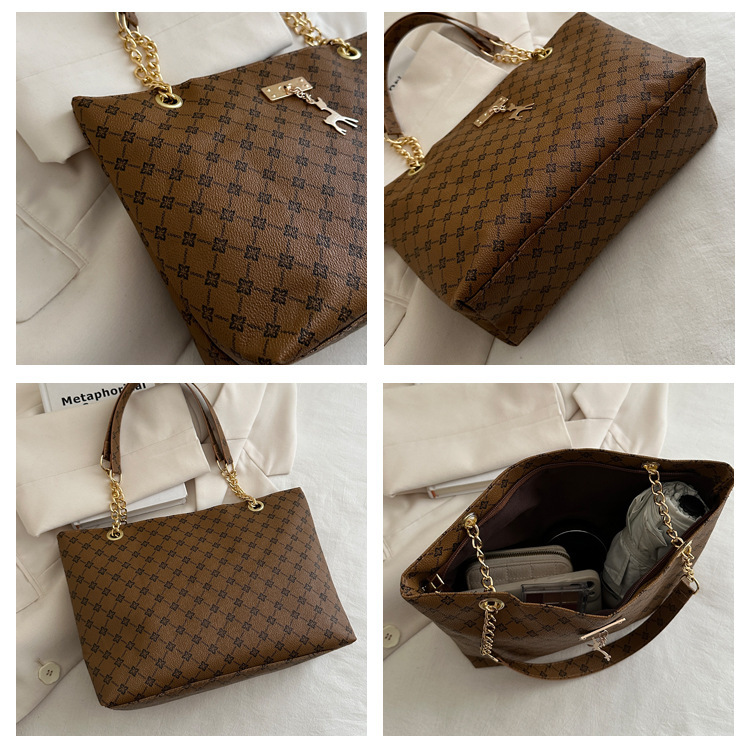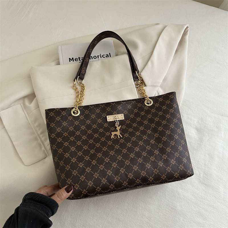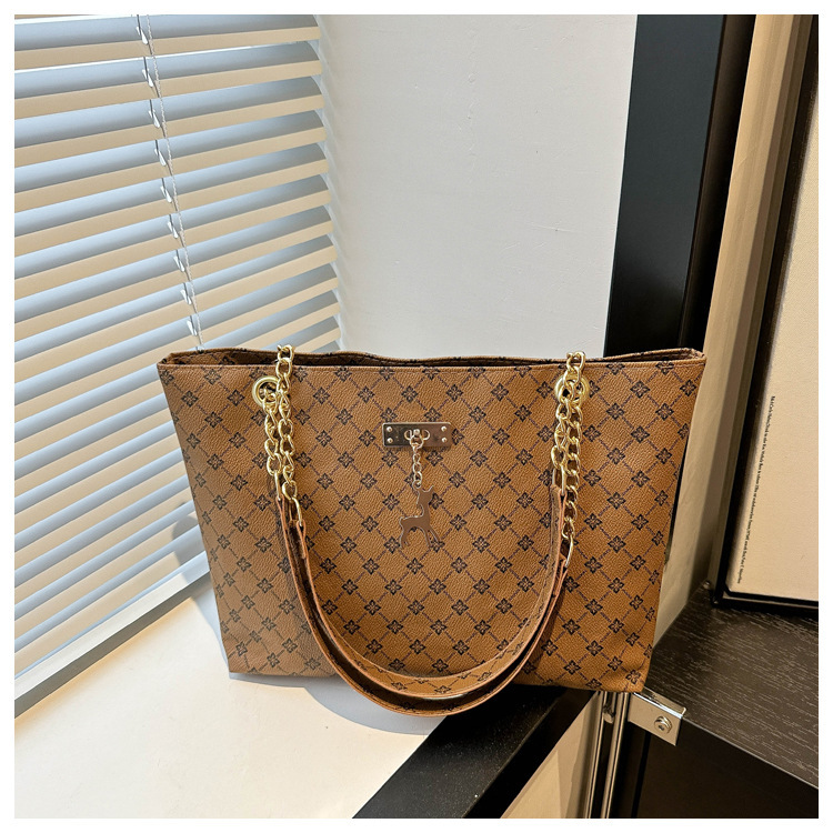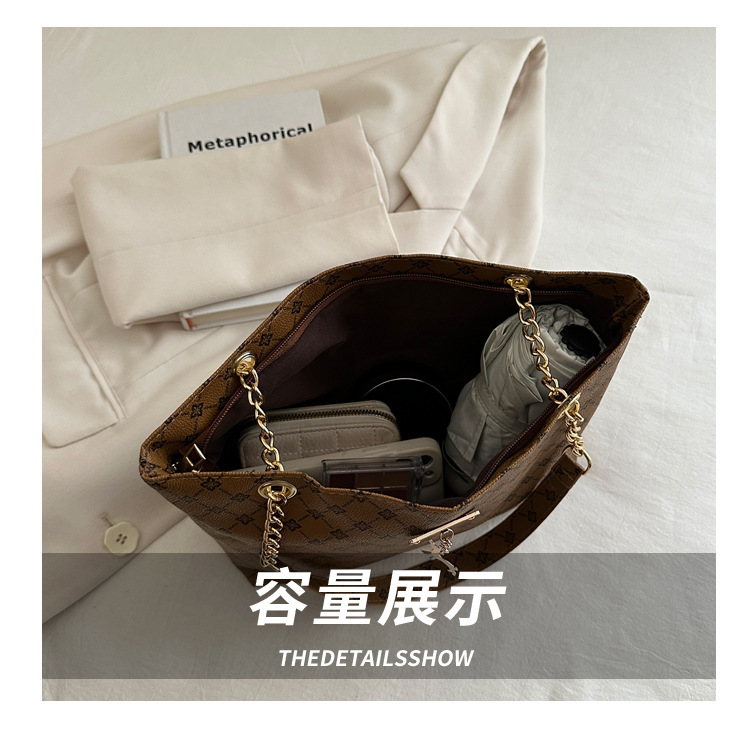 2024新款女包时尚通勤大容量包包复古链条手提单肩包简约托特包女