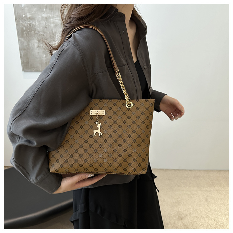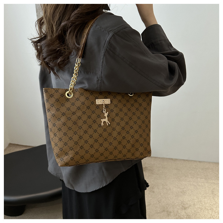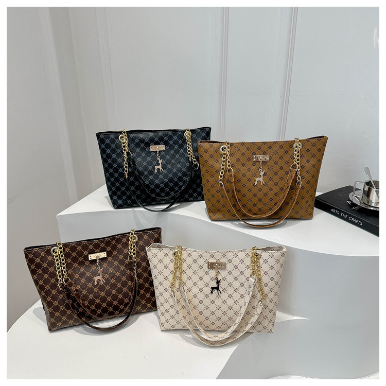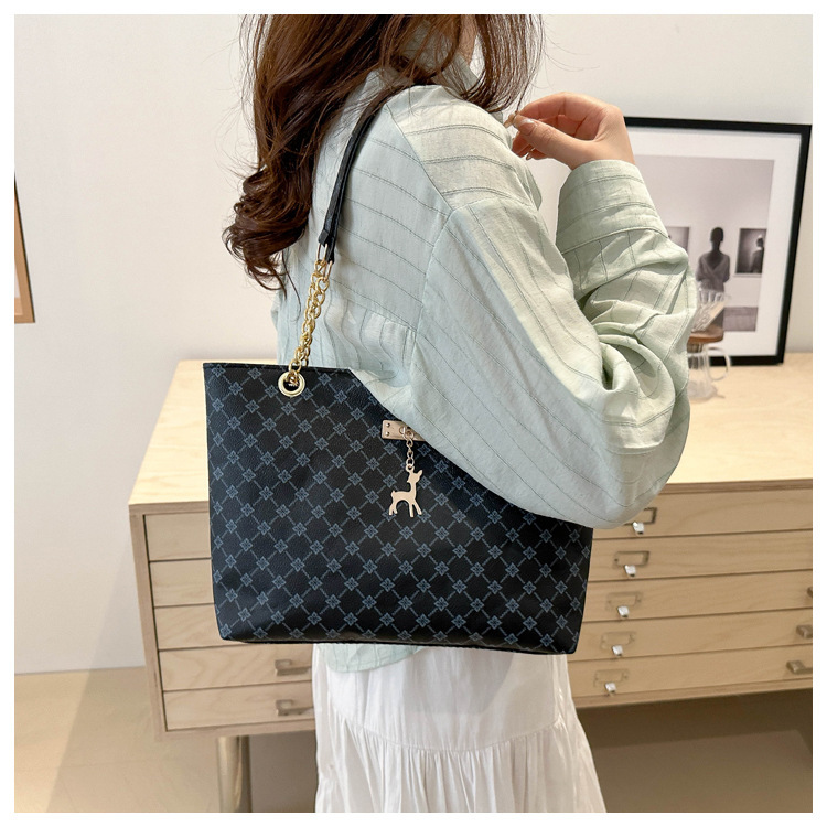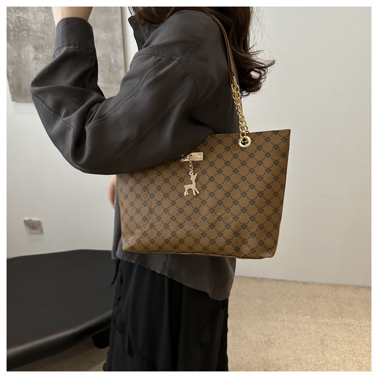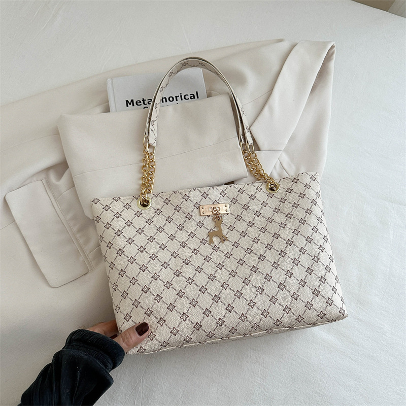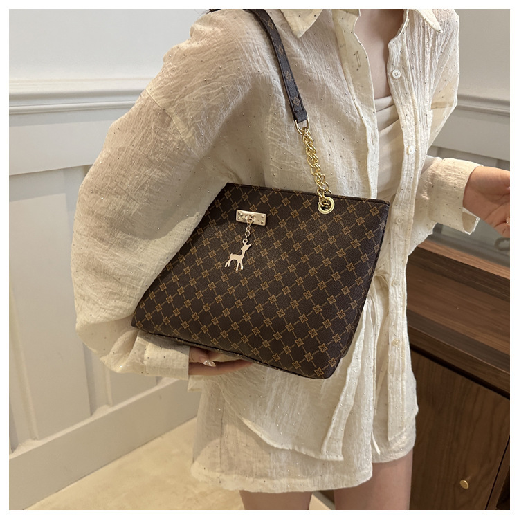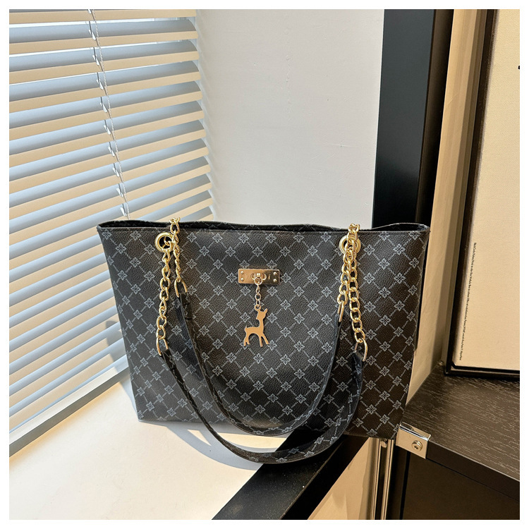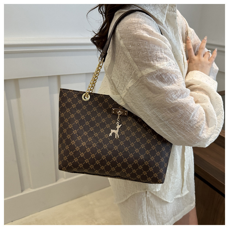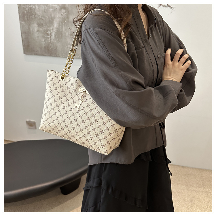 2024新款女包时尚通勤大容量包包复古链条手提单肩包简约托特包女