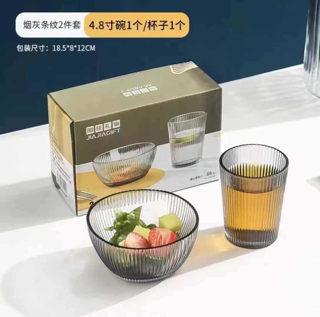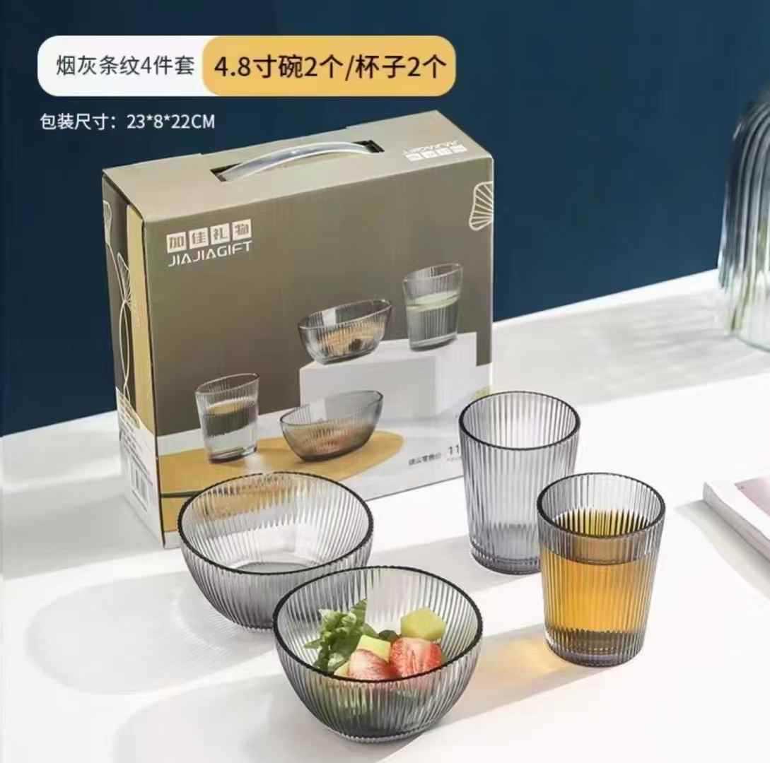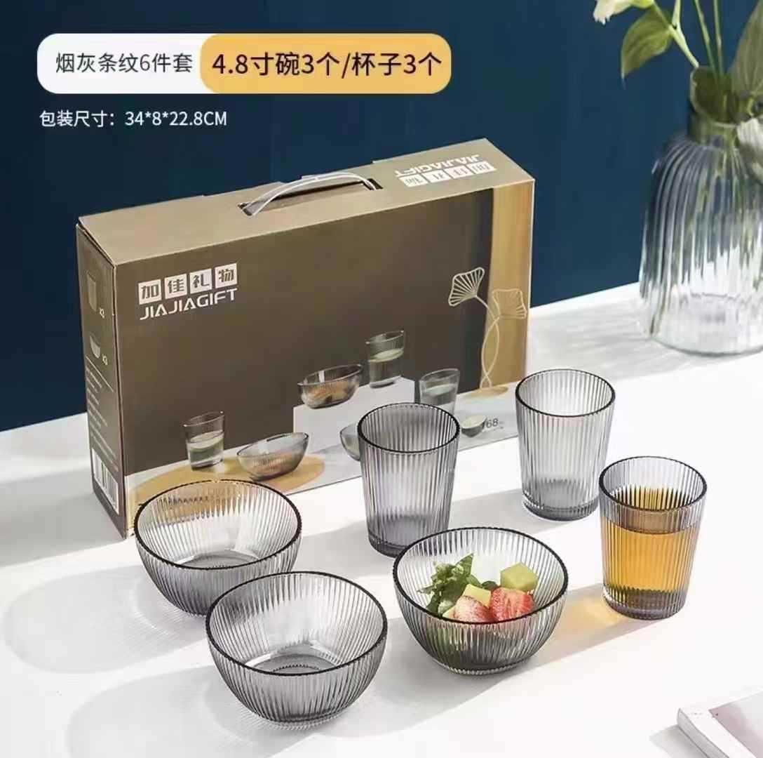새로운 Jiajia 선물 오크 유리 식기 5 종 세트 샐러드 그릇 유리 그릇 세트 창조적 인 선물 도매스토어 가기
