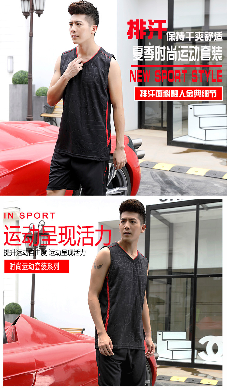 민소매 스포츠 세트 여름 캐주얼 러닝 의류 세트 청소년 남자 느슨한 플러스 사이즈 조끼 농구 옷 통기성스토어 가기