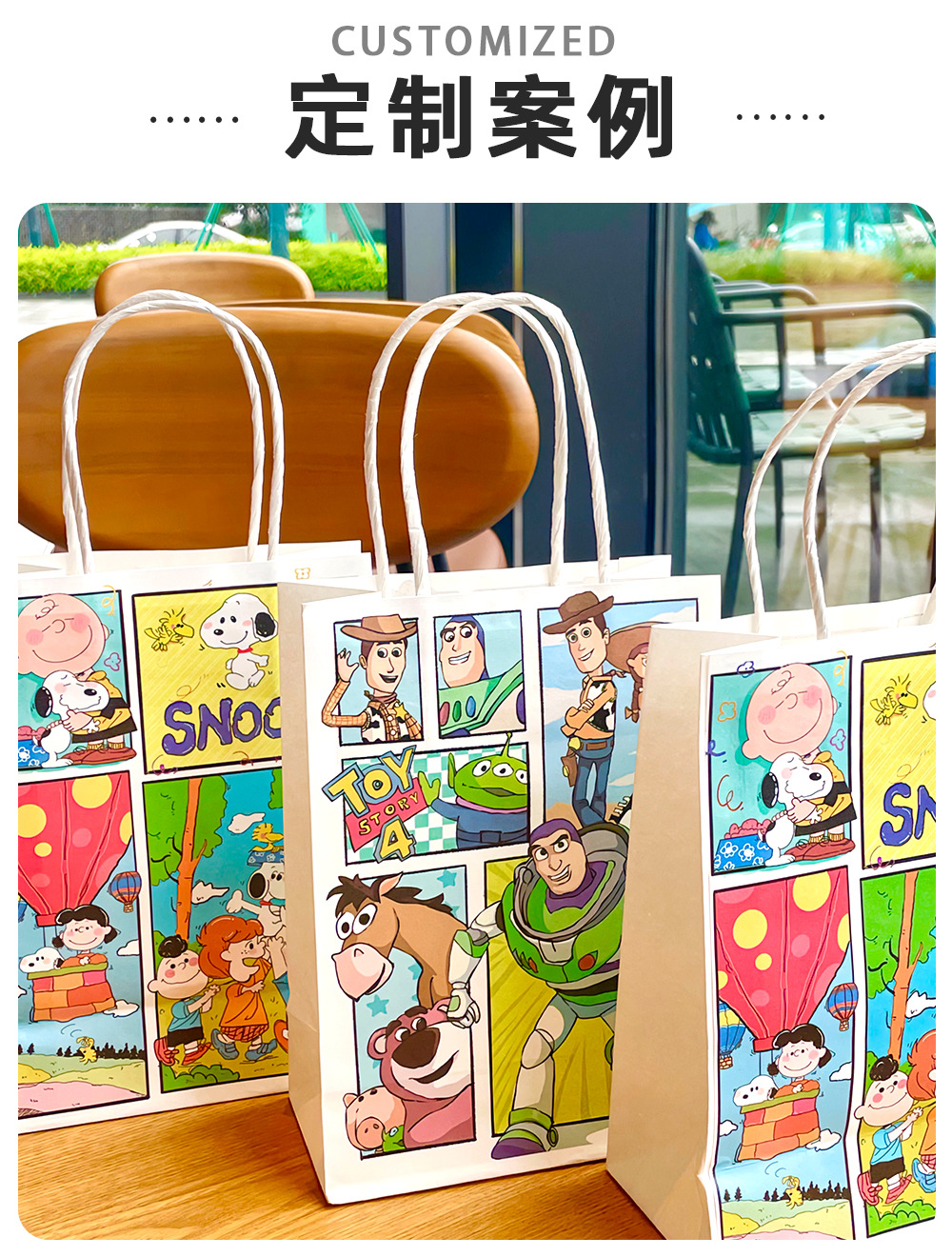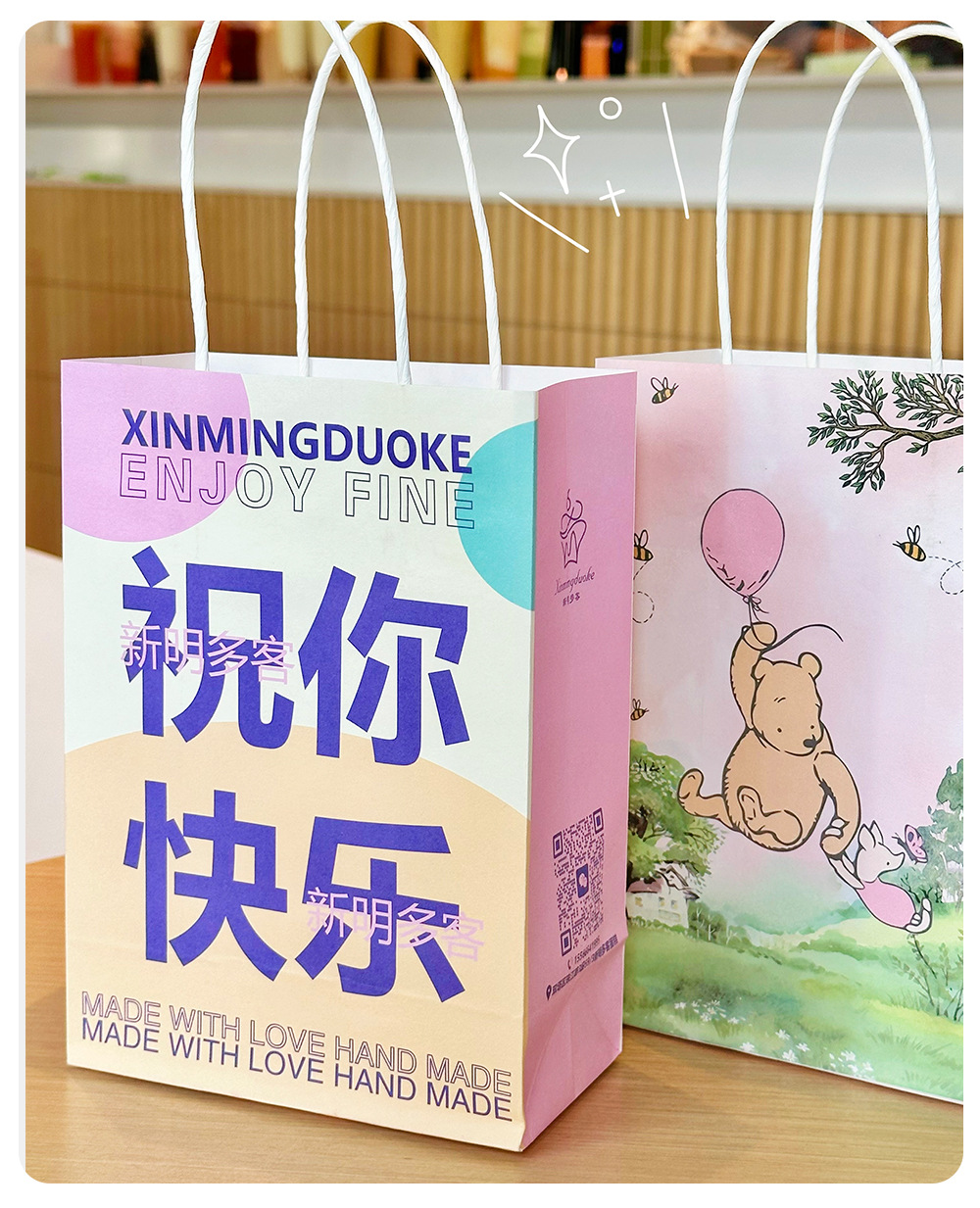 해저라운드 같은 스타일의 선물 가방 크리스마스 휴일용 핸드백 미니 스낵 크라프트 종이 가방 로고 인쇄 맞춤 제작스토어 가기