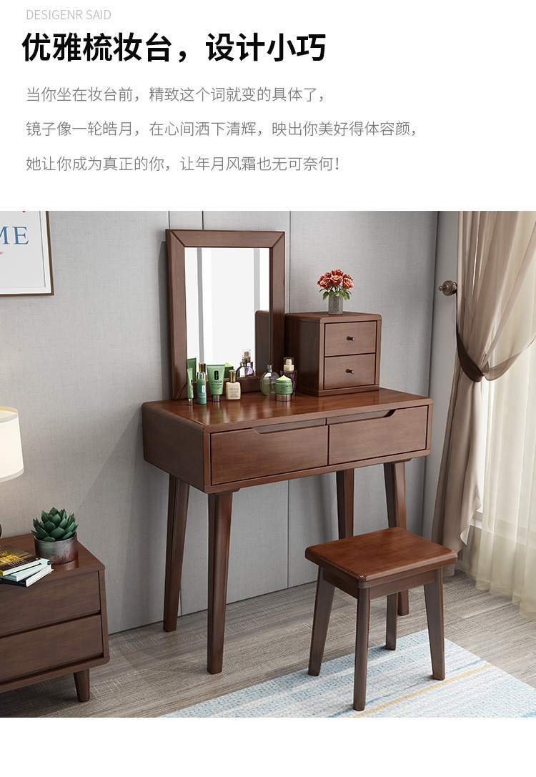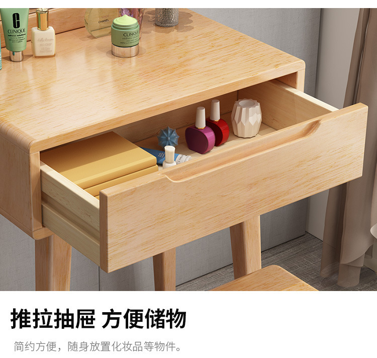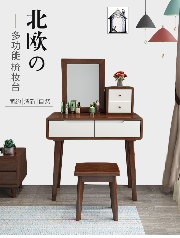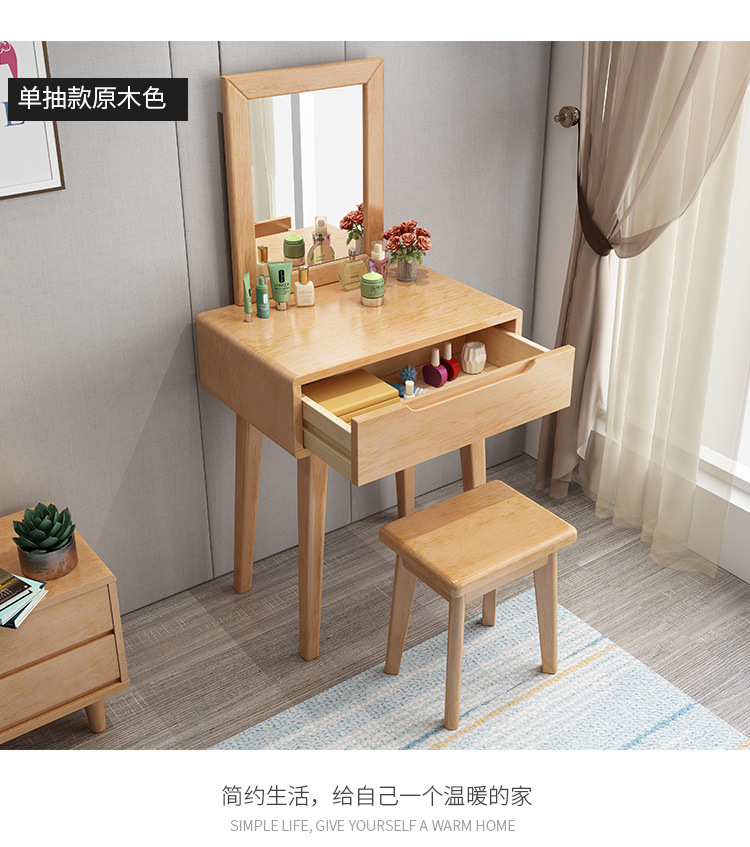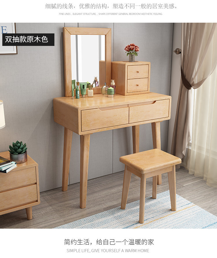 현대 간단한 단단한 나무 북유럽 스타일 작은 아파트 침실 단단한 나무 드레싱 테이블 통합 인터넷 연예인 작은 화장품 테이블