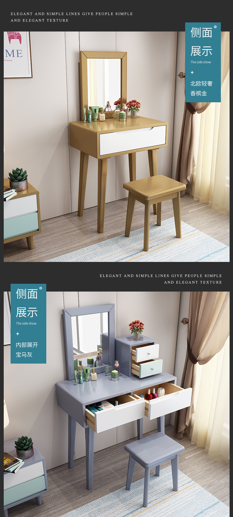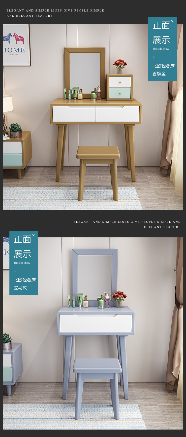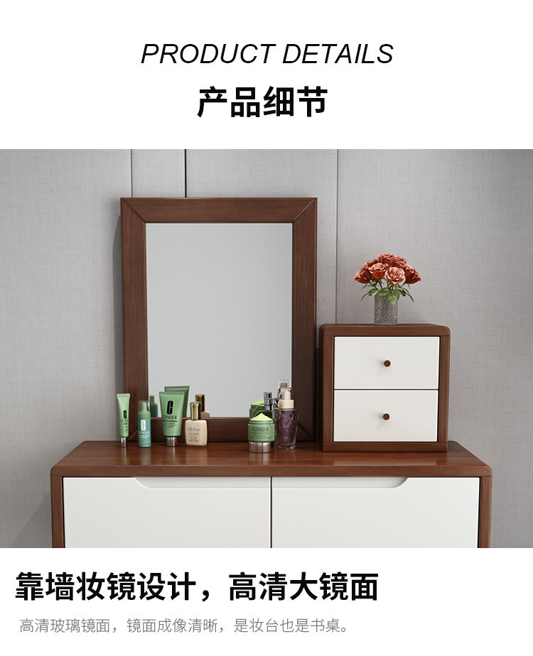 현대 간단한 단단한 나무 북유럽 스타일 작은 아파트 침실 단단한 나무 드레싱 테이블 통합 인터넷 연예인 작은 화장품 테이블