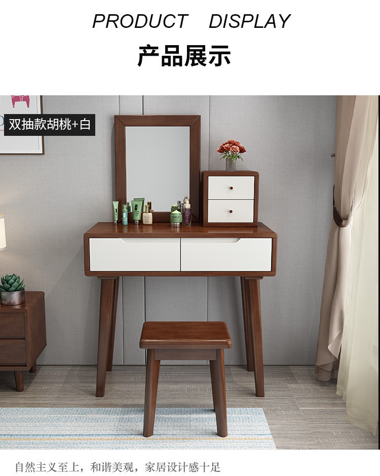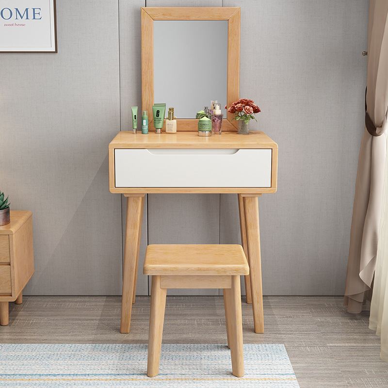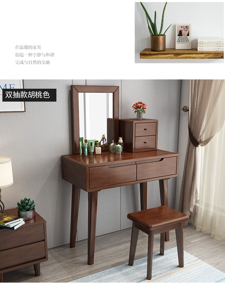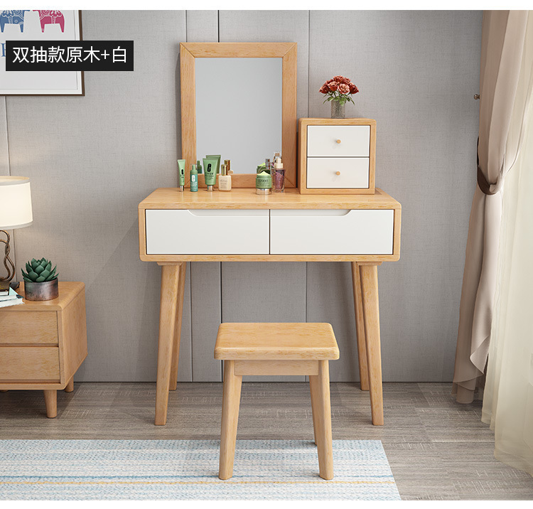 현대 간단한 단단한 나무 북유럽 스타일 작은 아파트 침실 단단한 나무 드레싱 테이블 통합 인터넷 연예인 작은 화장품 테이블스토어 가기