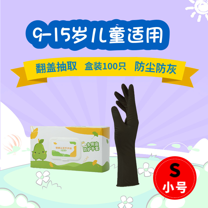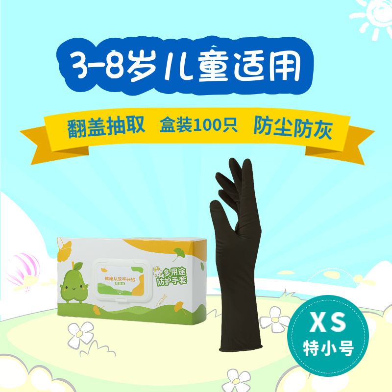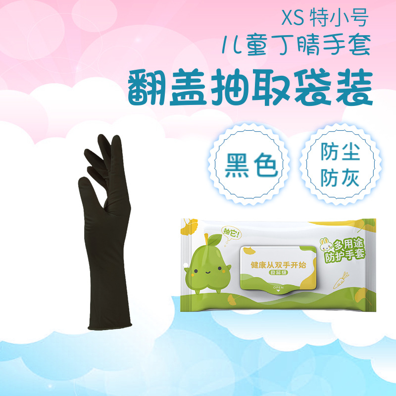 • 9 인치 니트릴 검은 배 플립 추출 박스형 100 어린이 XS