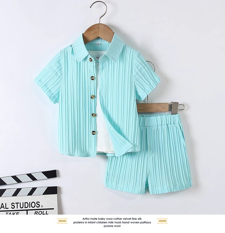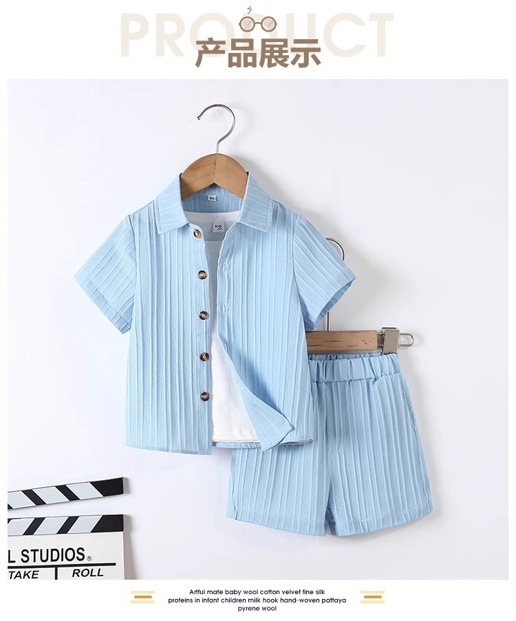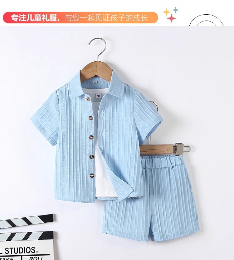 소년 잘 생긴 신사 세트 여름 의류 아카데미 스타일 어린이 얇은 셔츠 유행 원피스 남성 보물 짧은 소매 반바지 옷