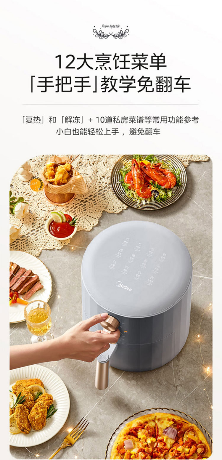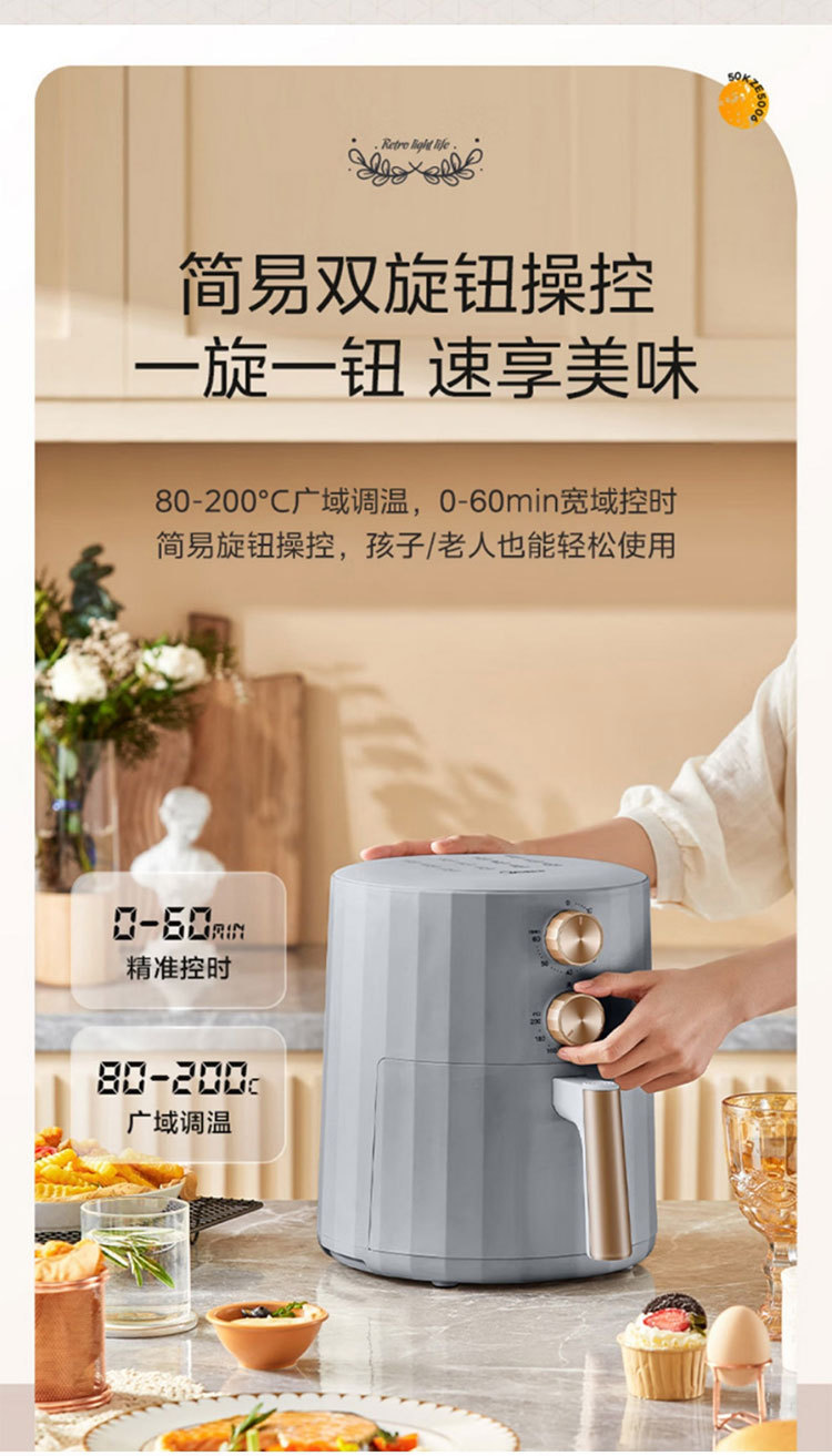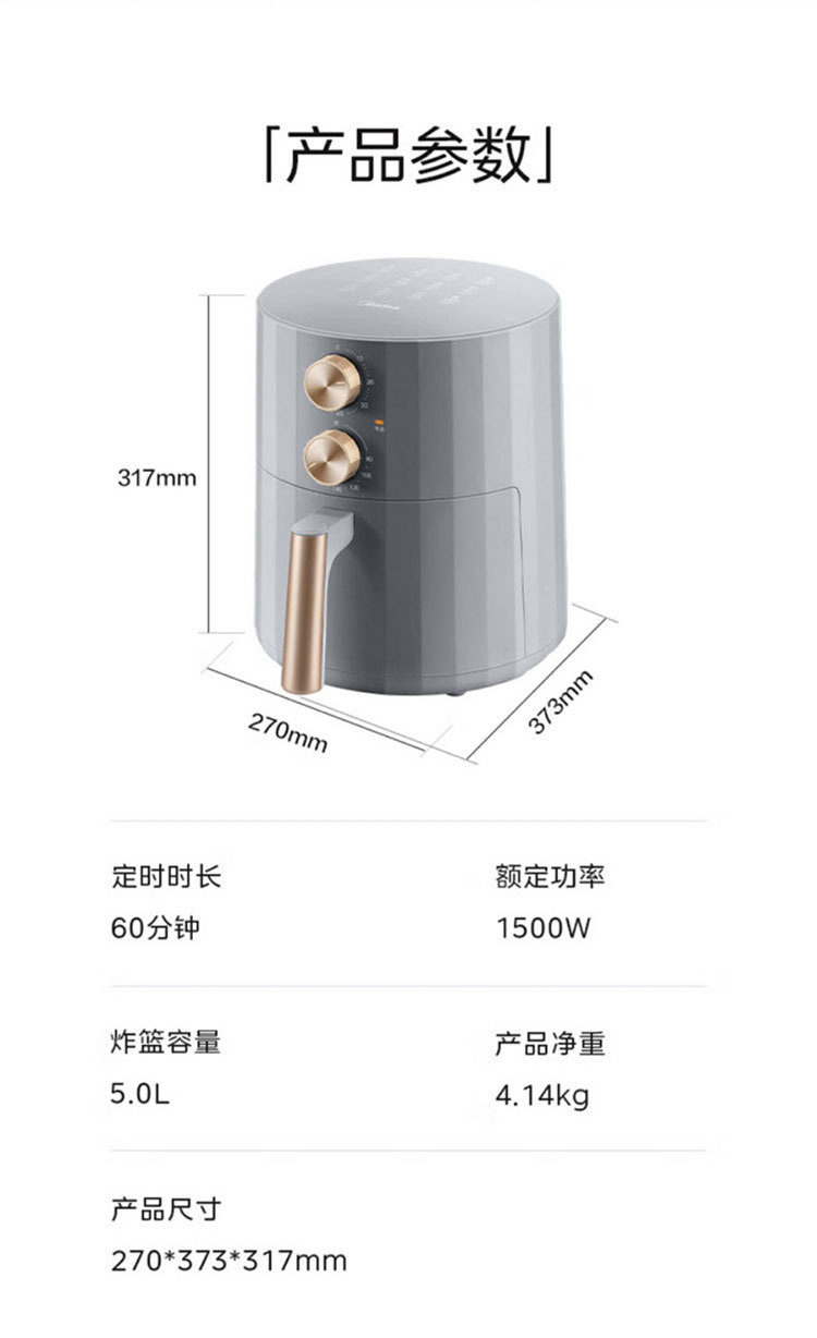 Midea 에어 프라이어 MF-KZE5006 대용량 가정용 타이밍 더블 트위스트 비 스틱 전기 프라이어 5L 프렌치 프라이