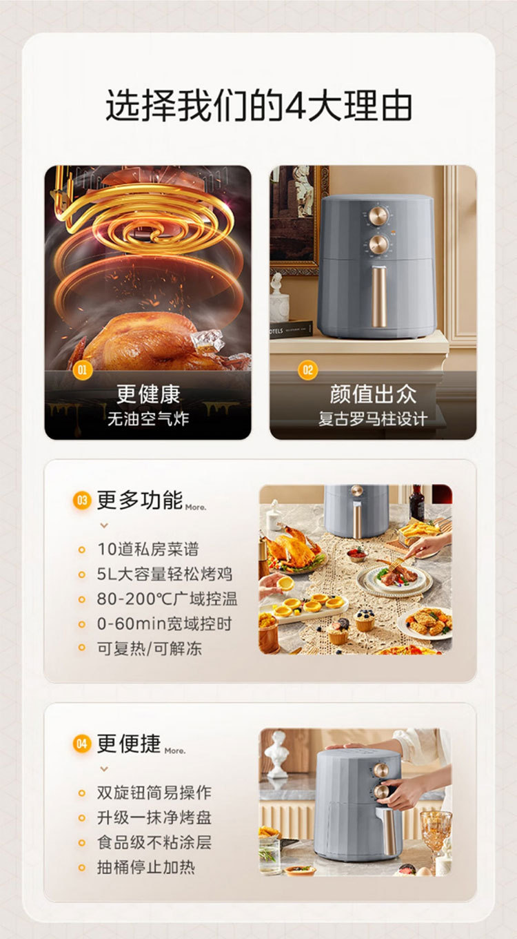 Midea 에어 프라이어 MF-KZE5006 대용량 가정용 타이밍 더블 트위스트 비 스틱 전기 프라이어 5L 프렌치 프라이스토어 가기