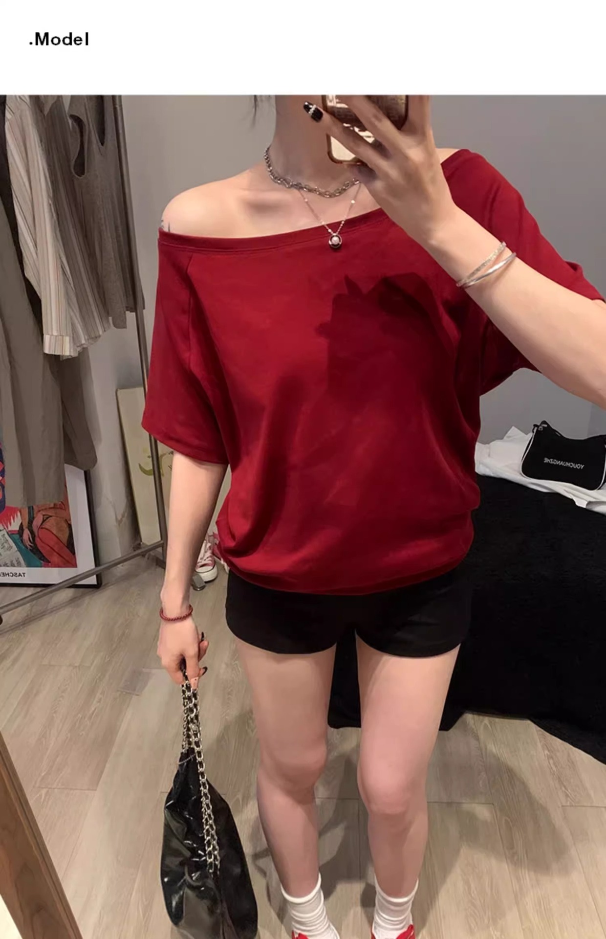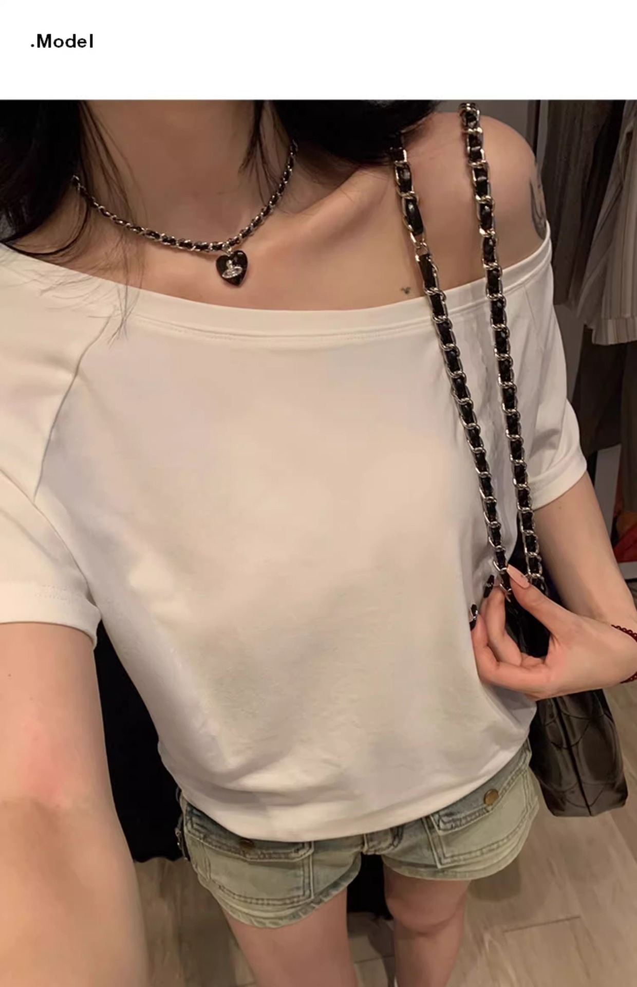여성을위한 흰색 단색 오프 숄더 반팔 티셔츠 2025 여름 새로운 스타일 원 숄더 루즈한 살을 커버하고 슬리밍 탑스토어 가기