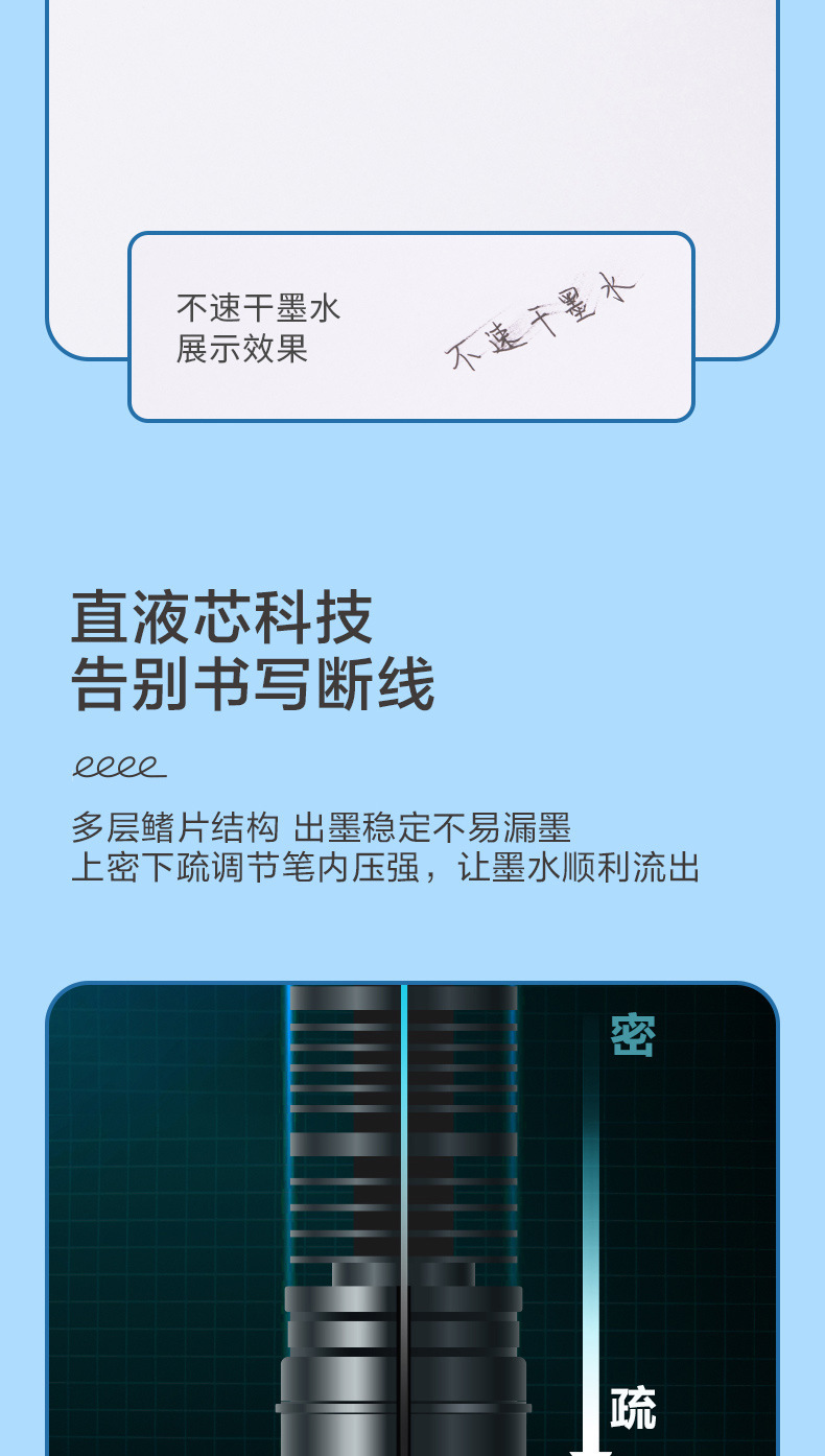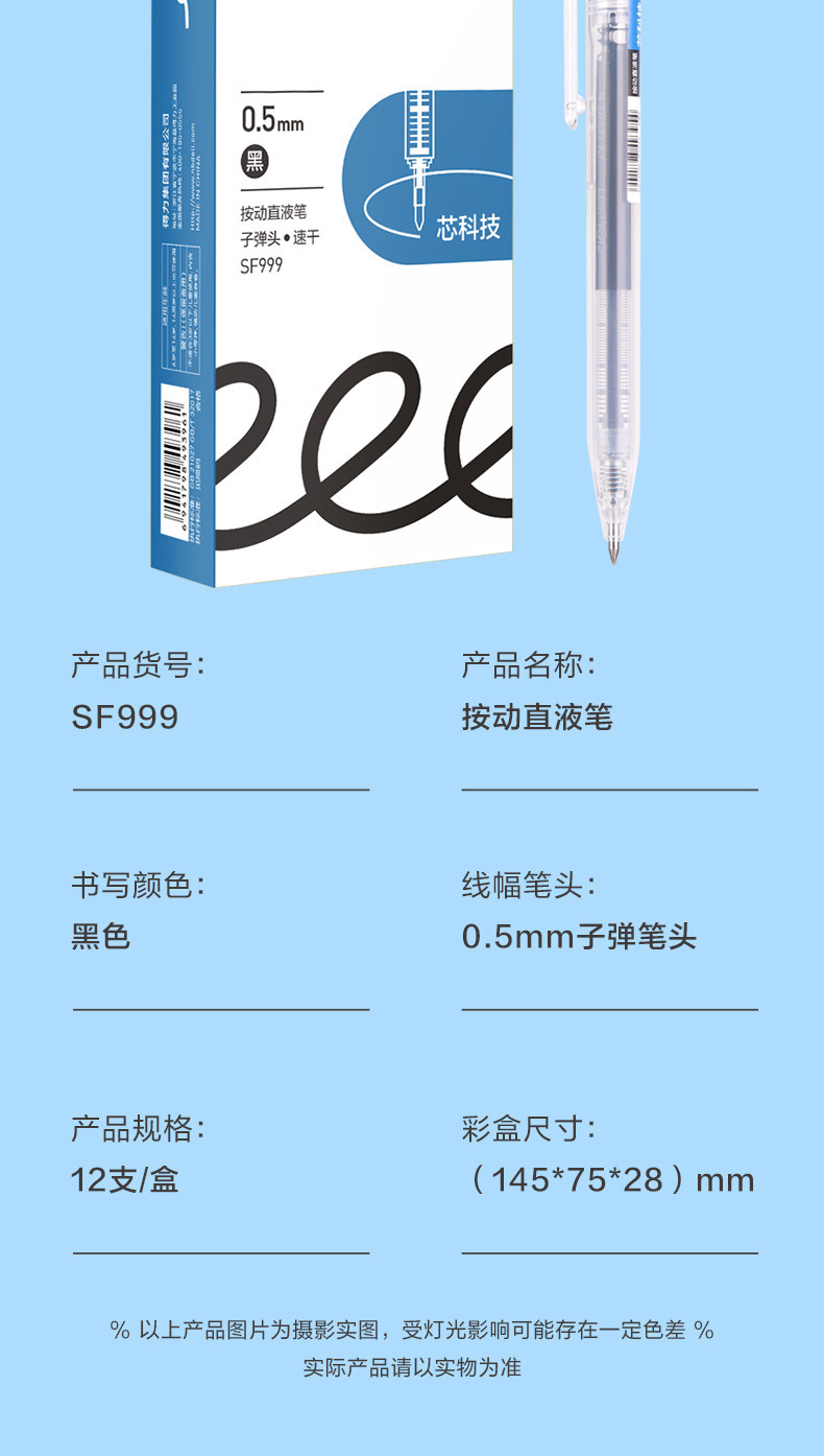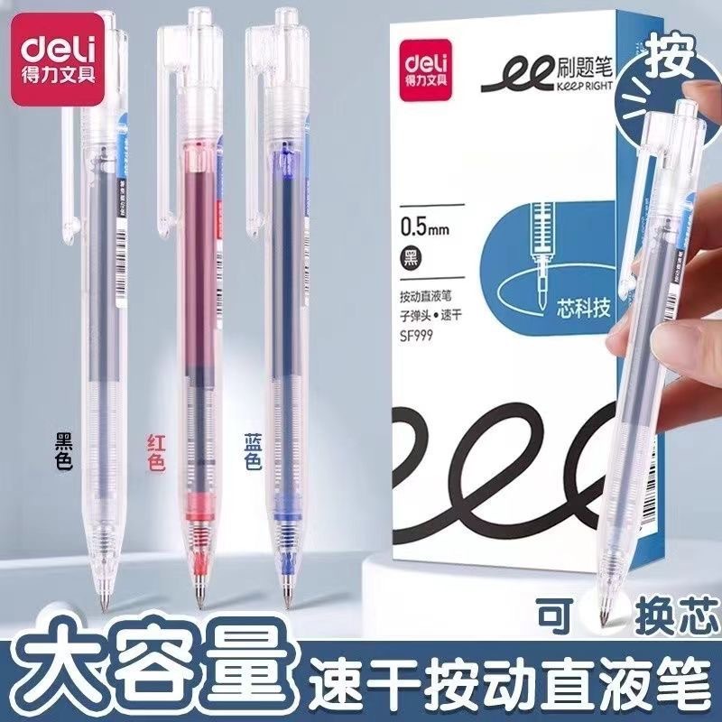 Deli SF999 프레스 직접 액체 펜 0.5mm 빠른 건조 총알 대용량 브러시 펜 부드러운 학생 사무실스토어 가기
