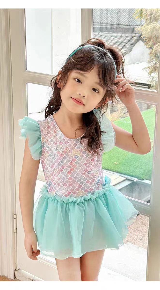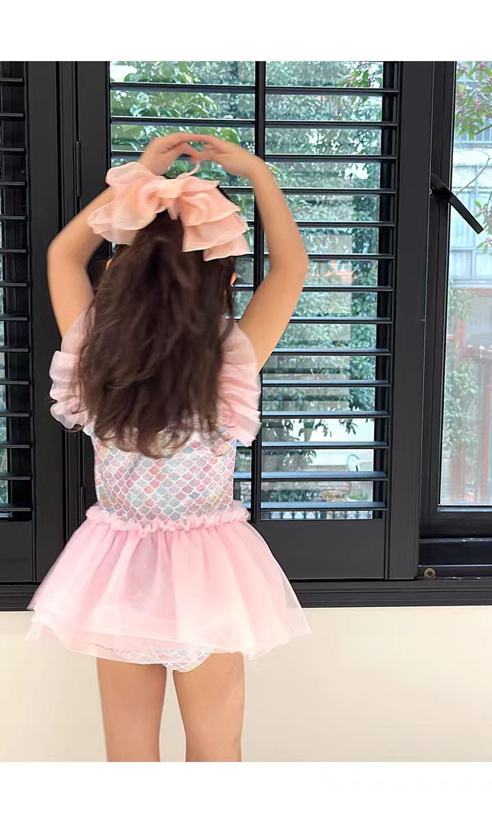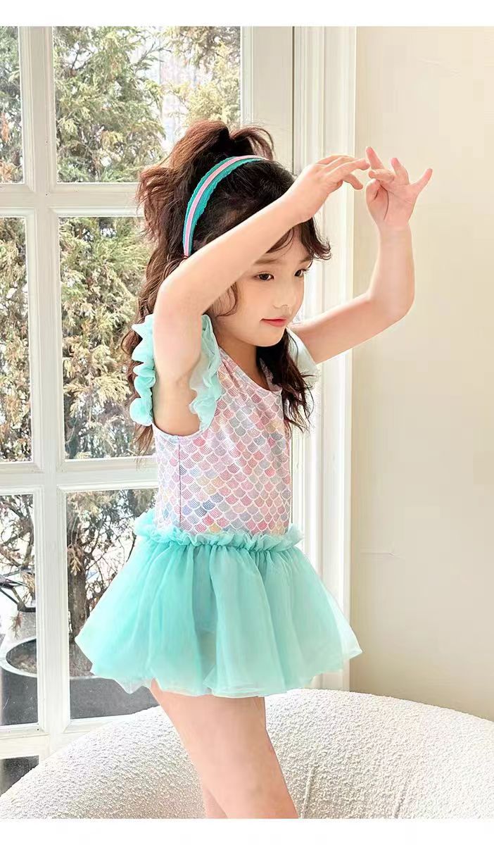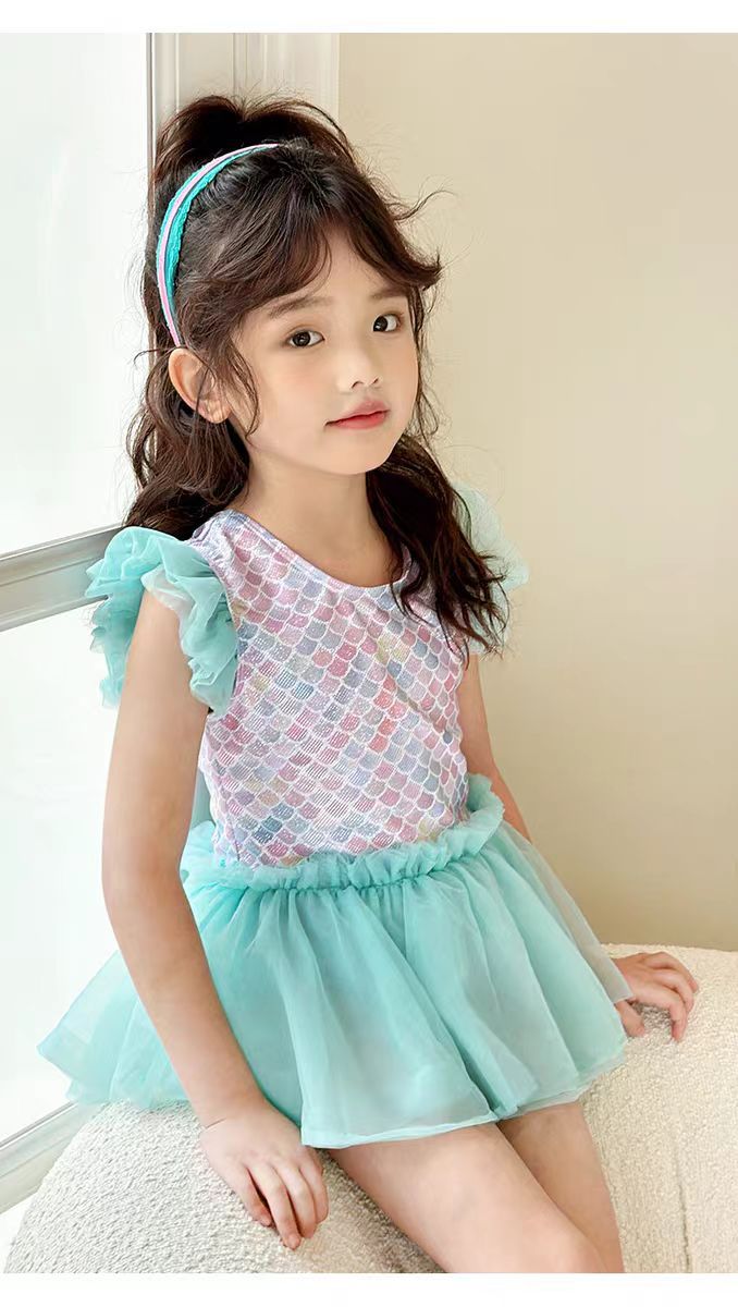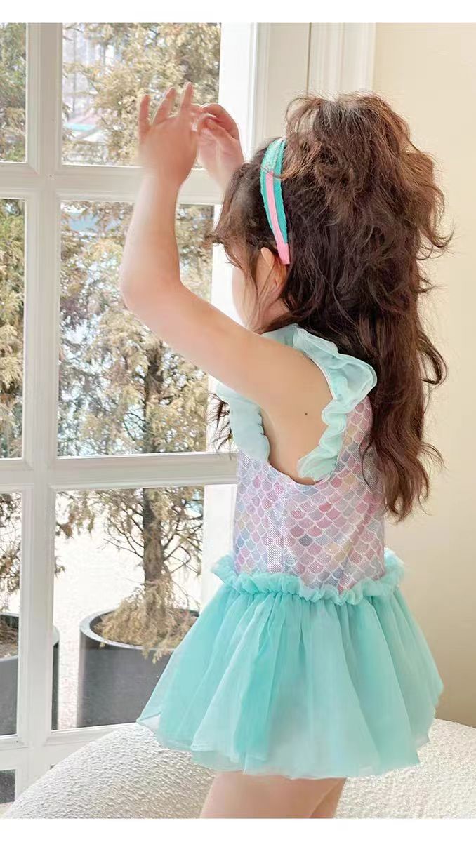 어린이 수영복 소녀의 귀여운 귀 테두리 인어 중소 아기 소녀 공주 원피스 원피스 어린이 수영복