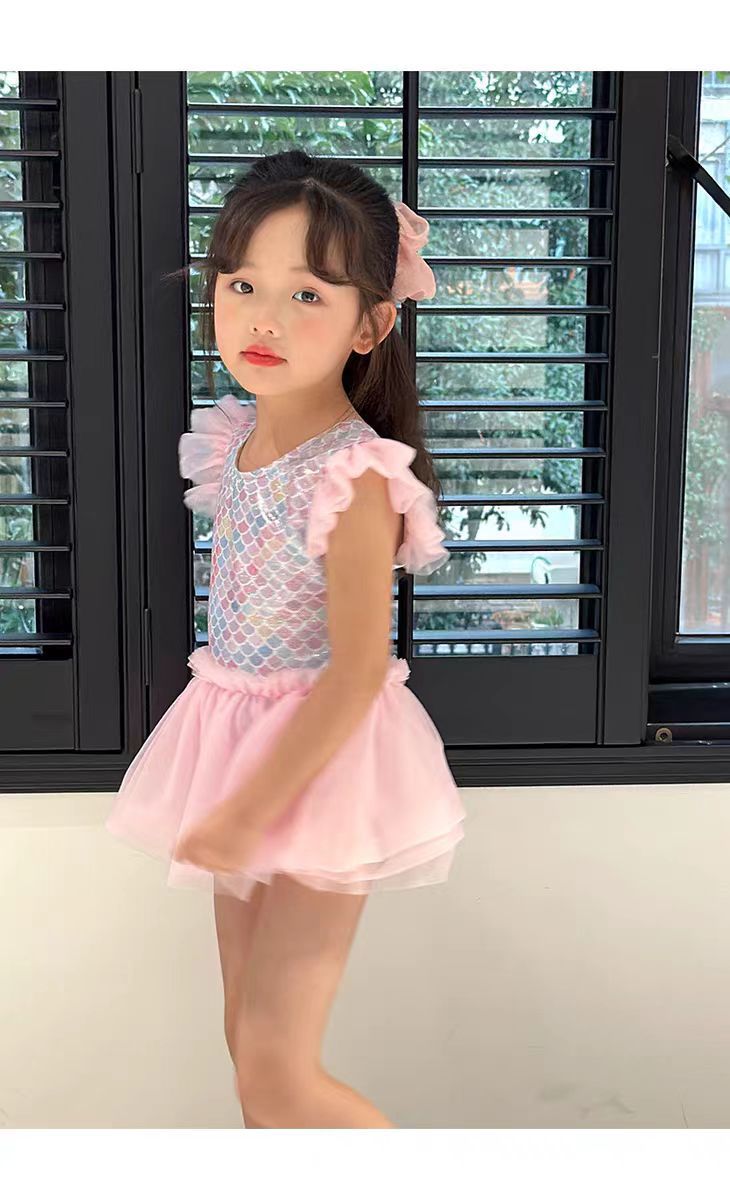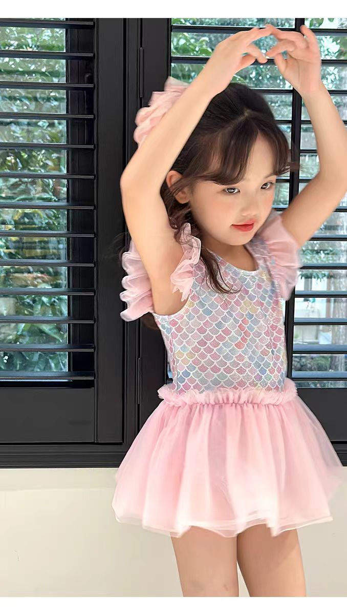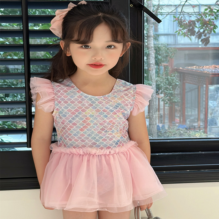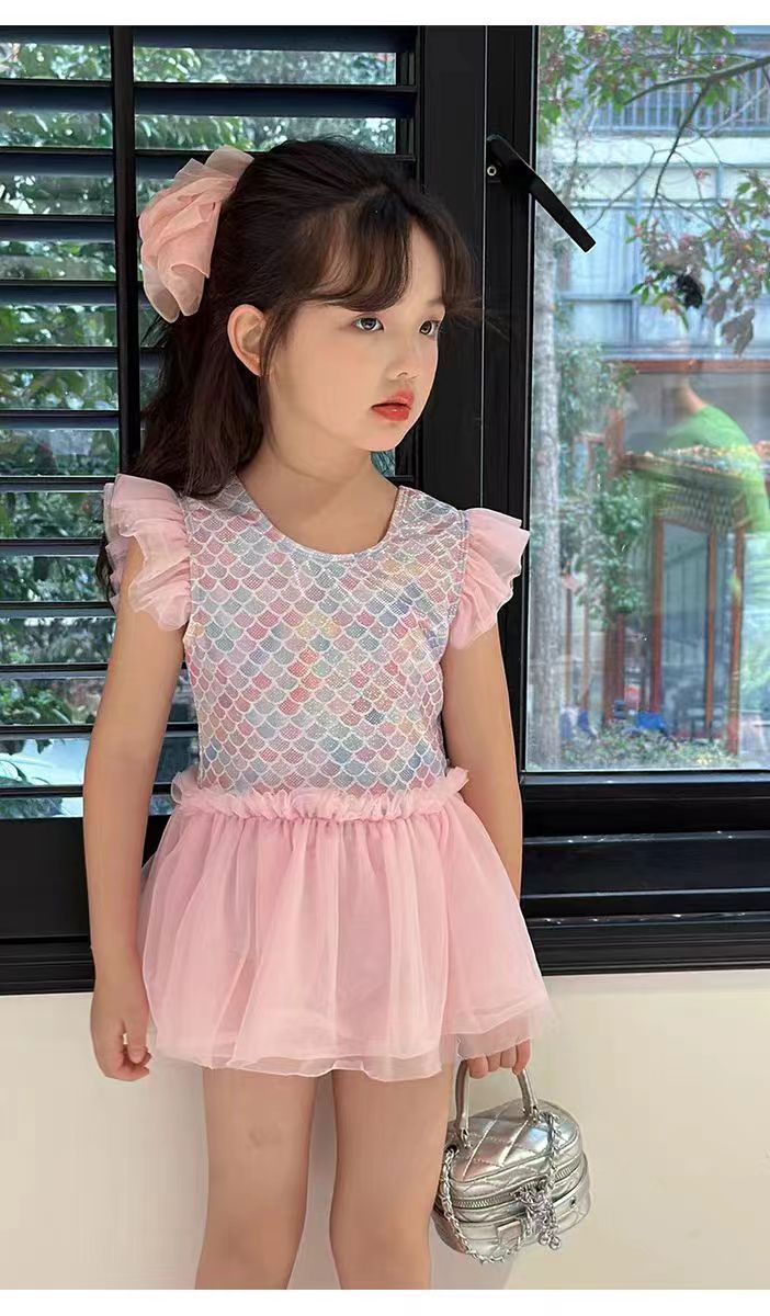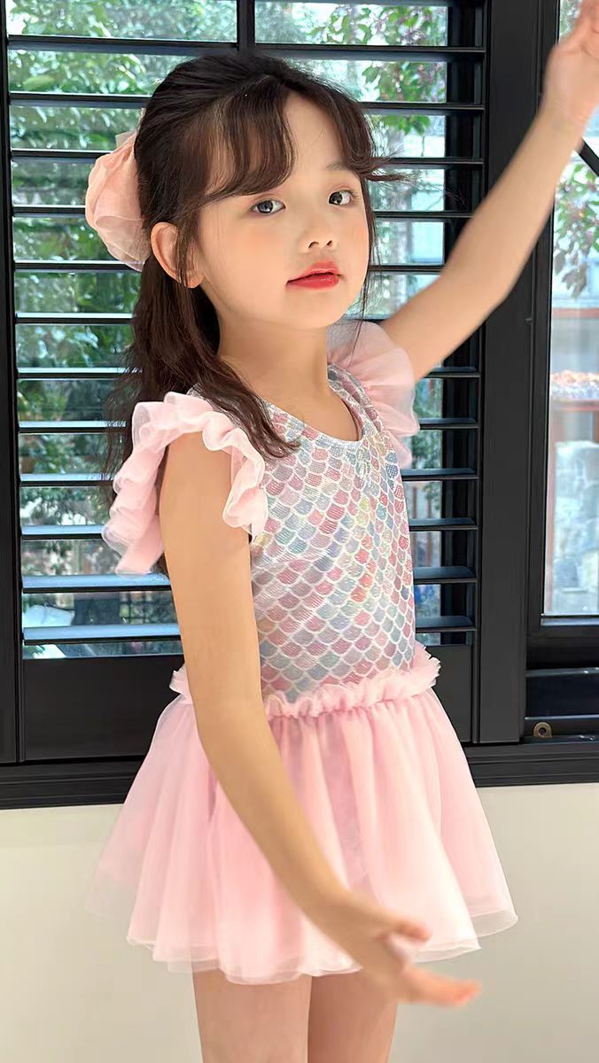 어린이 수영복 소녀의 귀여운 귀 테두리 인어 중소 아기 소녀 공주 원피스 원피스 어린이 수영복