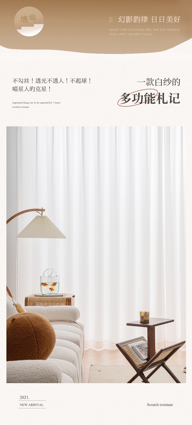 팬텀 원사 커튼 원사 빛 전송 및 불사한 화이트 원사 거실 발코니 침실 선 스크린 음영 2024 새로운 창 화면스토어 가기