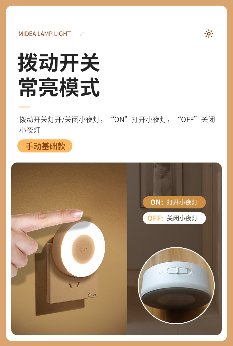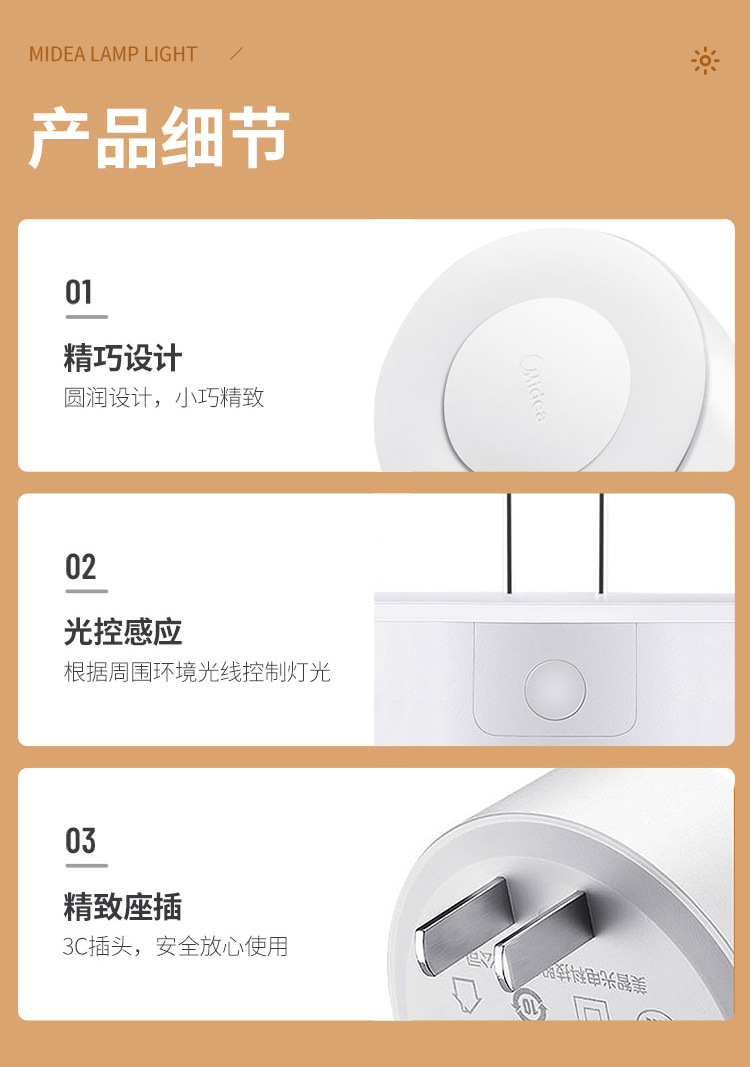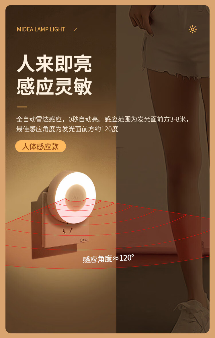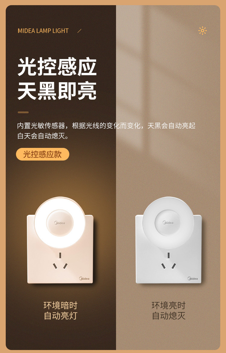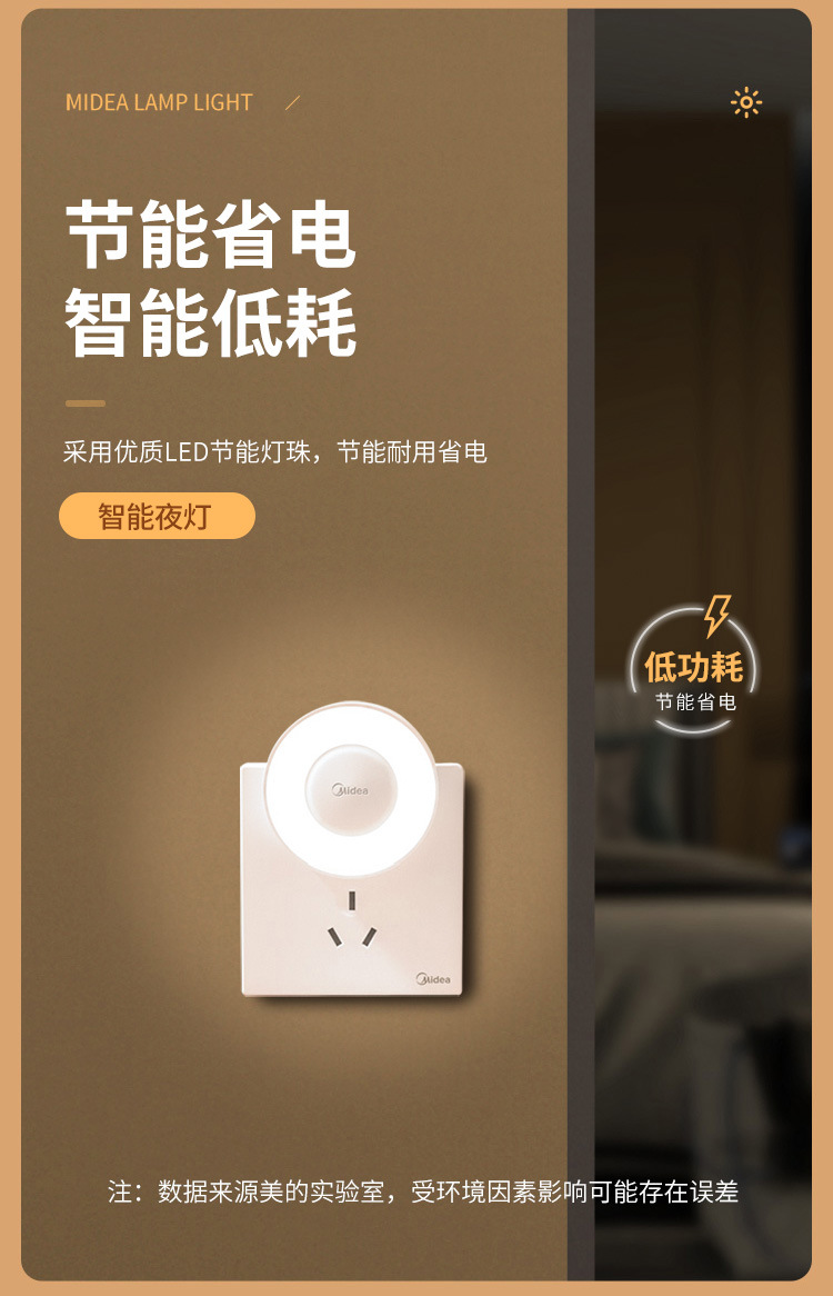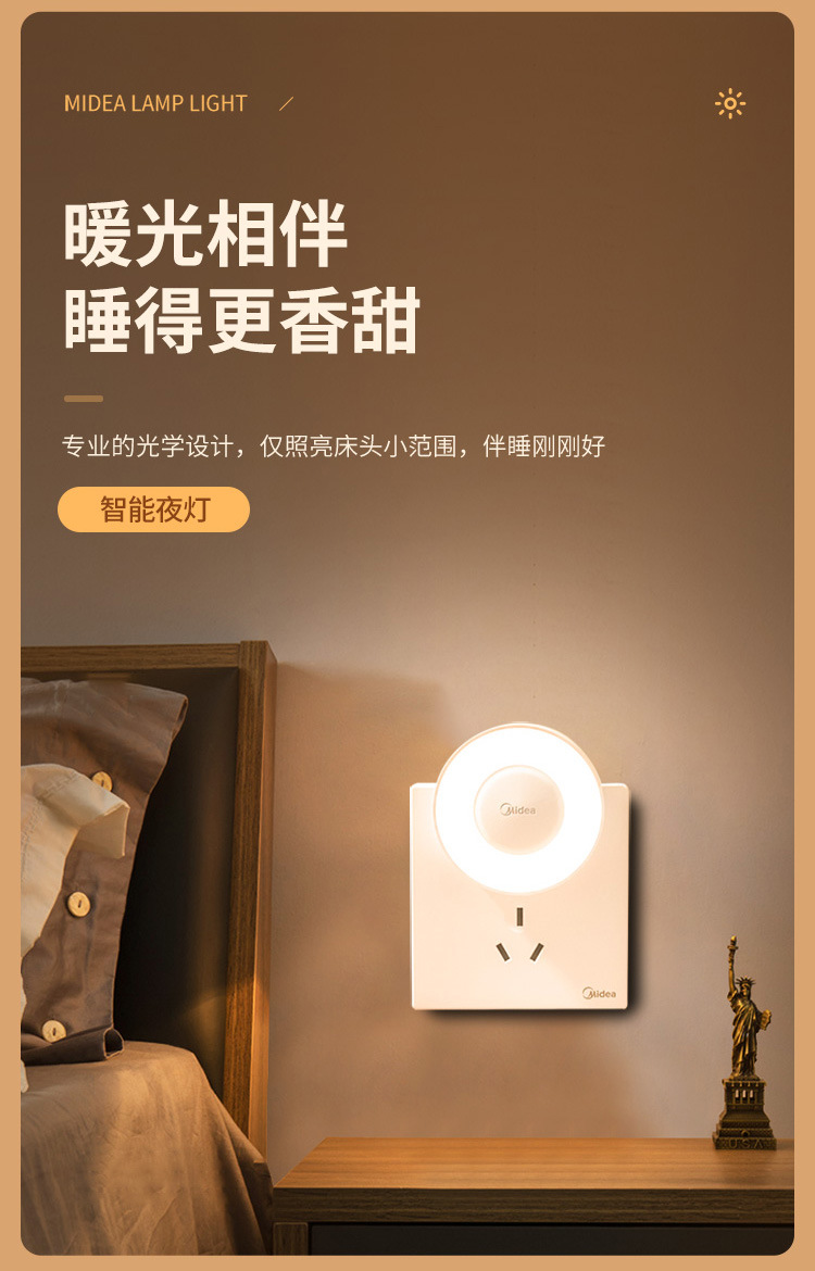 Midea LED 인체 유도 야간 조명 침실 머리맡 램프 어린이 학습 기숙사 야간 조명 도어