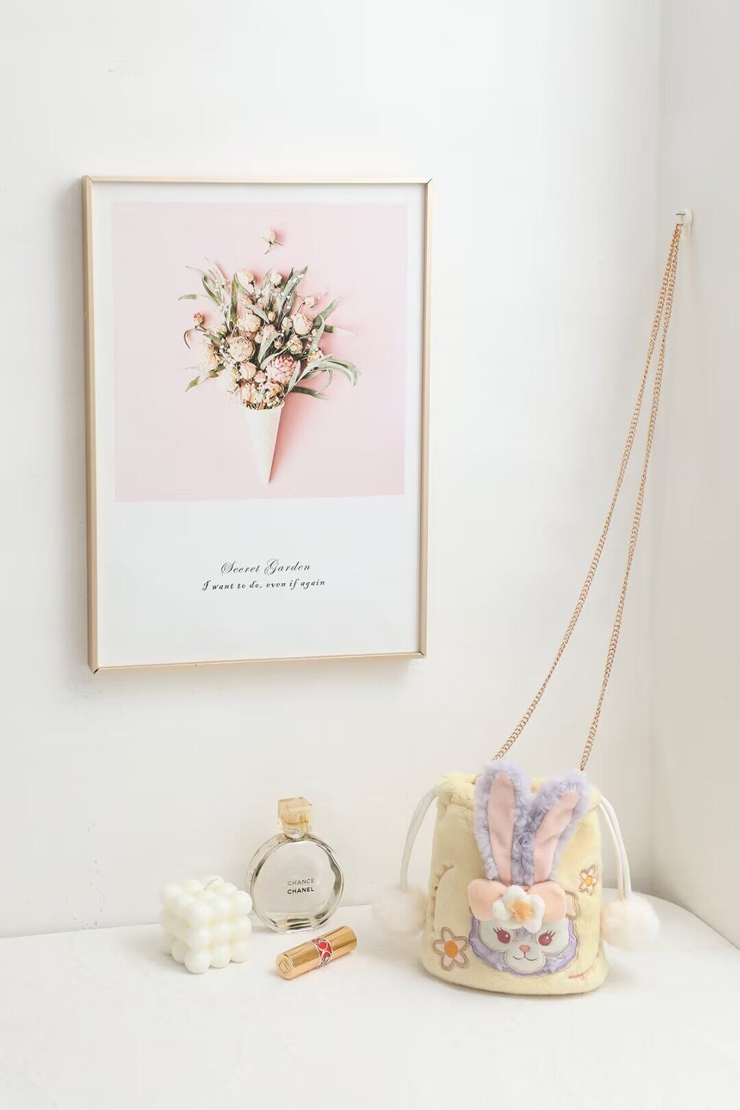귀여운 조임끈 수납가방, 만화 플러시 천 가방, 소녀 하트 잡화 가방, 복주머니 가방, 크로스바디 가능