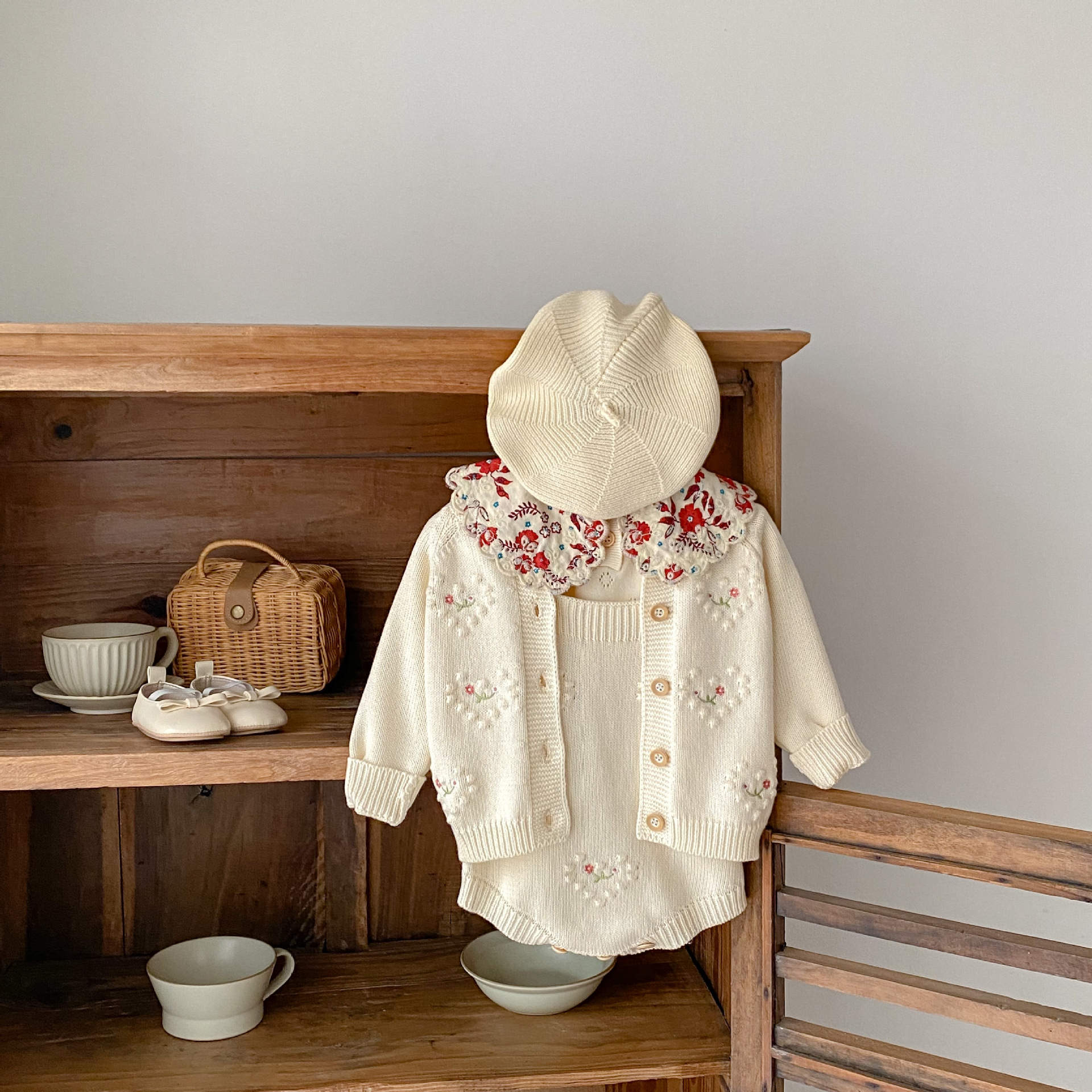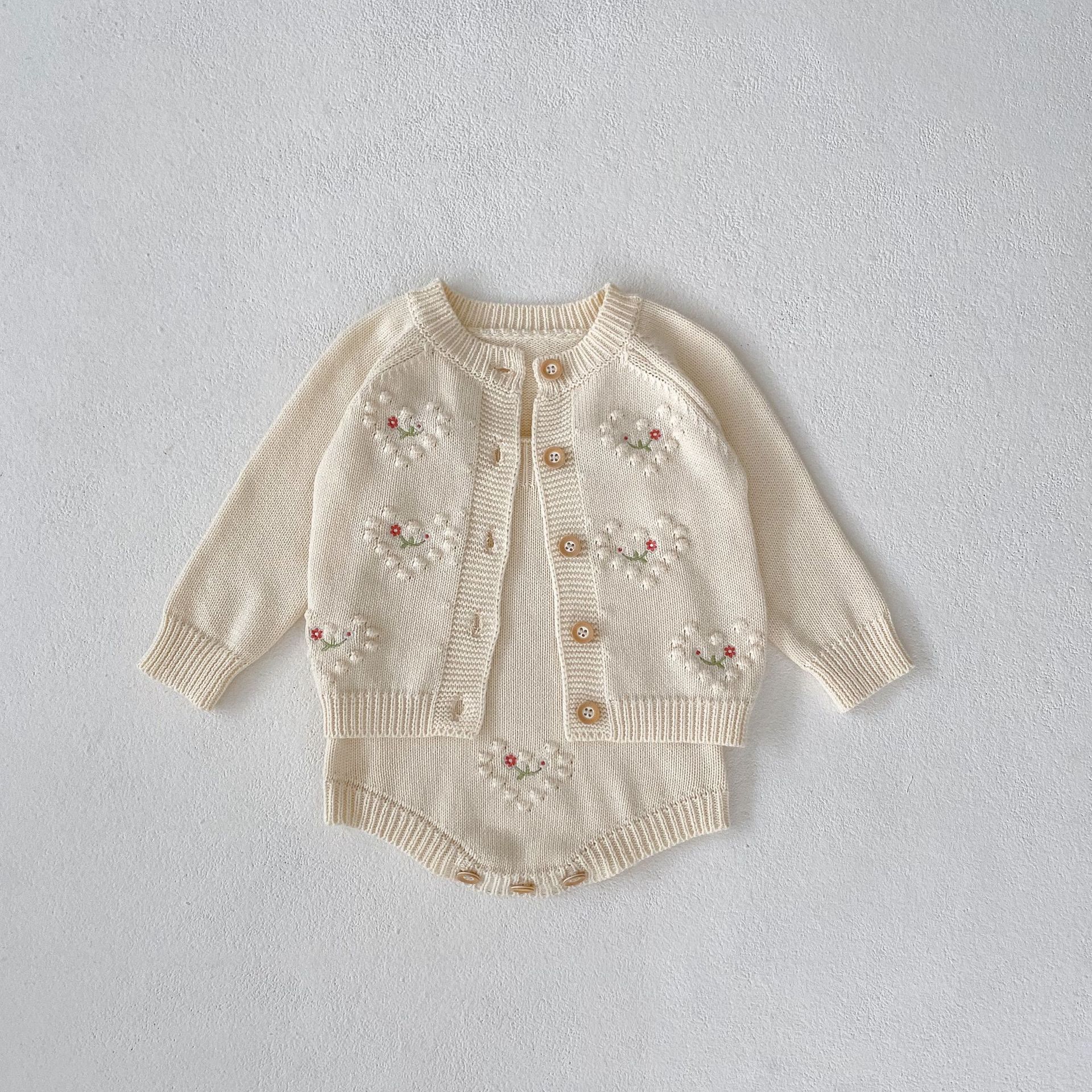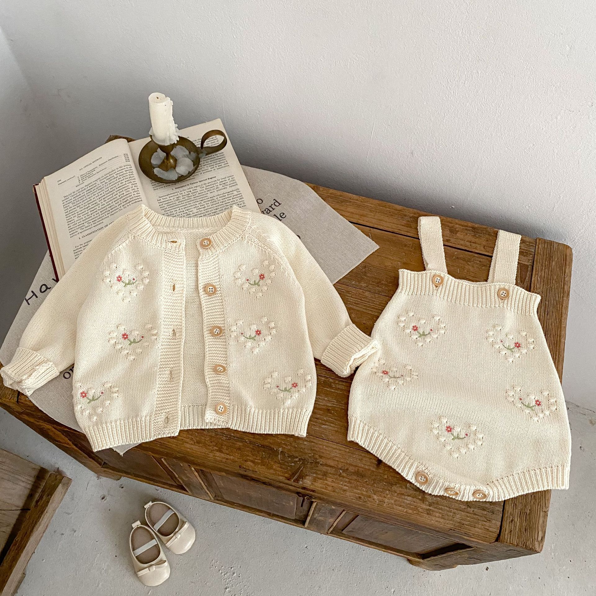 Ins2025 여아 니트 가디건 가을 겨울 투피스 세트 아기 유아 폴카 도트 하트 모양 자수 가디건 + 하렘스토어 가기