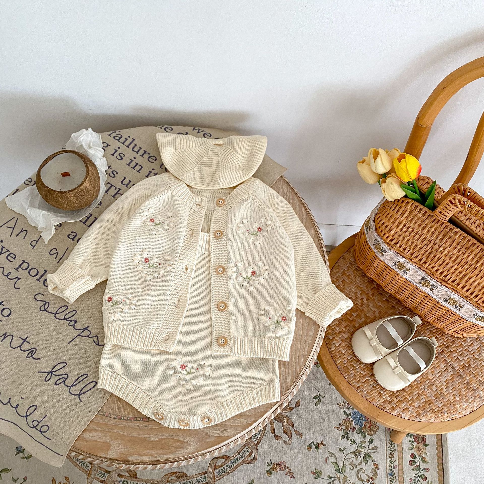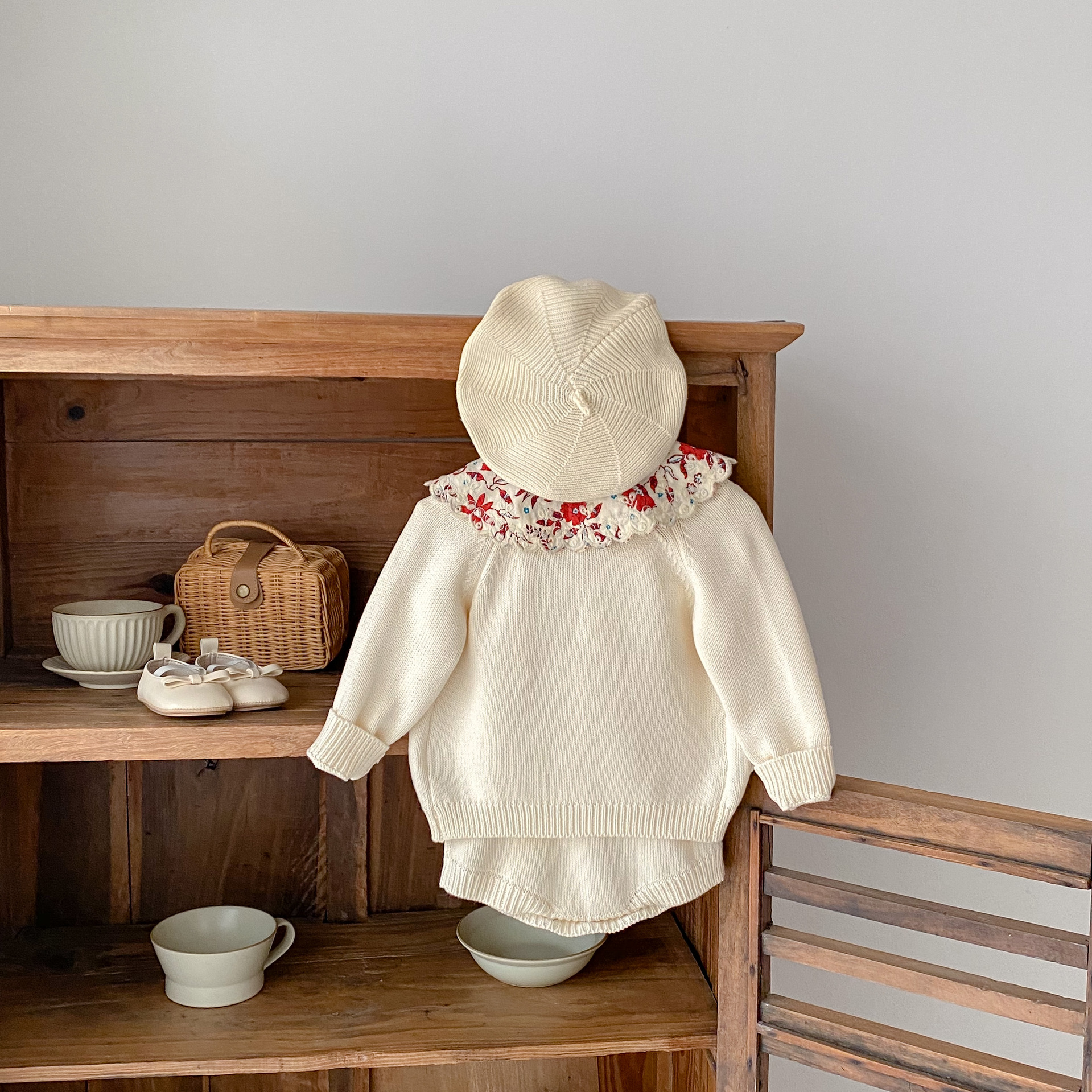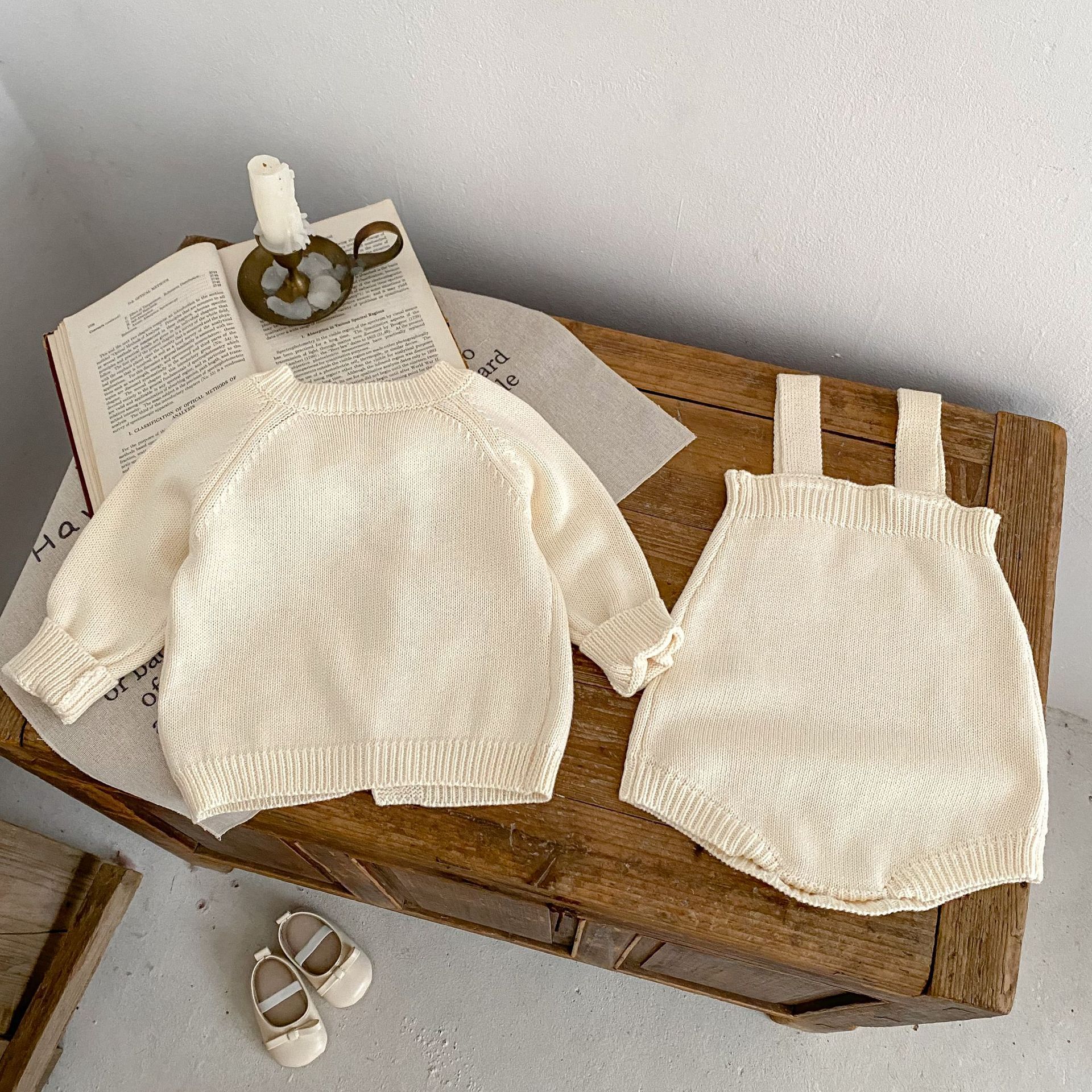 Ins2025 여아 니트 가디건 가을 겨울 투피스 세트 아기 유아 폴카 도트 하트 모양 자수 가디건 + 하렘스토어 가기