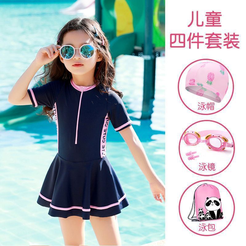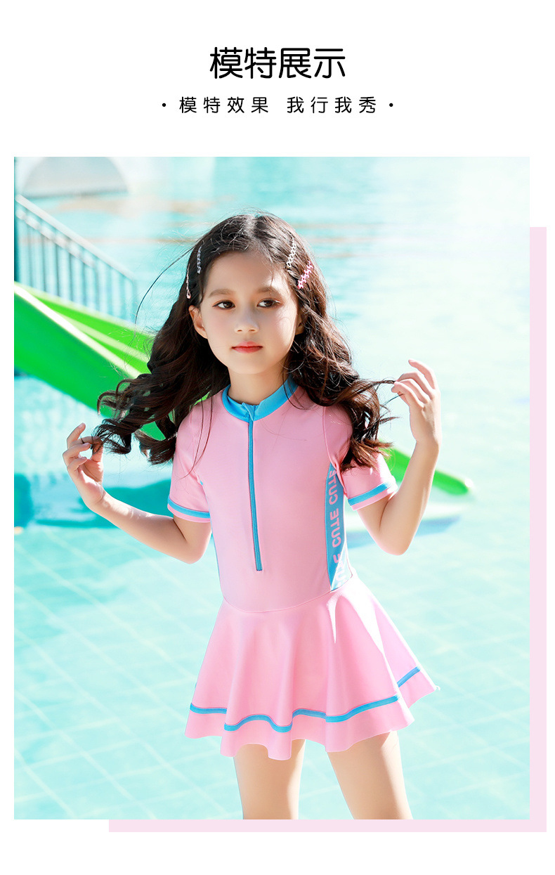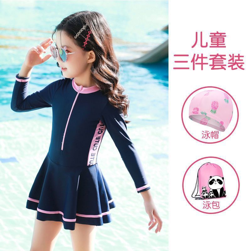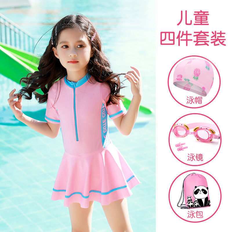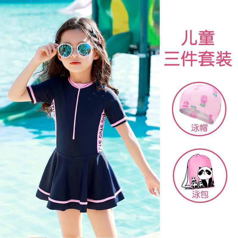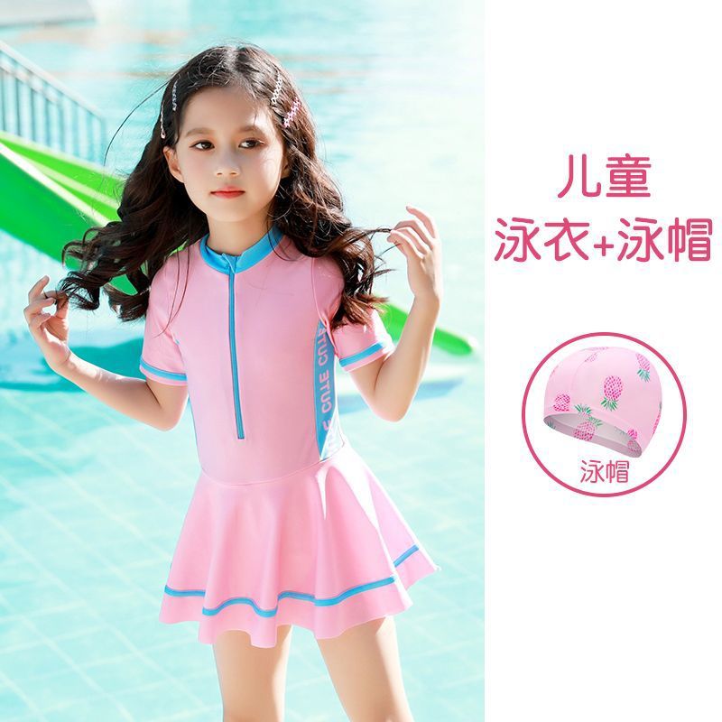 어린이 수영복 소녀 귀여운 원피스 소녀 큰 어린이 새로운 원피스 귀여운 보수적 수영 세트 대외 무역 도매스토어 가기