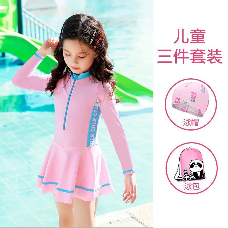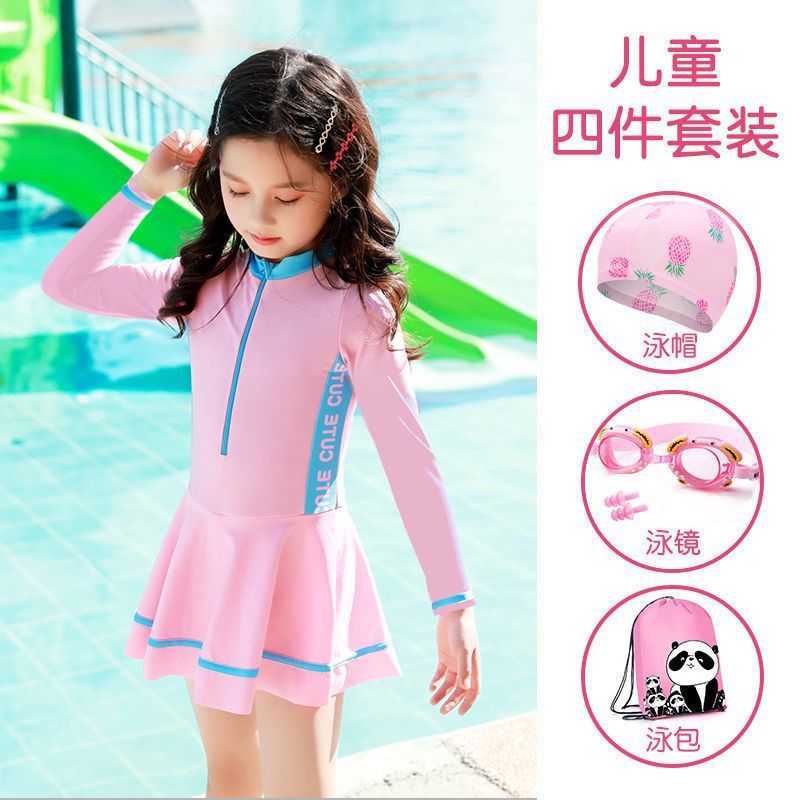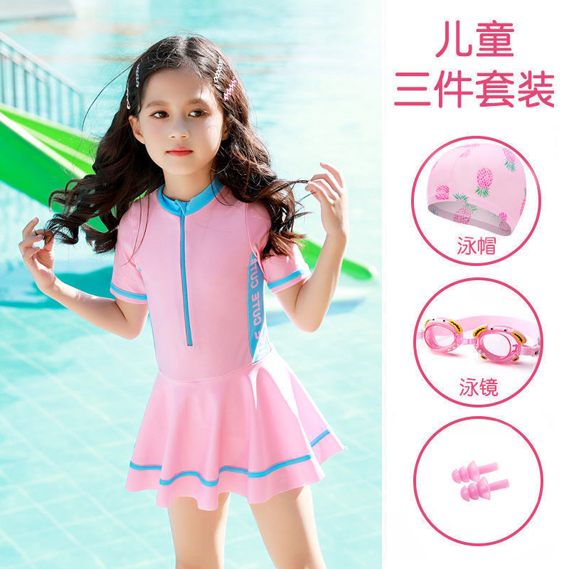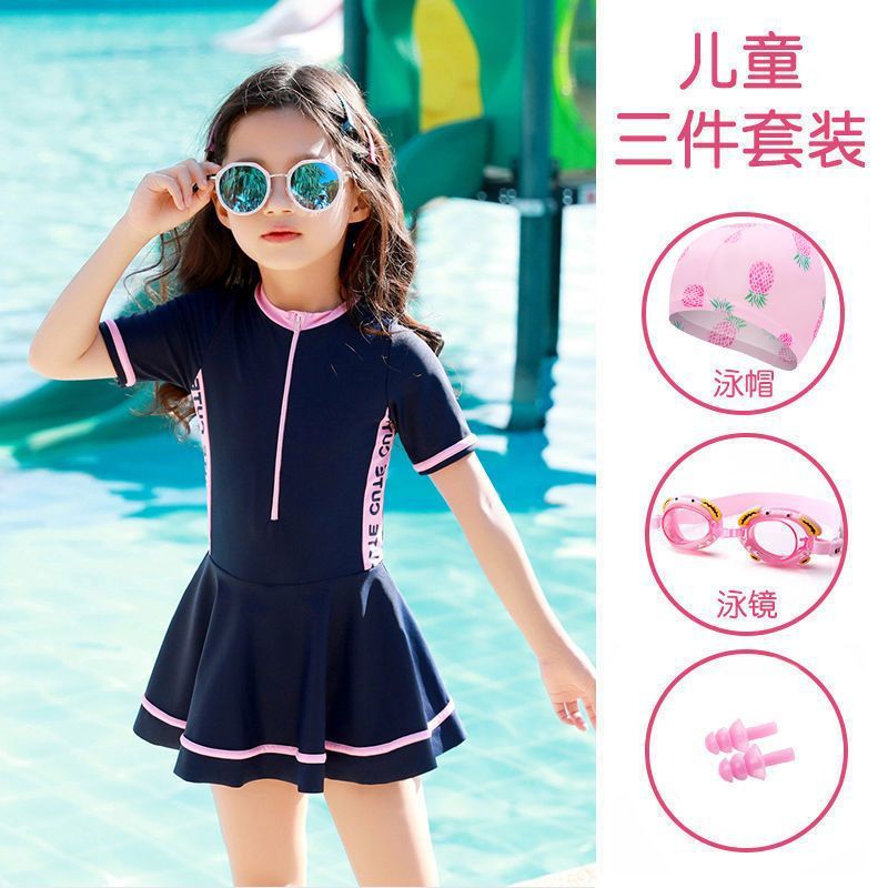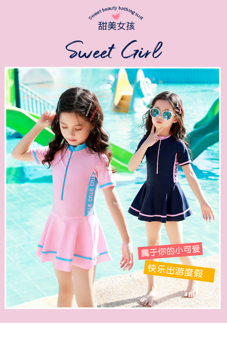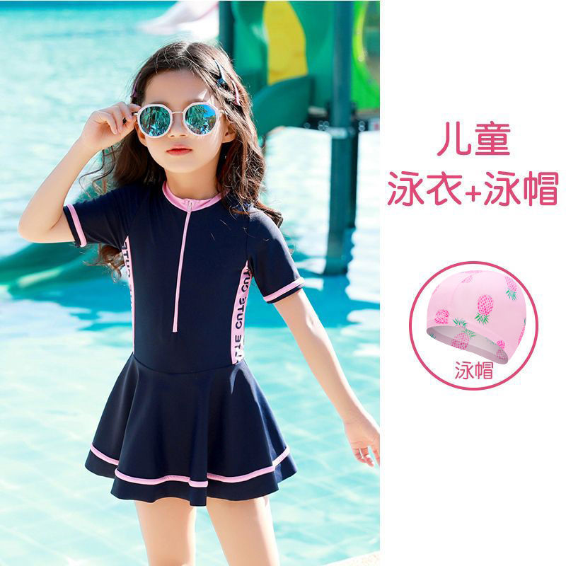 어린이 수영복 소녀 귀여운 원피스 소녀 큰 어린이 새로운 원피스 귀여운 보수적 수영 세트 대외 무역 도매스토어 가기
